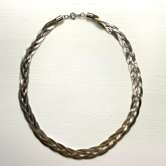 ヴィンテージ 1980 年代 シルバートーン ヘリンボーン チェーン編みネックレス