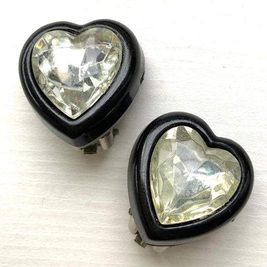 ヴィンテージ クリアハート&ブラックフレーム クリップイヤリング