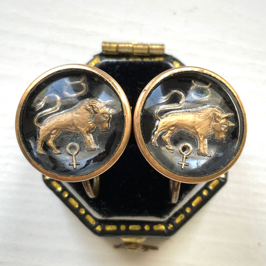 ヴィンテージ 1950年代 牡牛座 インタリオ スクリューイヤリング