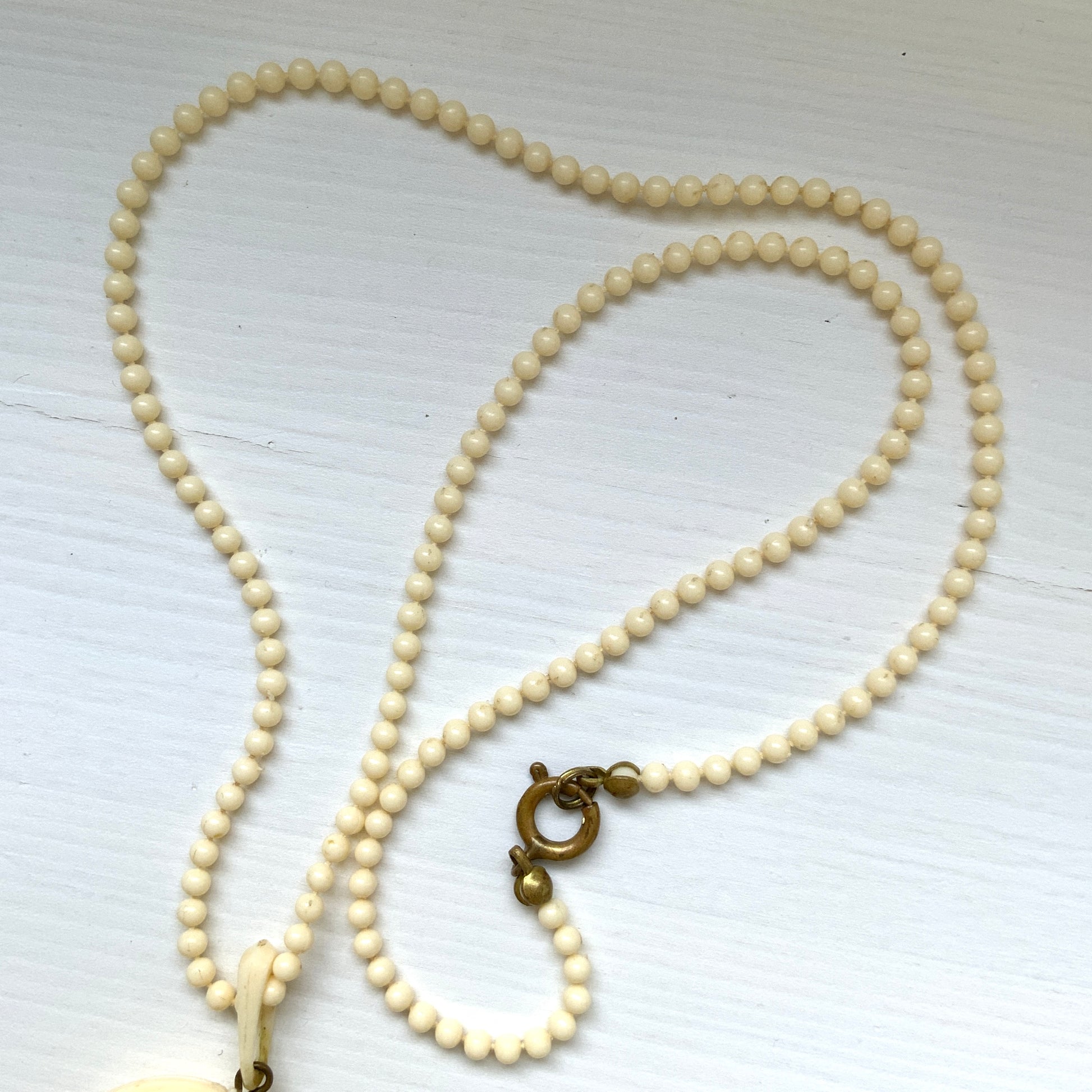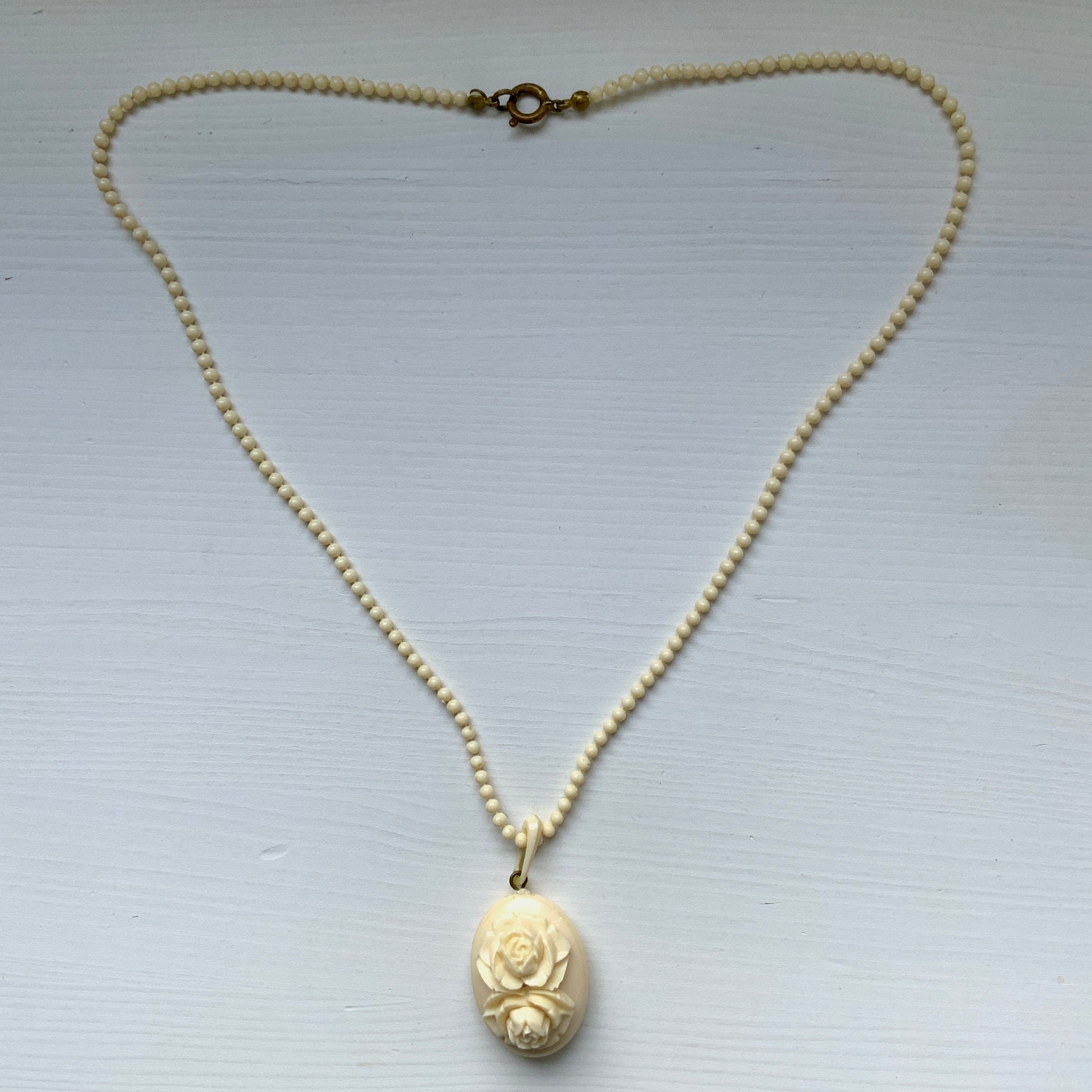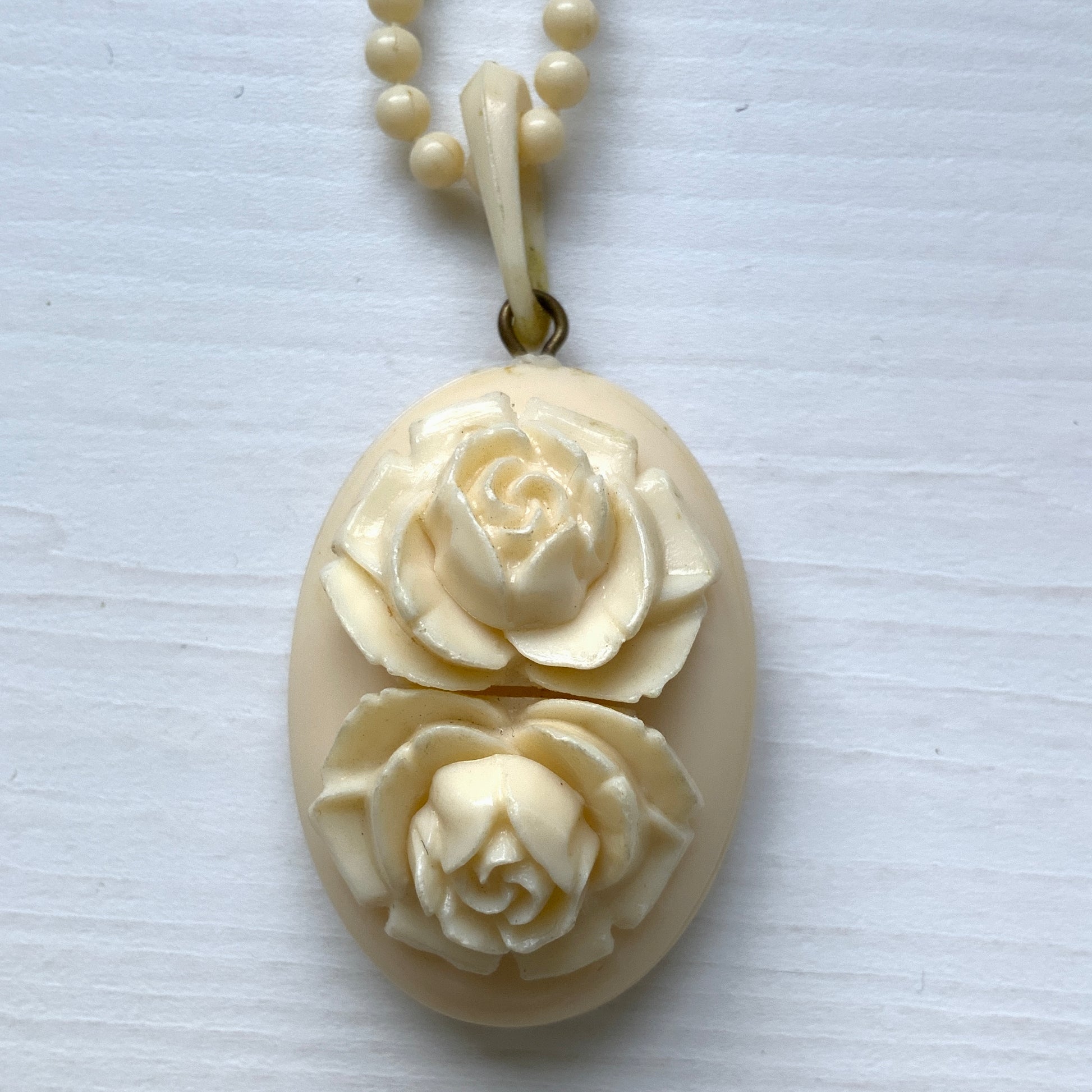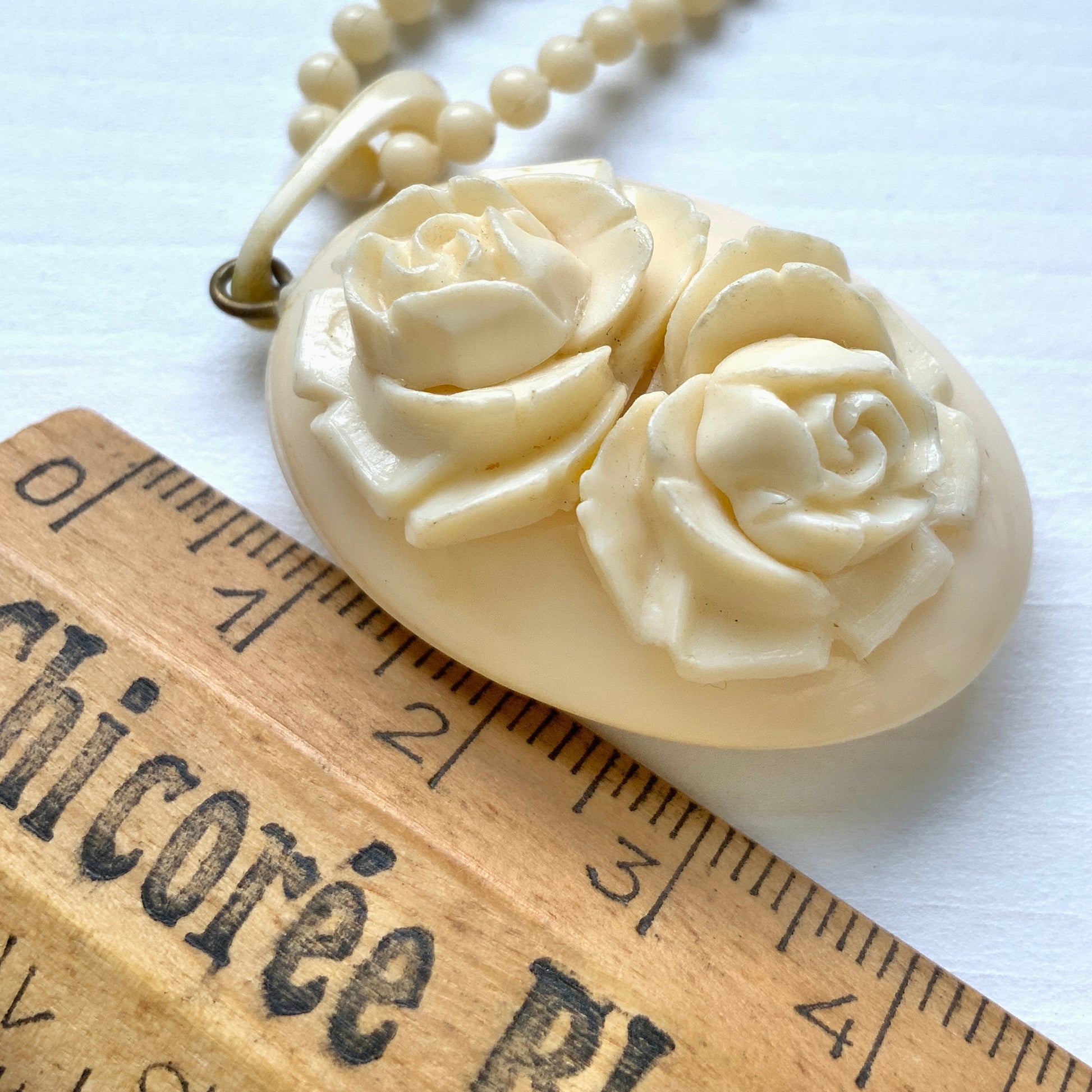 ヴィンテージ 1950 年代 ホワイト/アイボリー プラスチック ローズ ネックレス