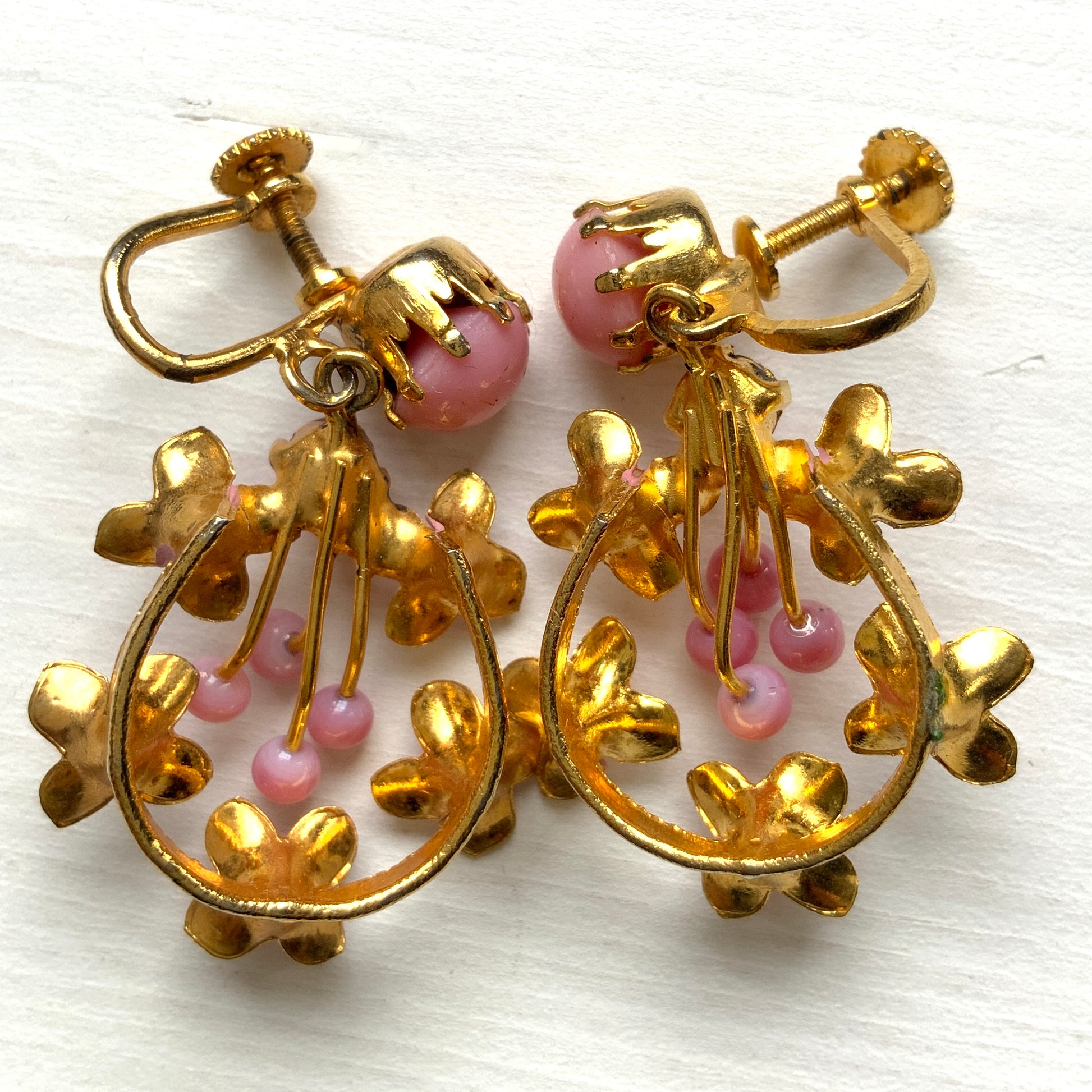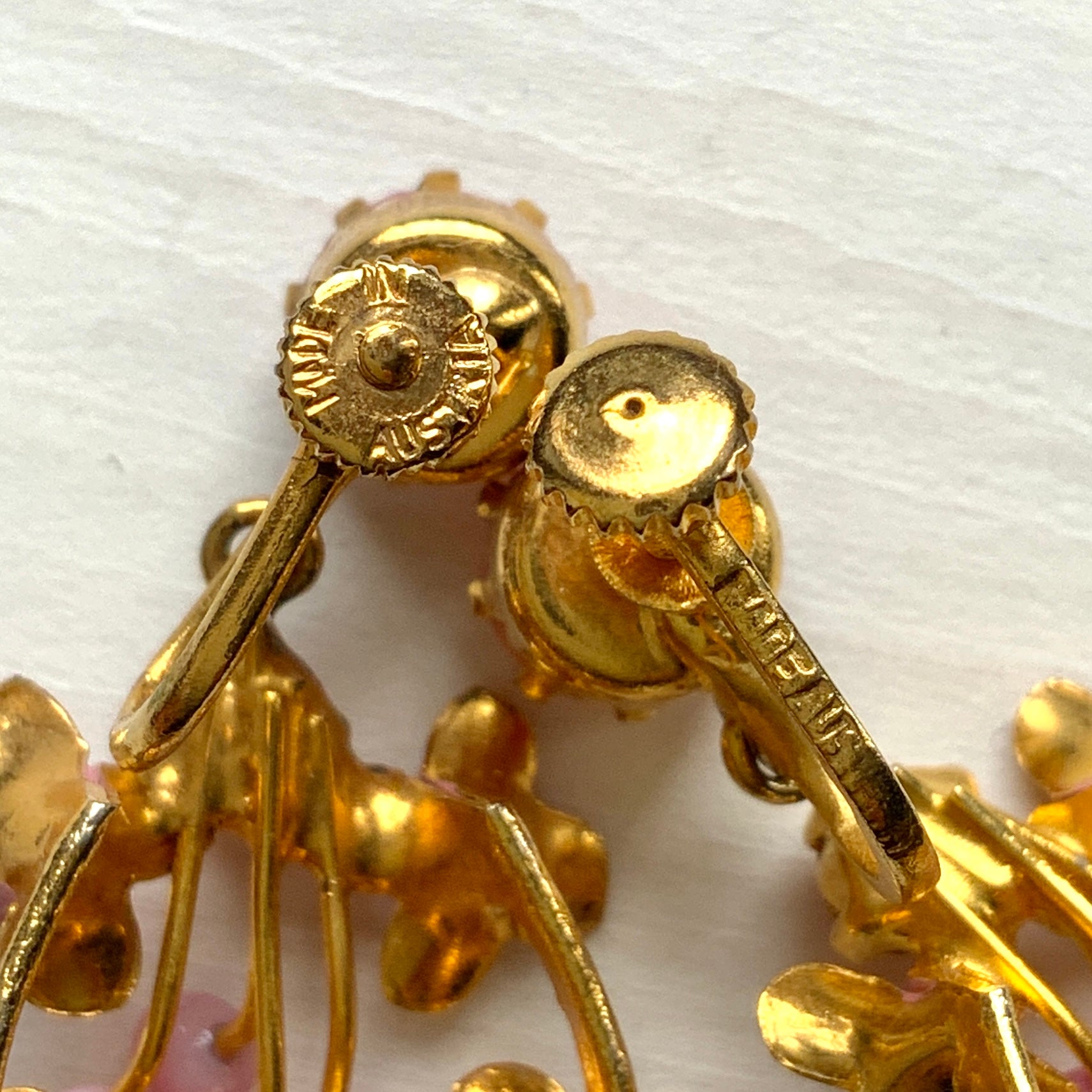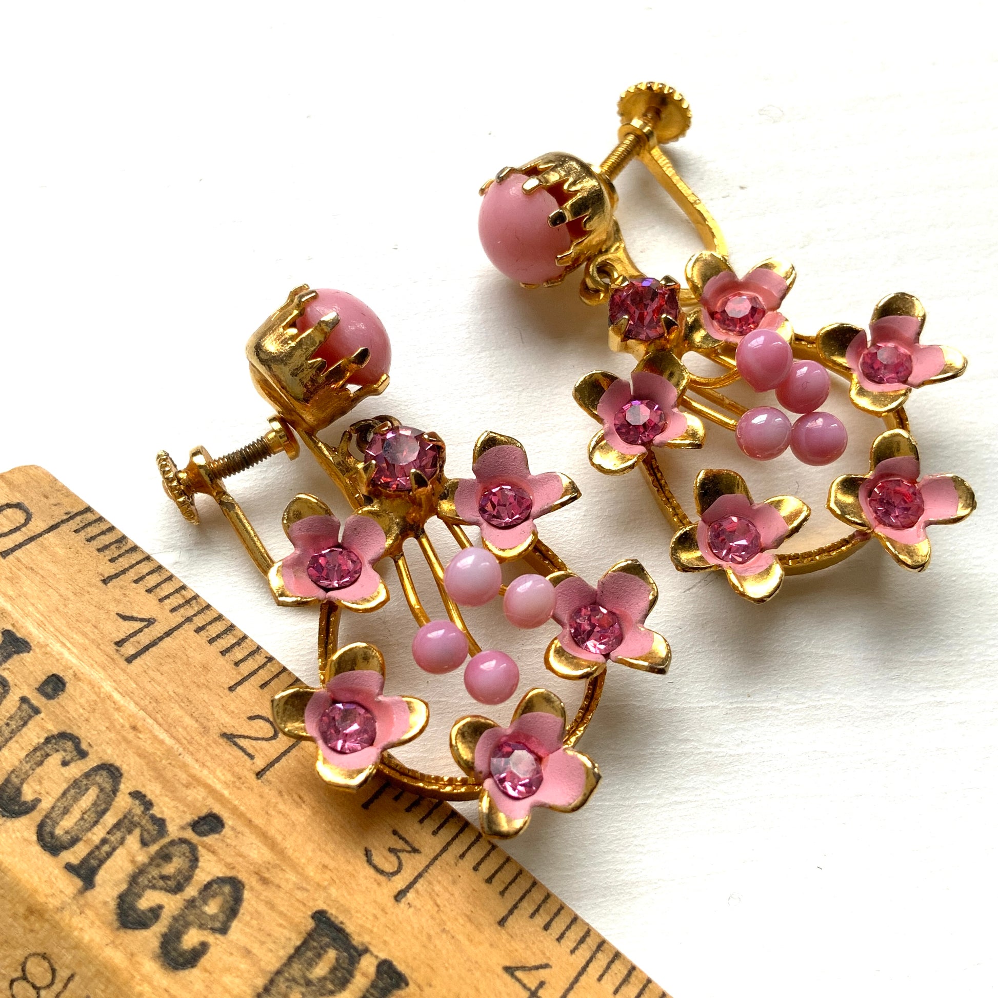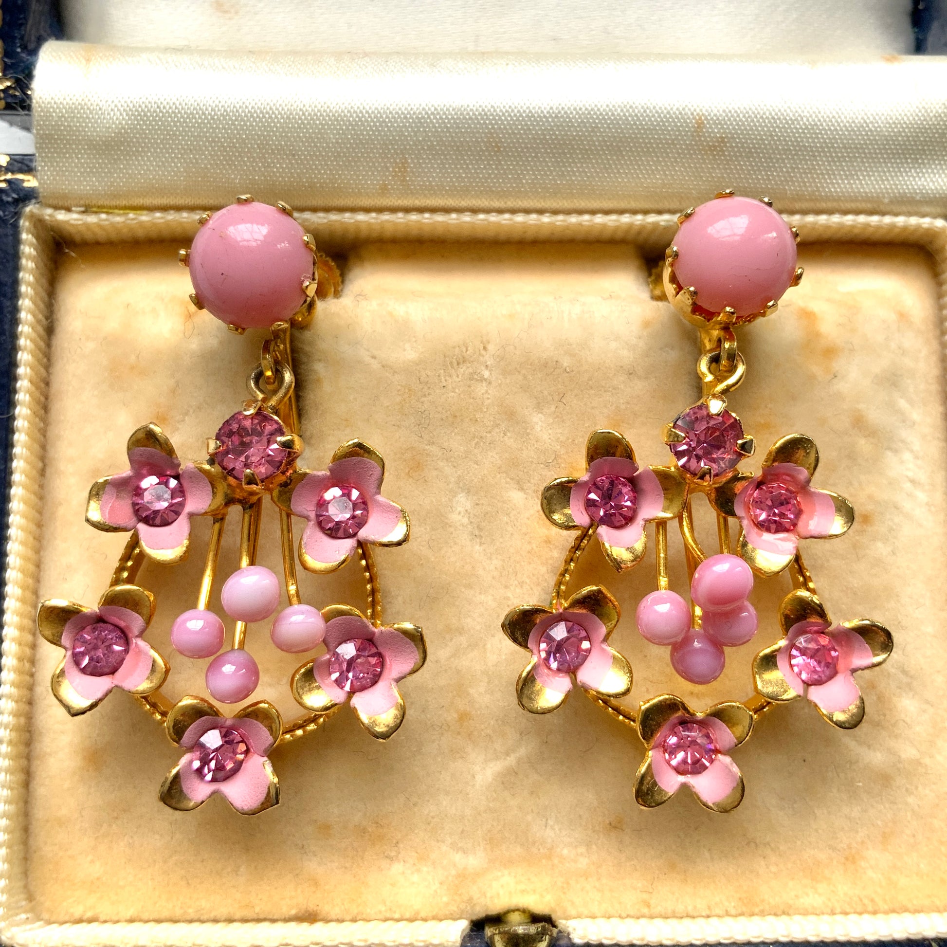 ヴィンテージ 1950年代 ピンク エナメル お花 スクリューイヤリング