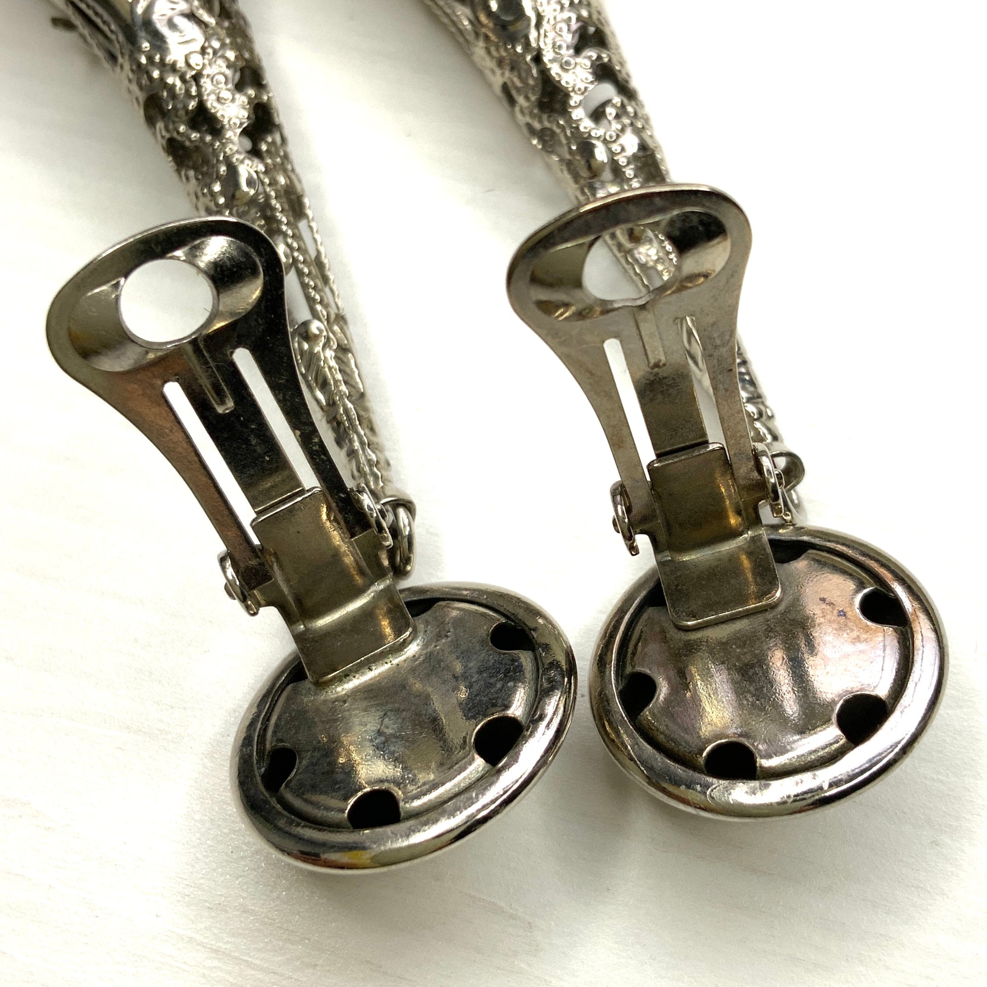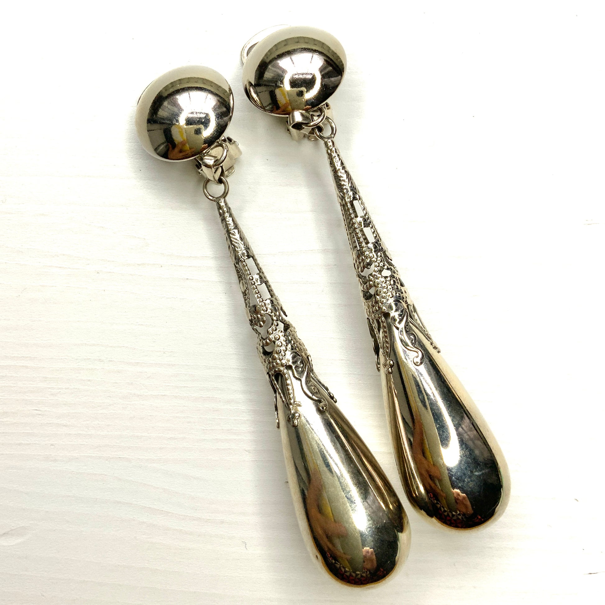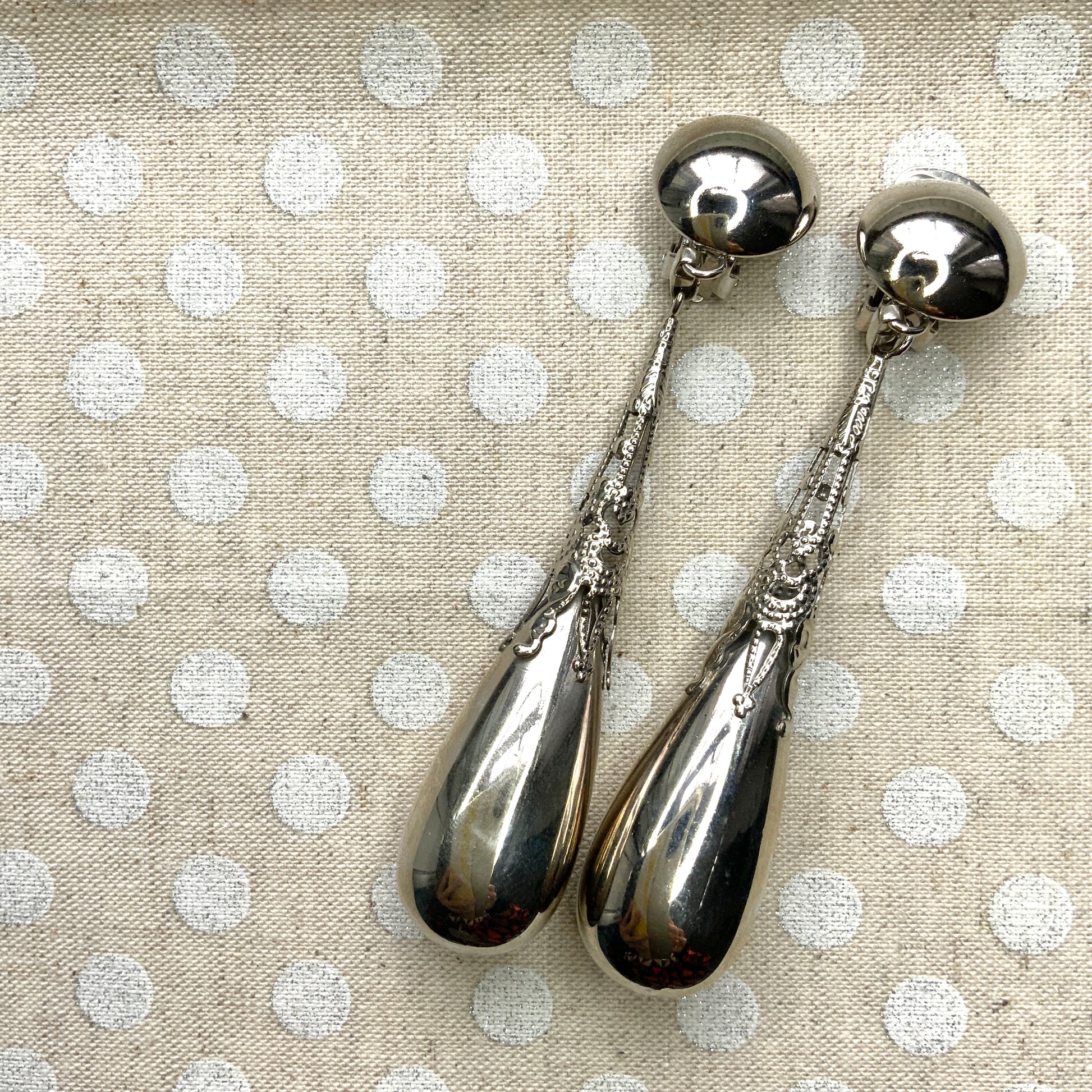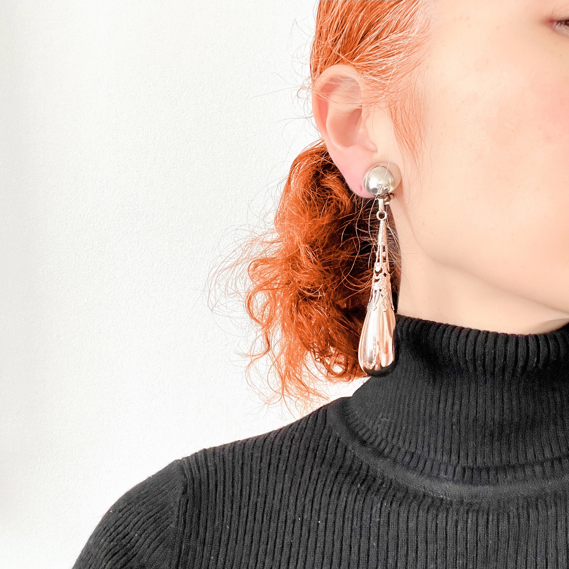 ヴィンテージ 1970〜80年代 シルバートーン ビッグ レインドロップ ドロップ クリップ イヤリング