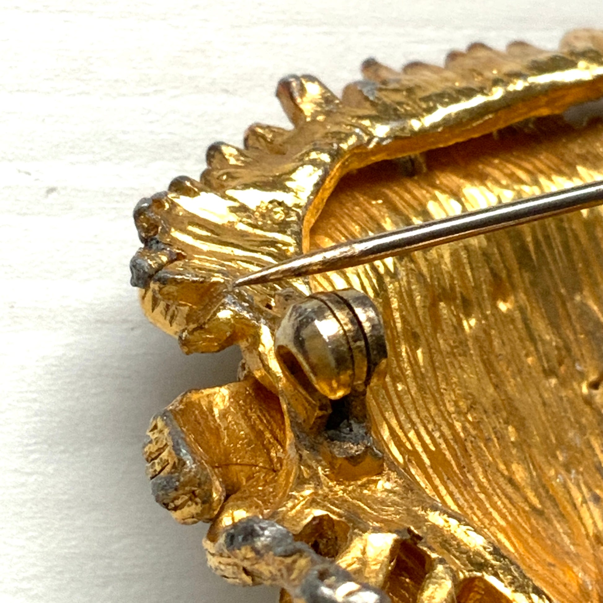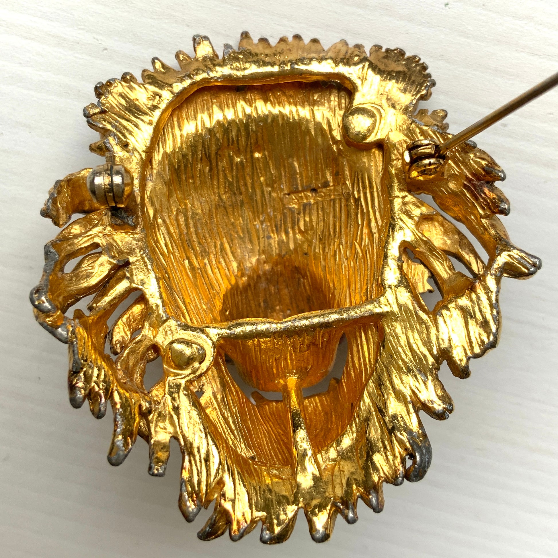 ヴィンテージ 1970 年代 スフィンクス ゴールドトーン & ラインストーン ライオンヘッド ブローチ