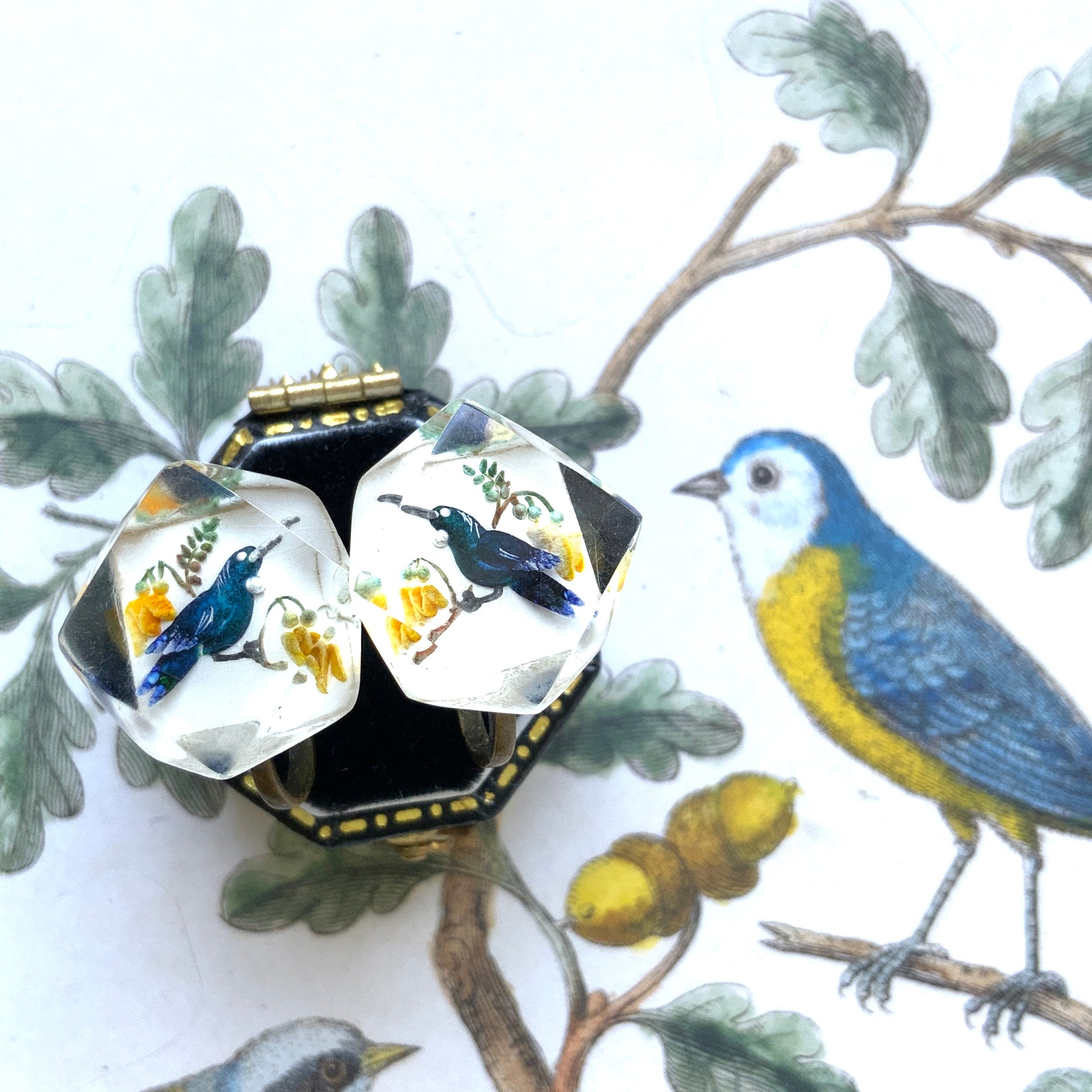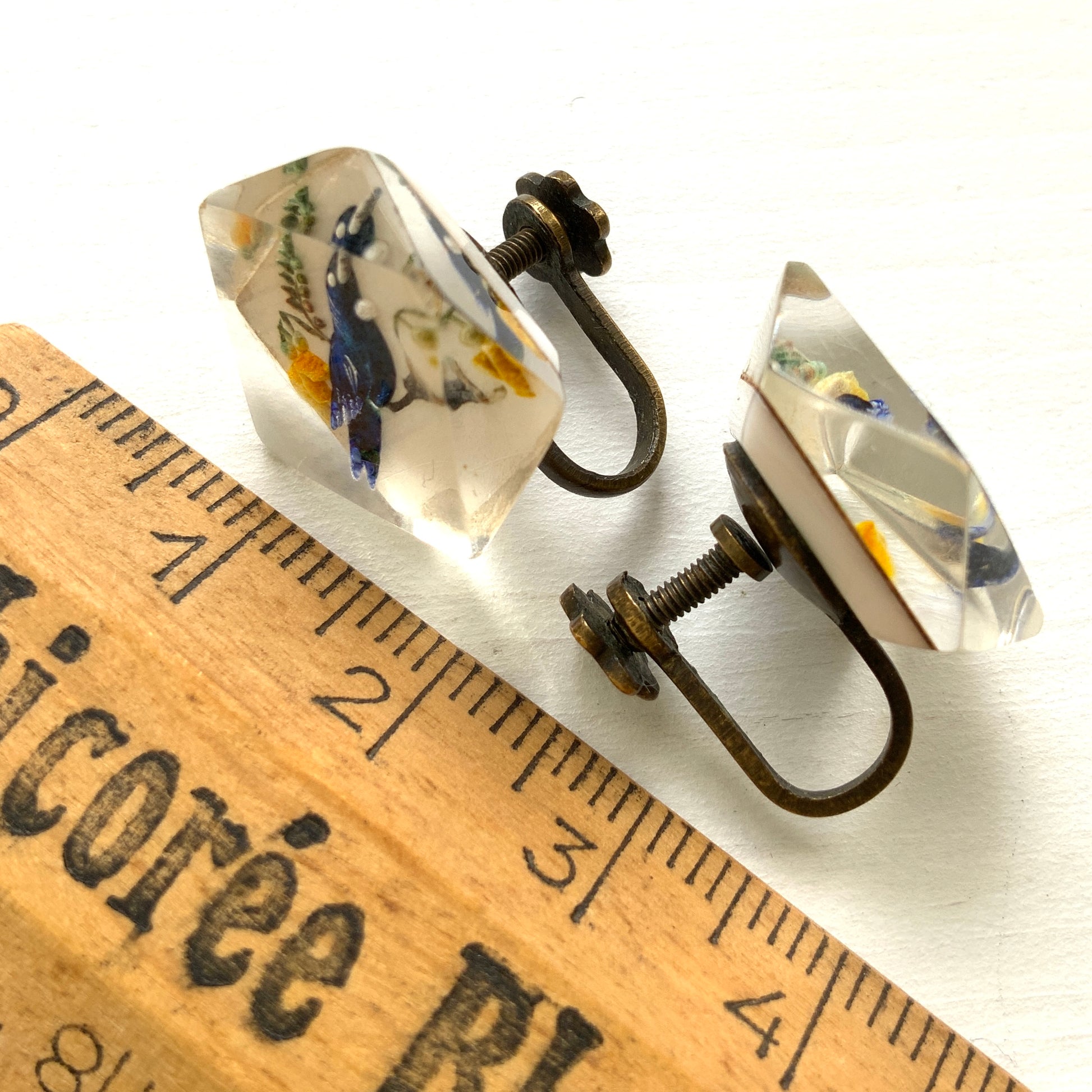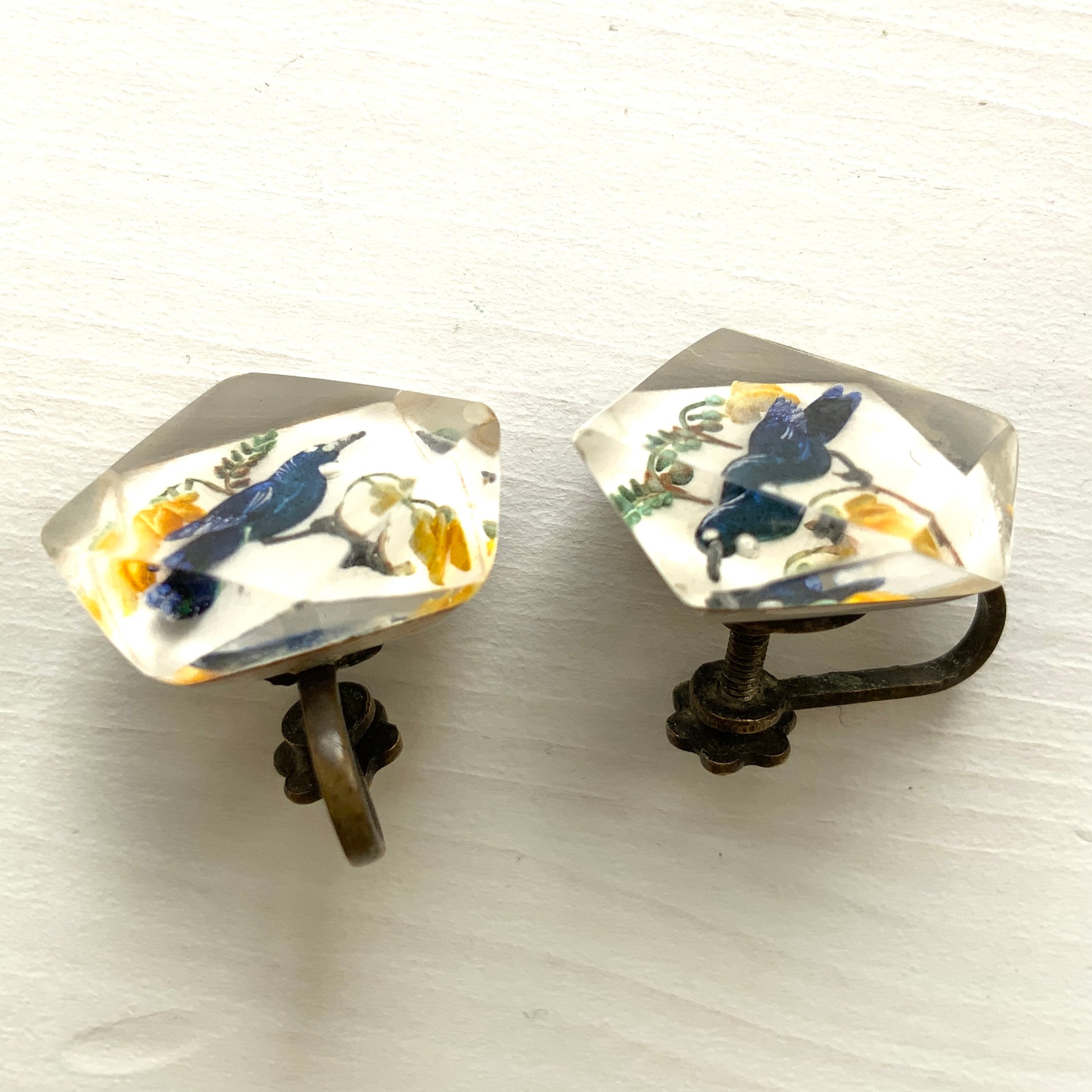 ヴィンテージ 1950年代 青い鳥 インタリオ ルーサイト スクリューイヤリング