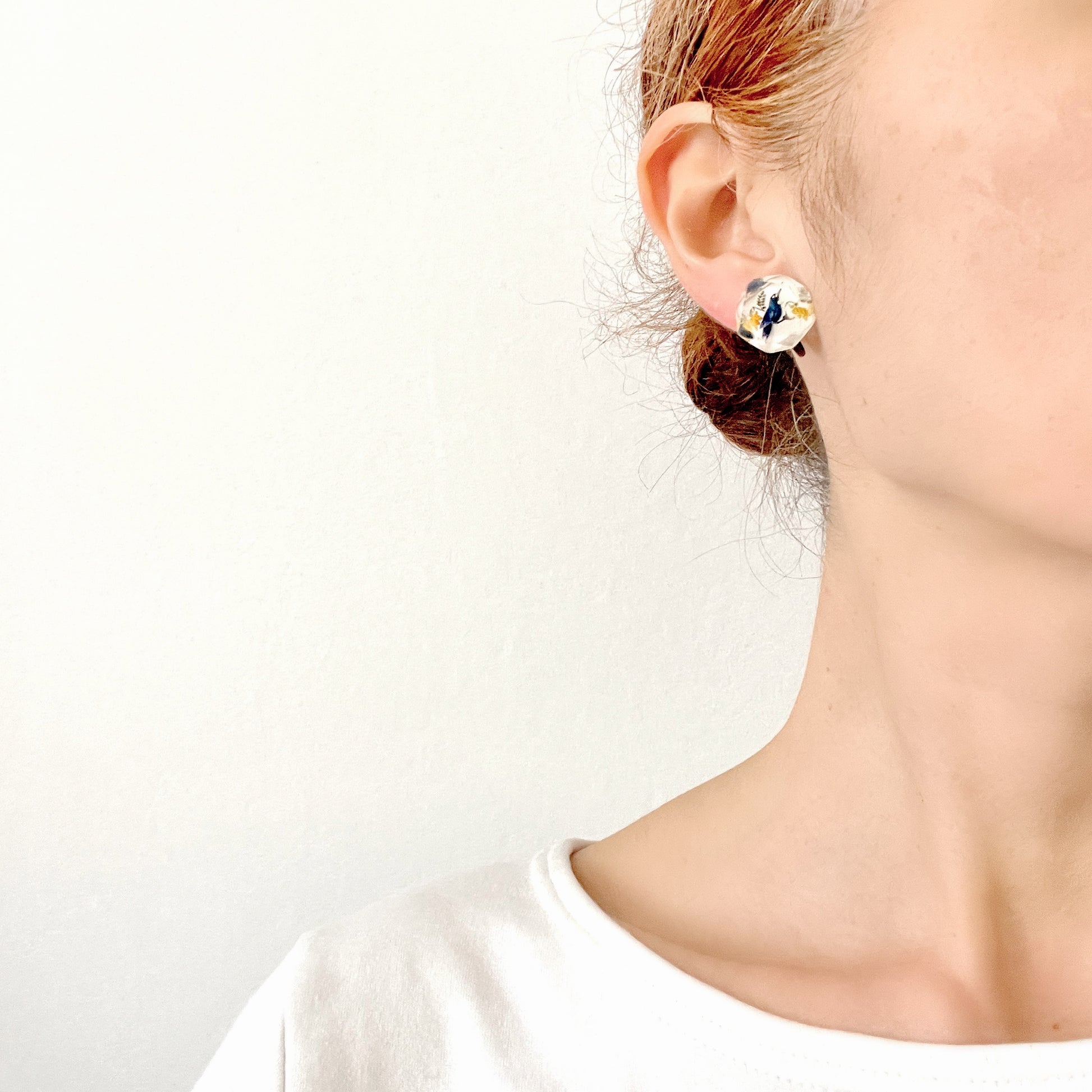 かわいらしい青い鳥が裏彫りされたスクリューイヤリング。