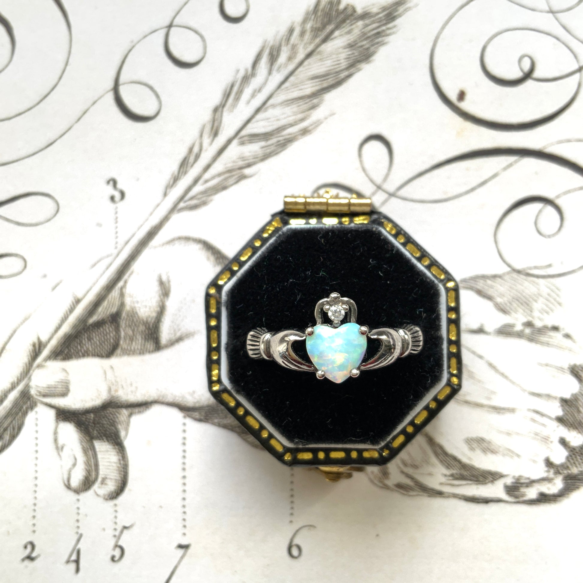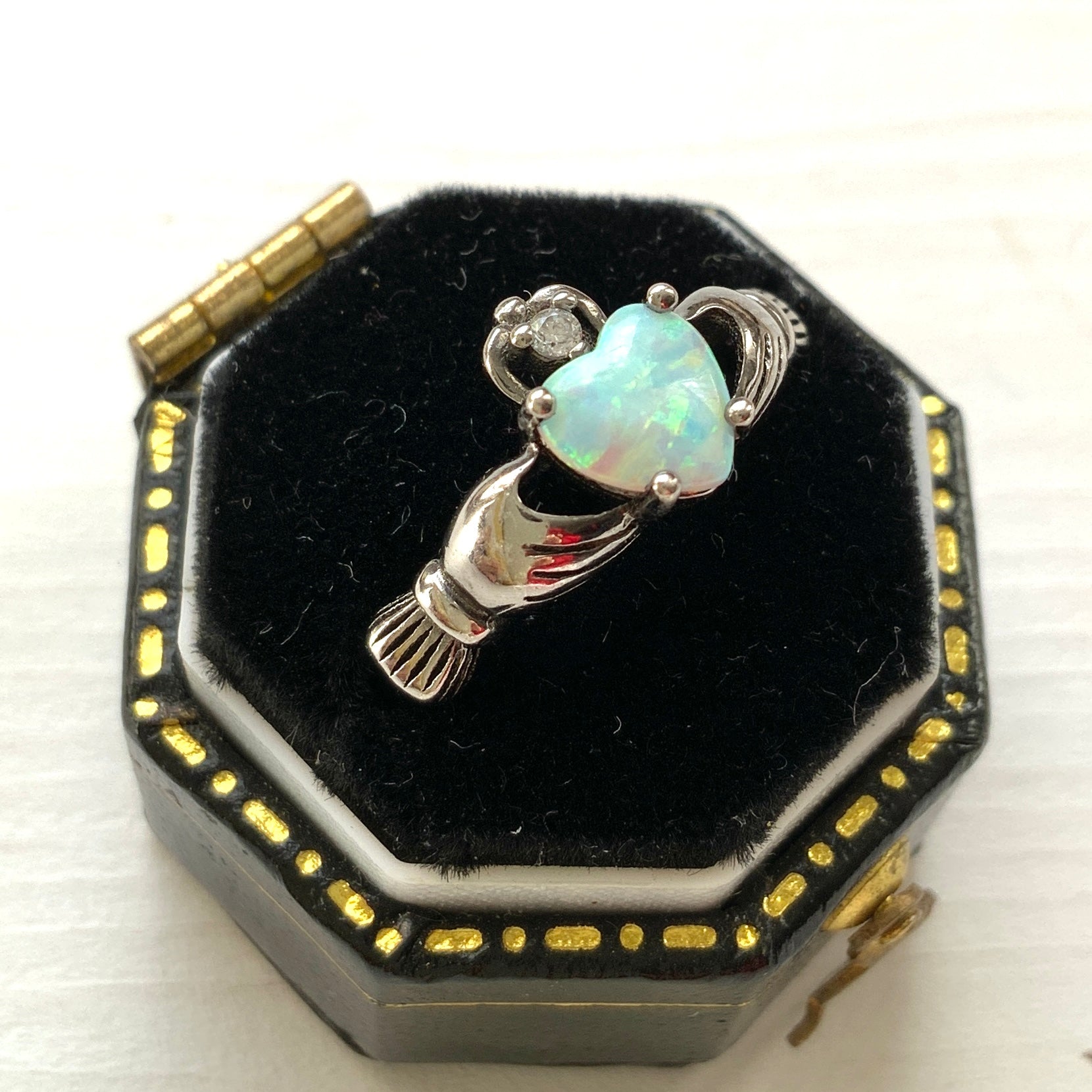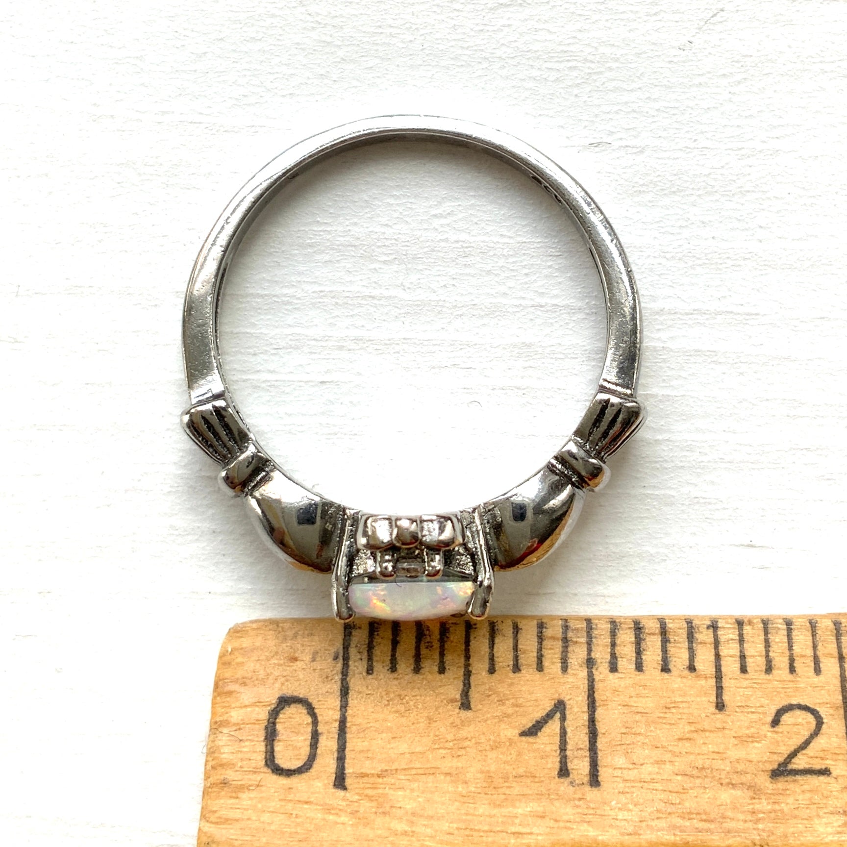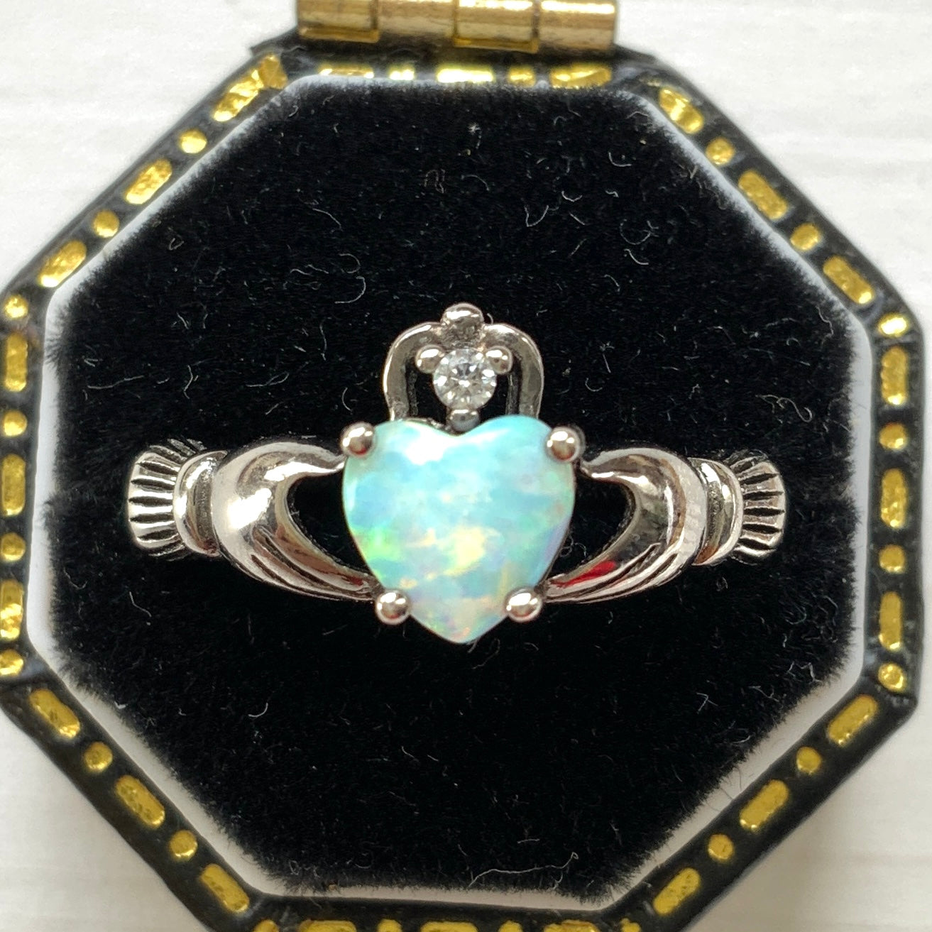 オパールを使ったアイルランドの伝統的なシンボル、クラダのシルバーリング。