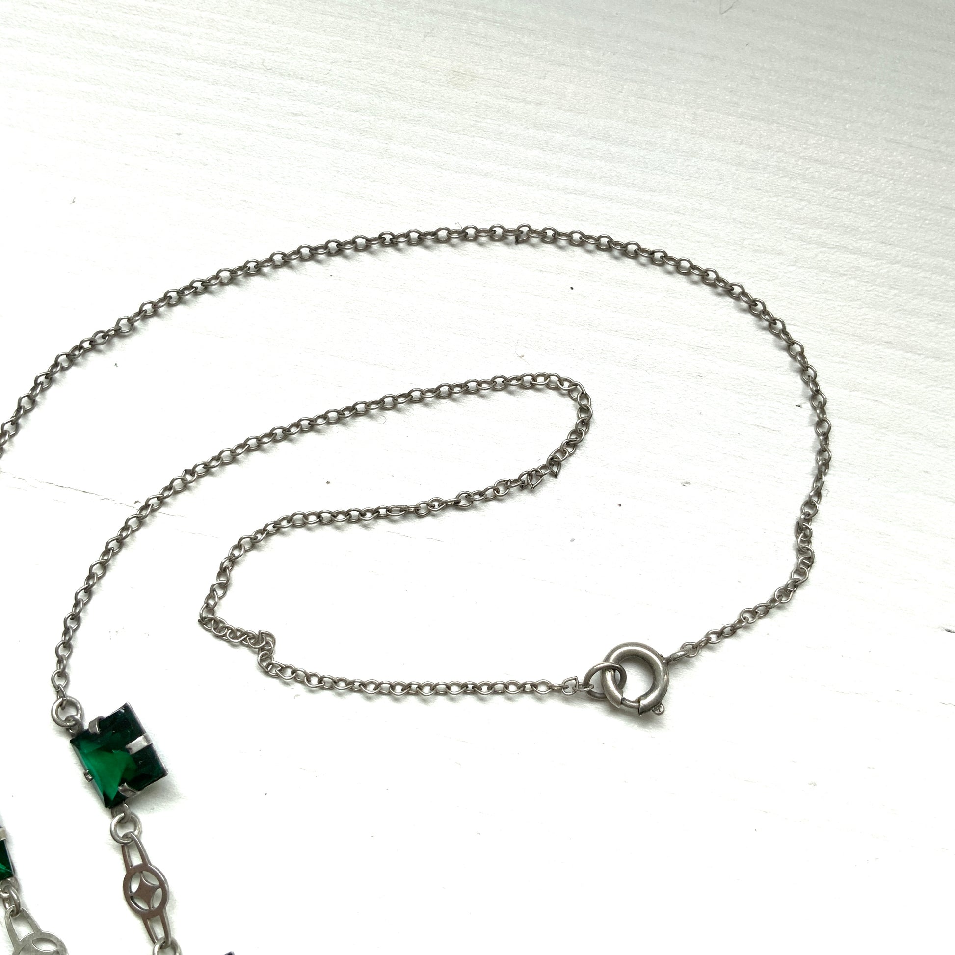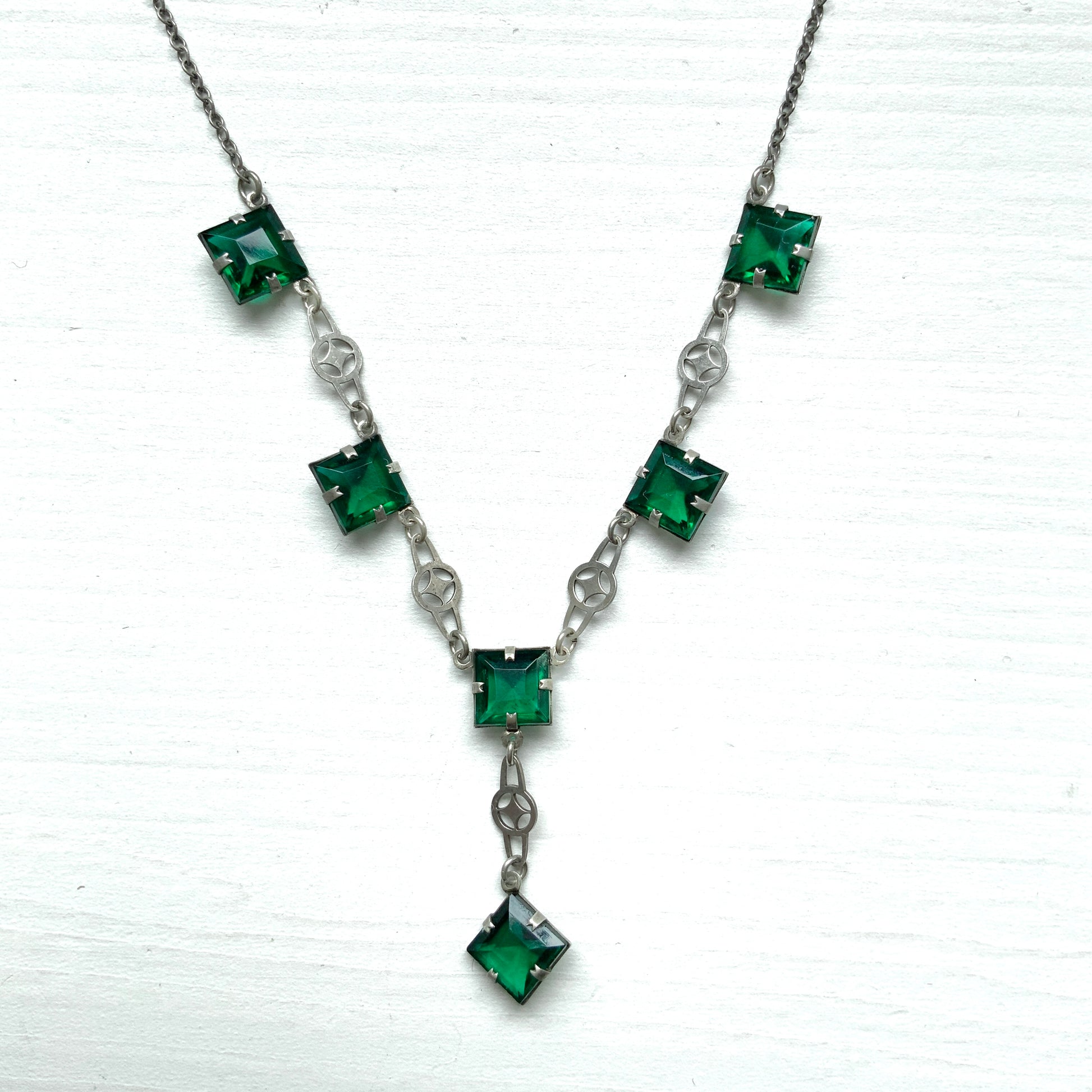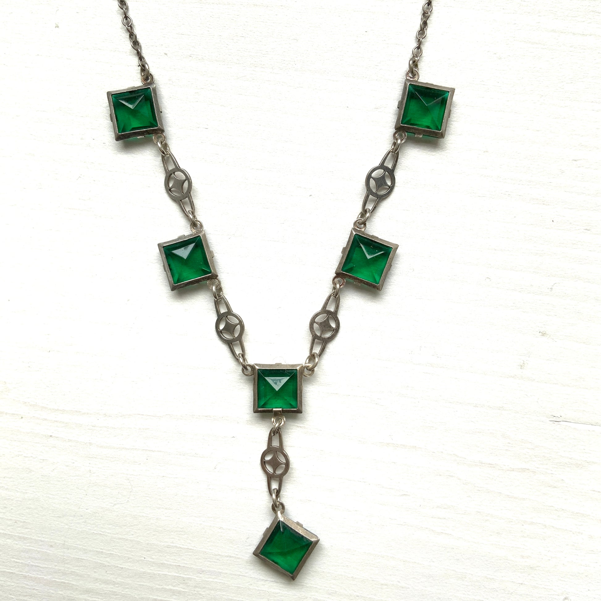 ヴィンテージ アールデコ グリーン スクエアグラス シルバー ネックレス