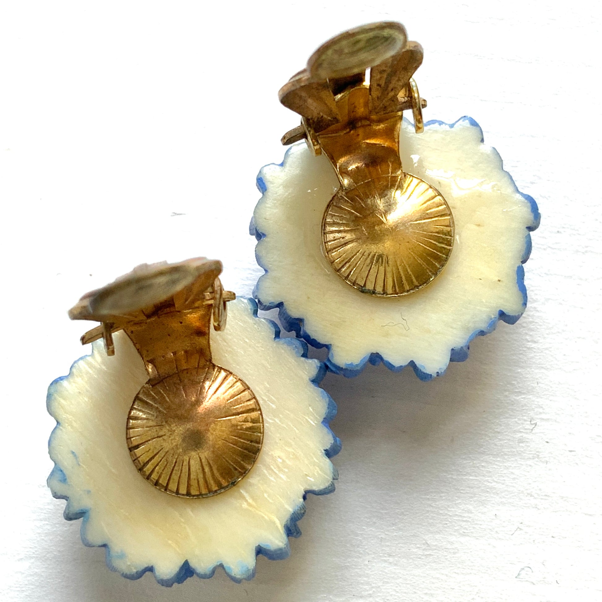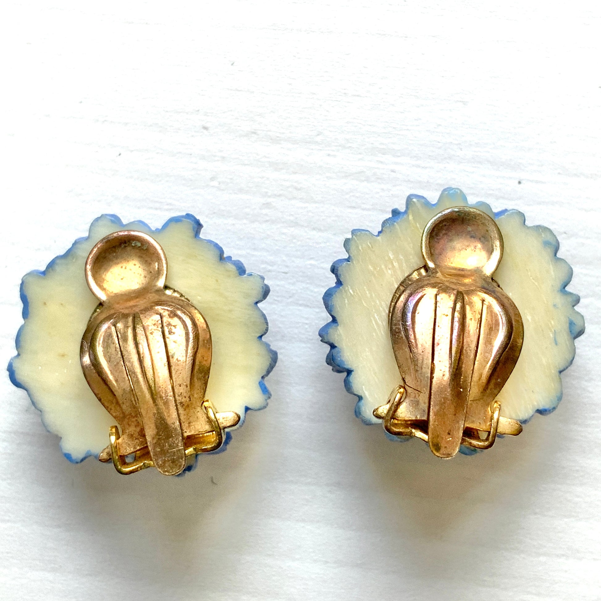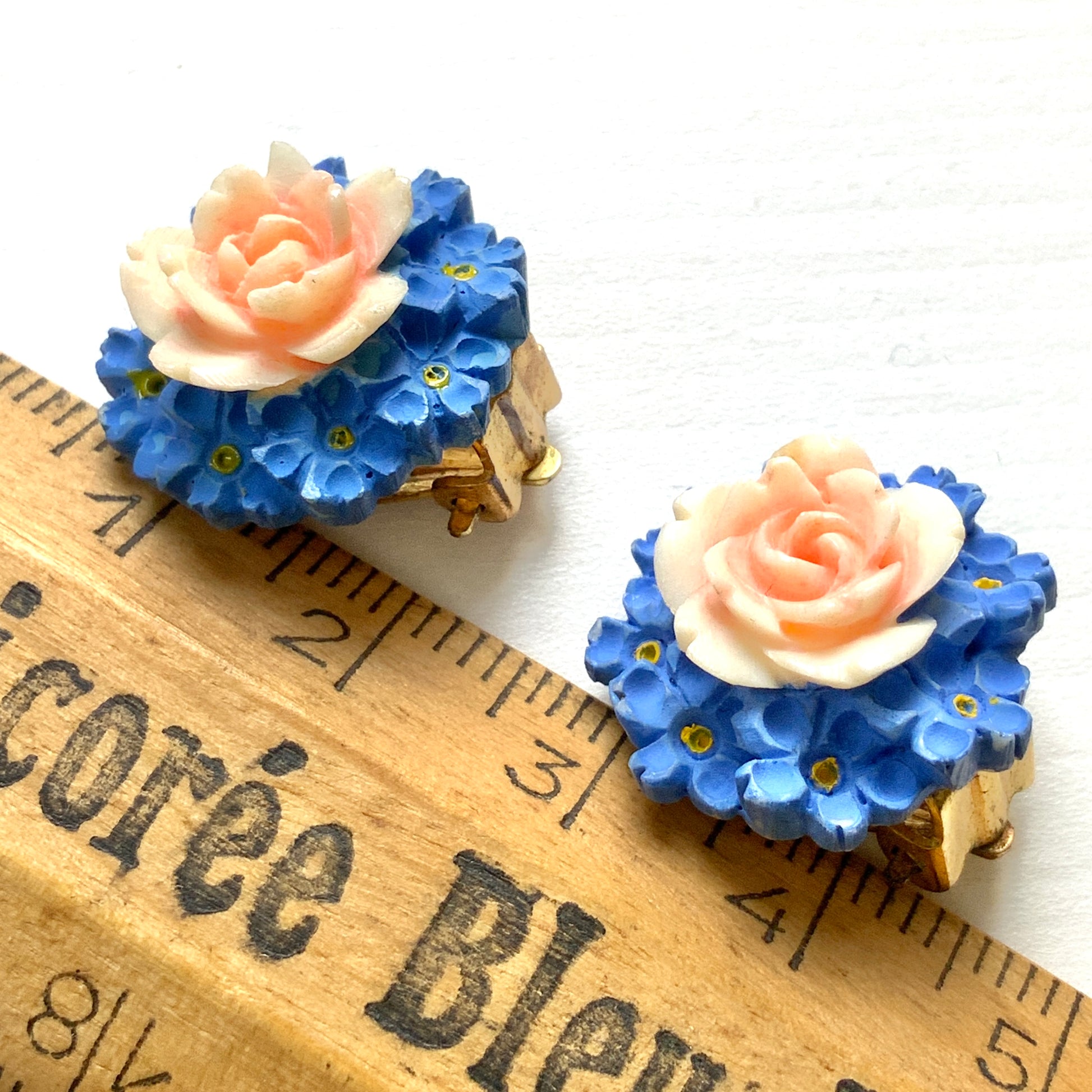 ヴィンテージ 1930年代 バラ&勿忘草 セルロイド クリップイヤリング