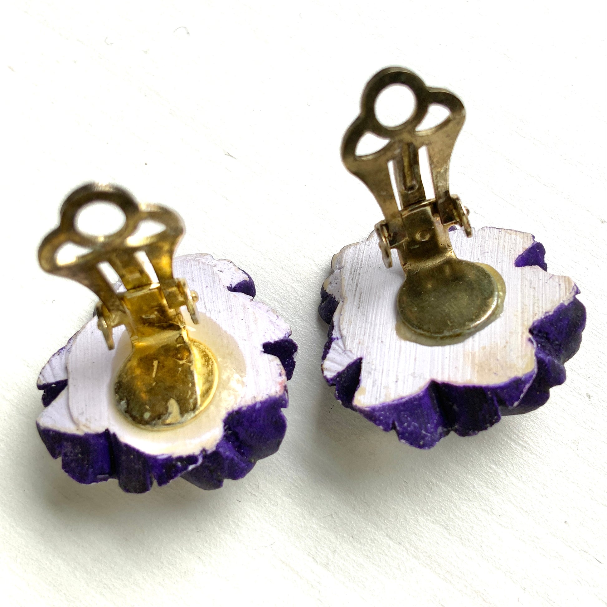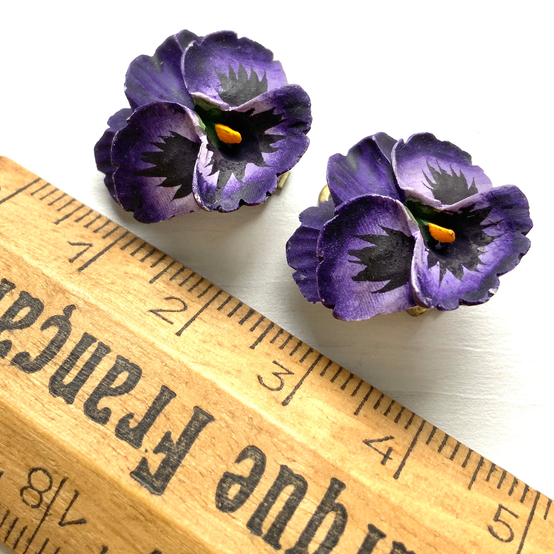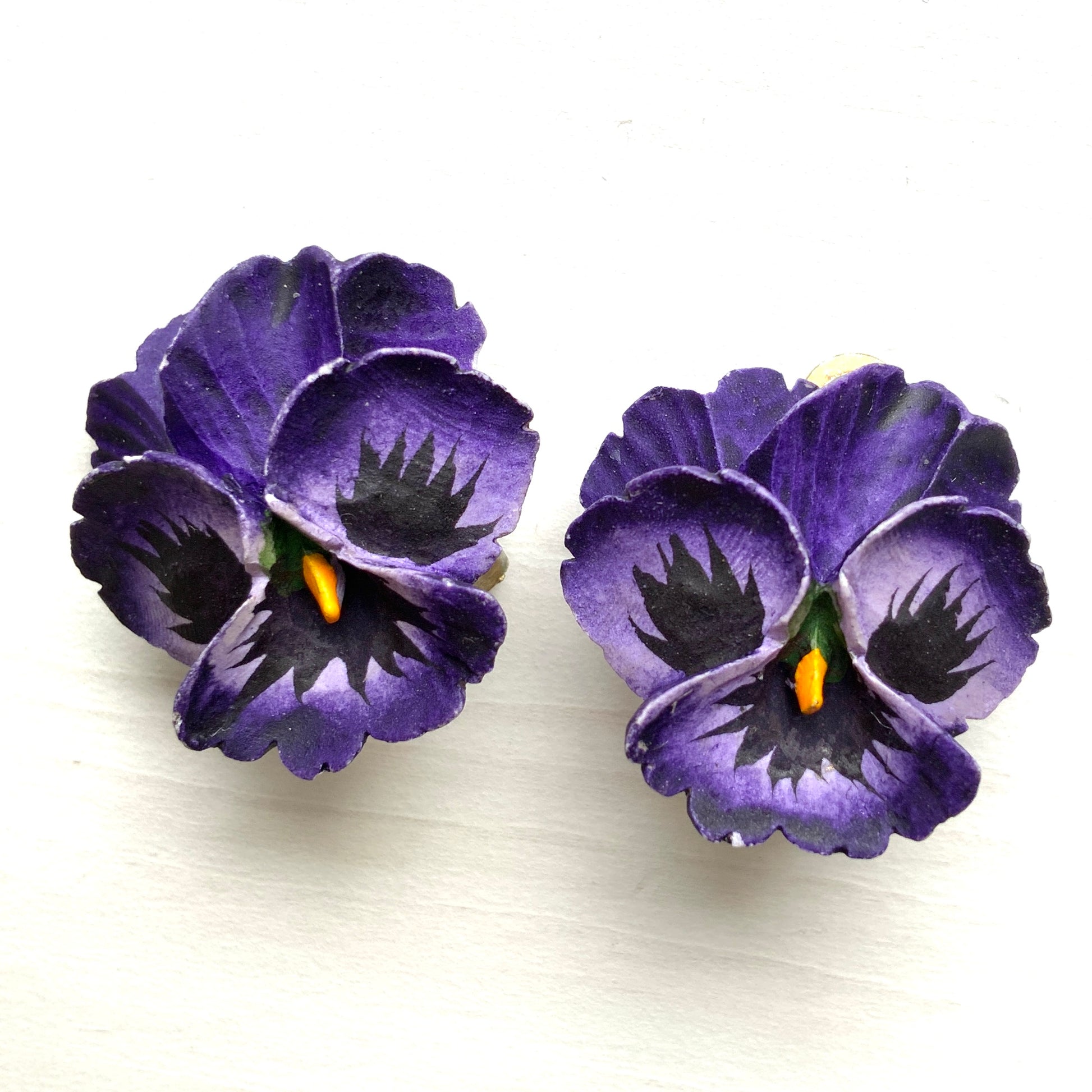 ヴィンテージ 1950年代 プラスチックパンジー クリップイヤリング