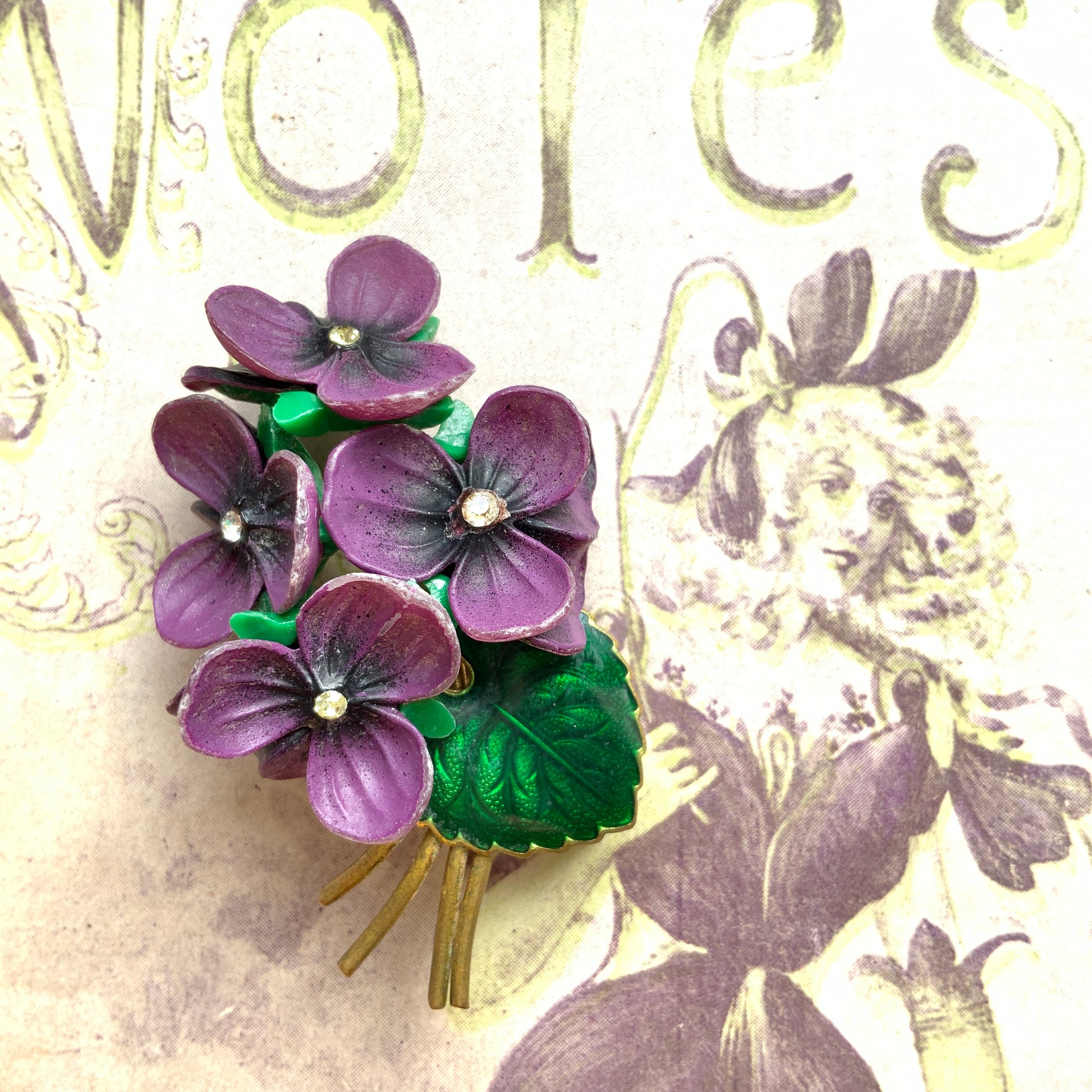 ヴィンテージ 1950年代 プラスチック スミレ ブローチ