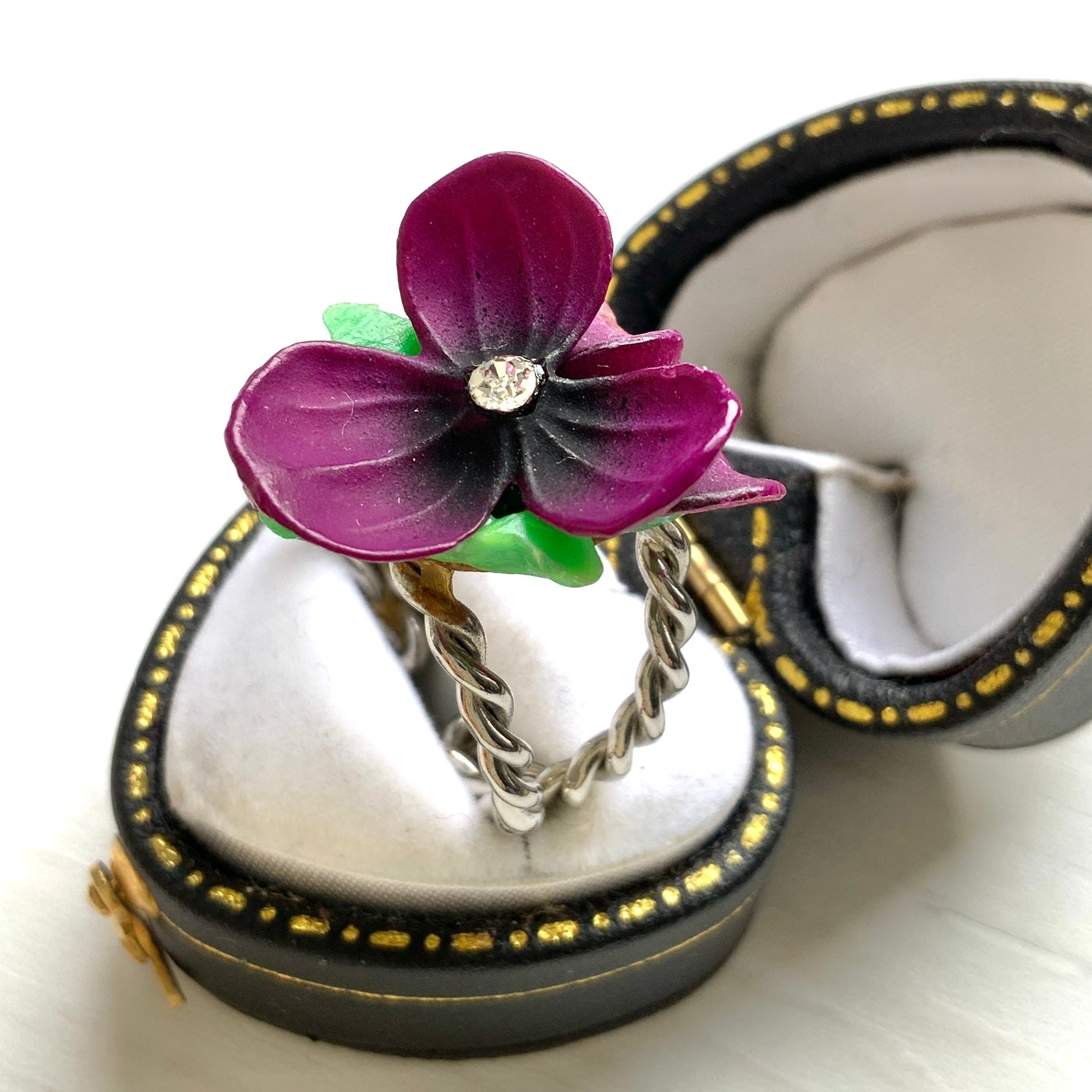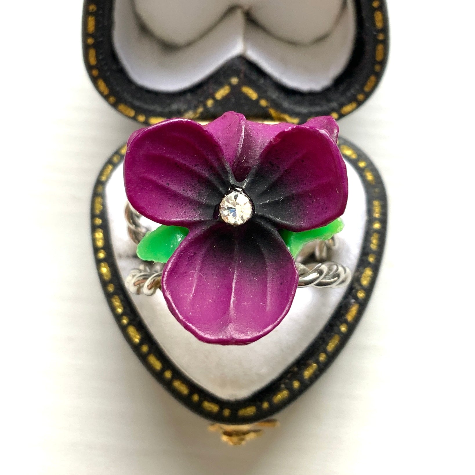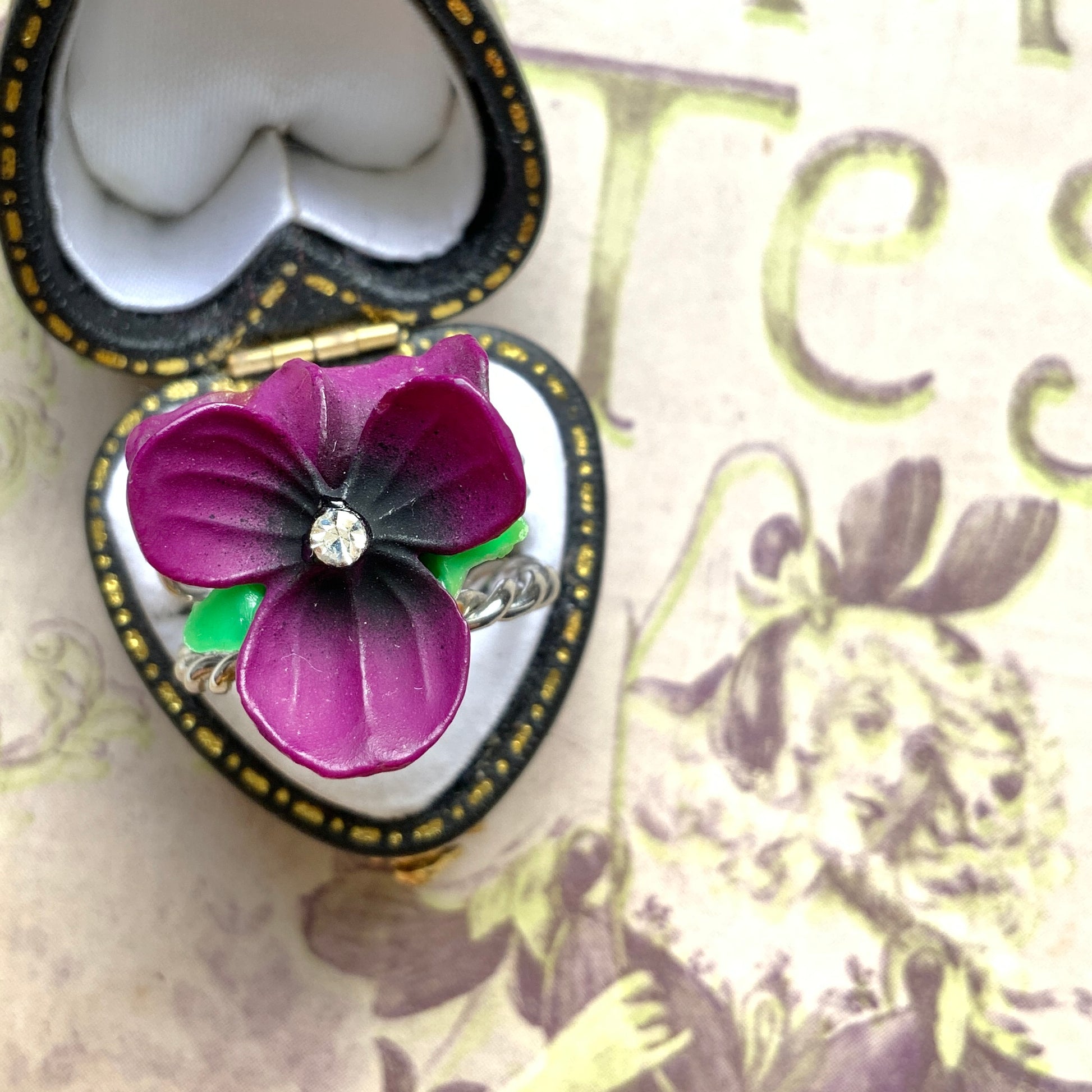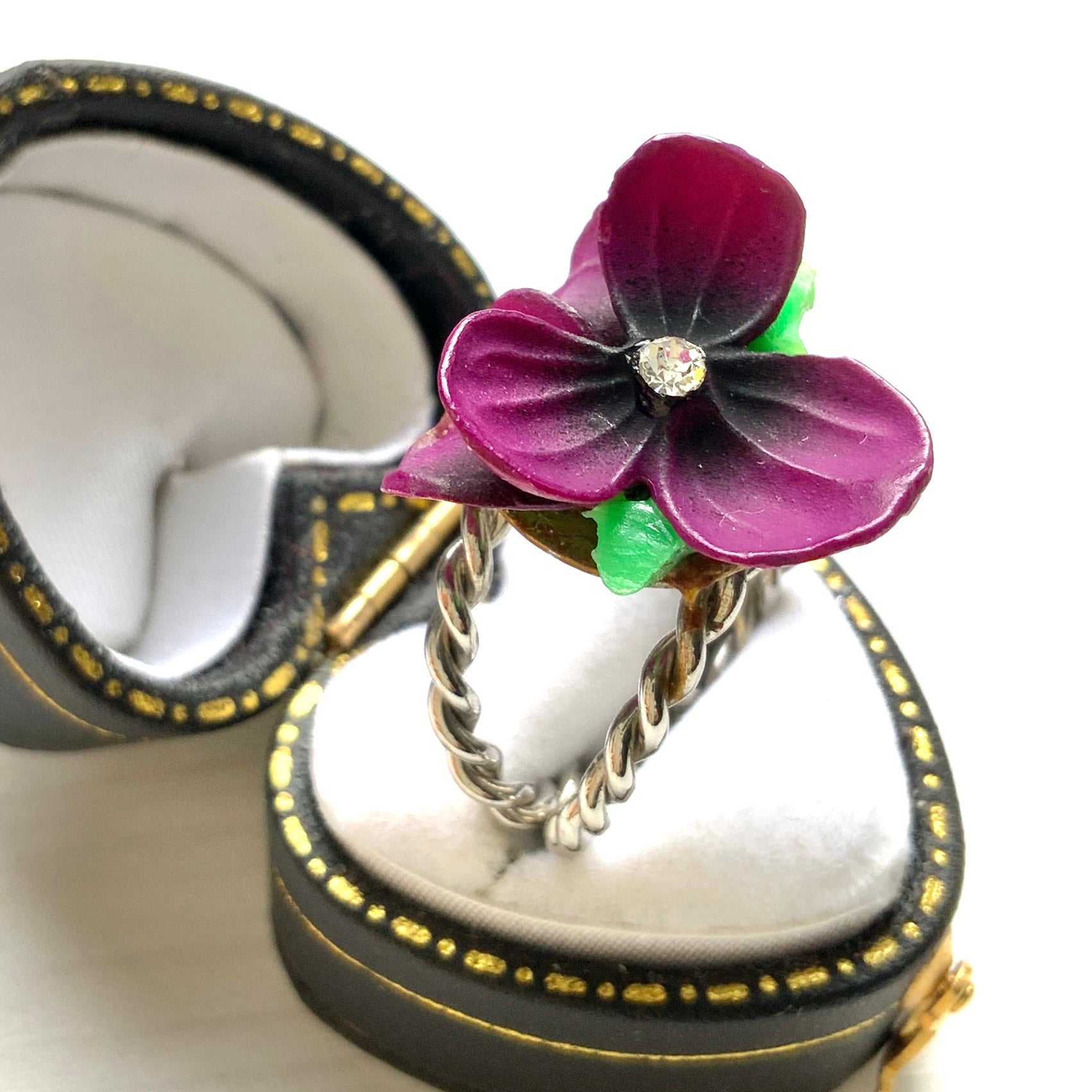 ヴィンテージ 1950年代 プラスチックスミレ フリーサイズリング