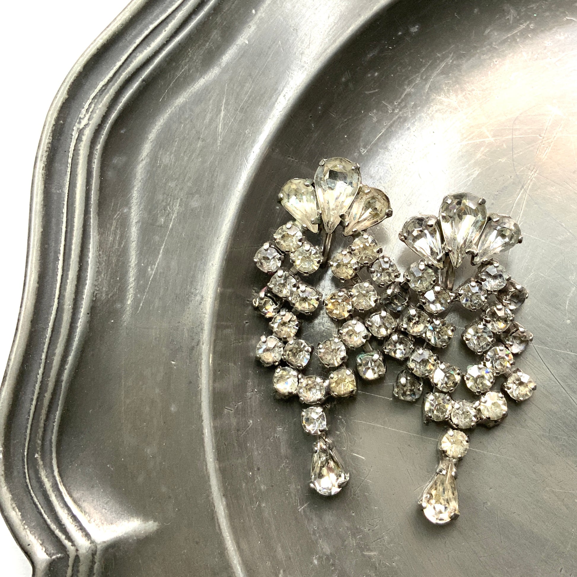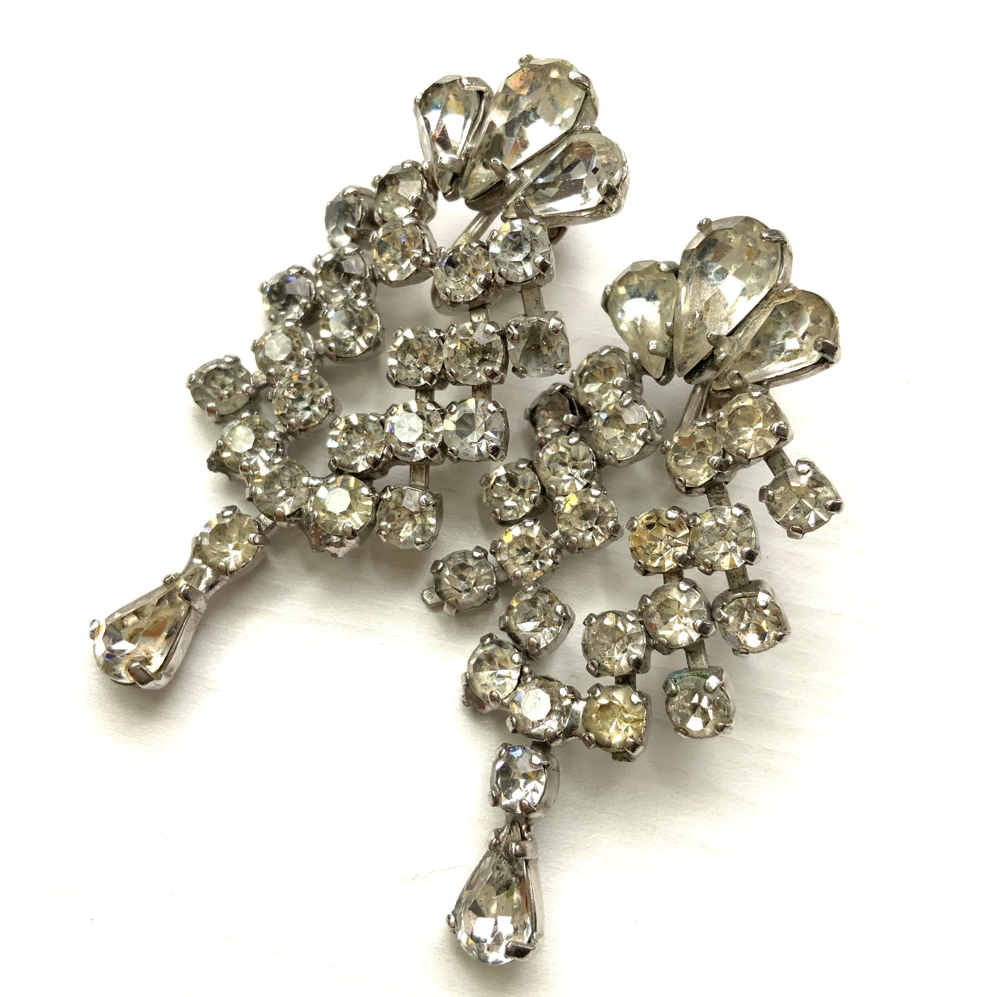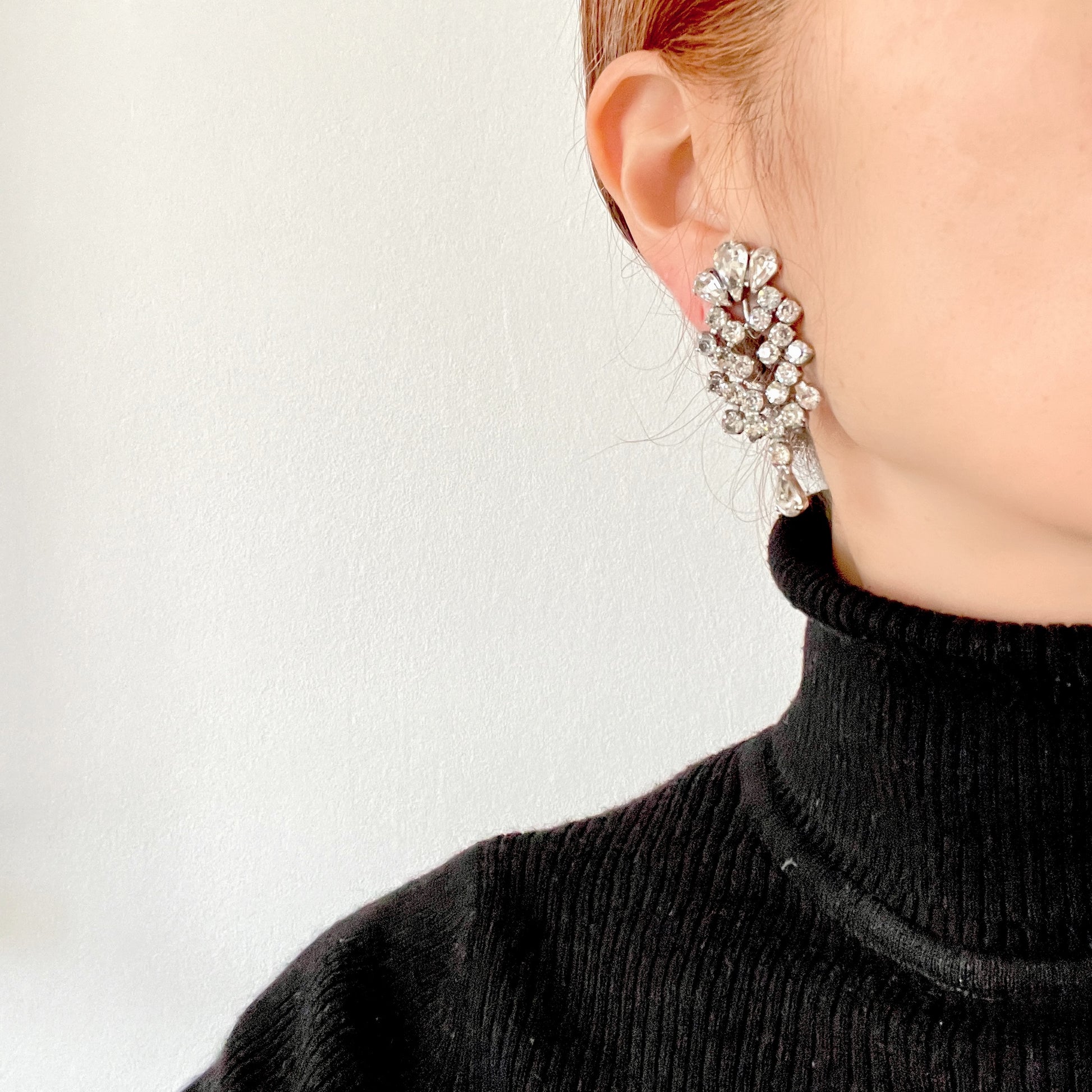 ヴィンテージ ジュエルクラフト ラインストーン ダングル クリップ イヤリング