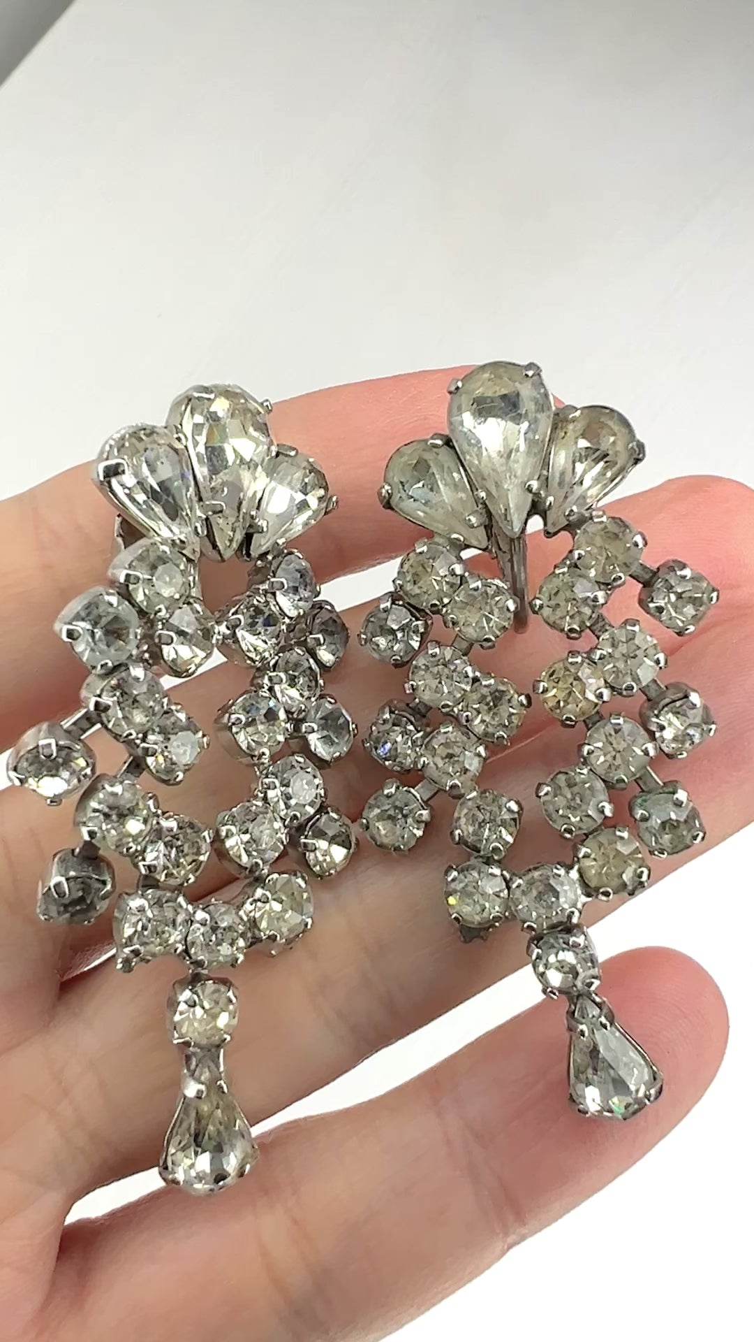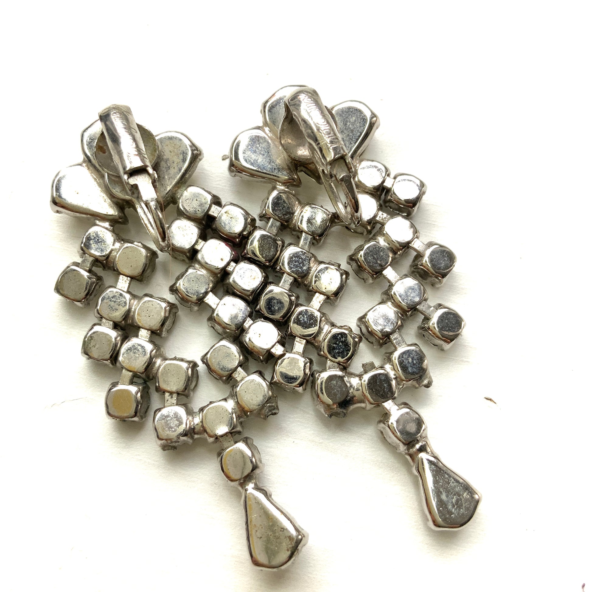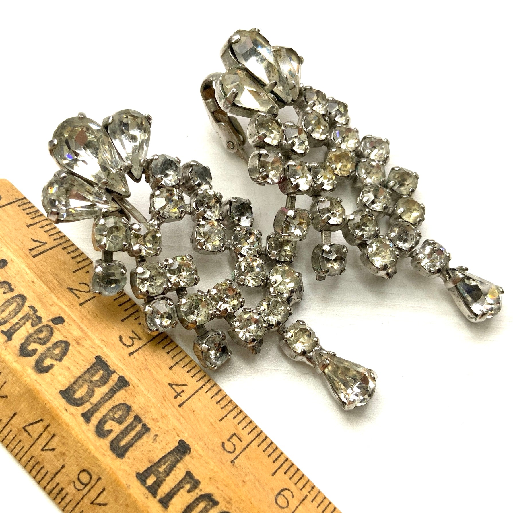ヴィンテージ ジュエルクラフト ラインストーン ダングル クリップ イヤリング