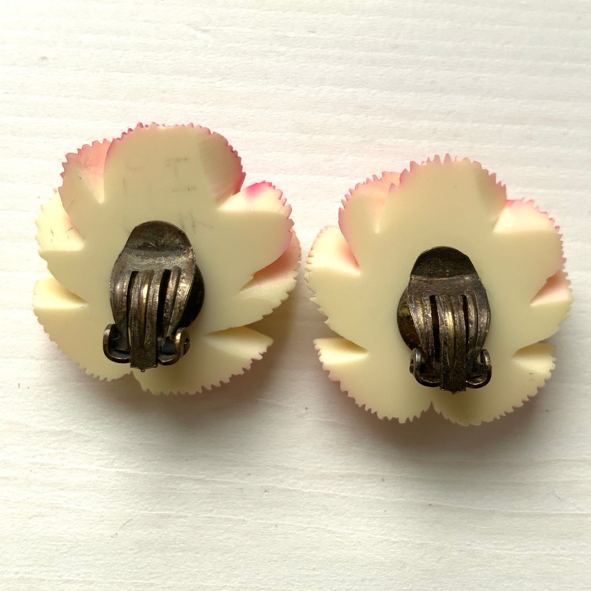 ヴィンテージ ピンク セルロイド パンジー クリップ イヤリング