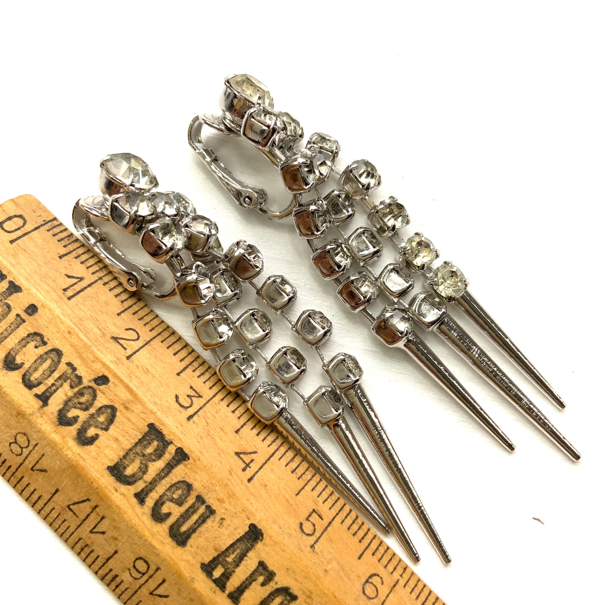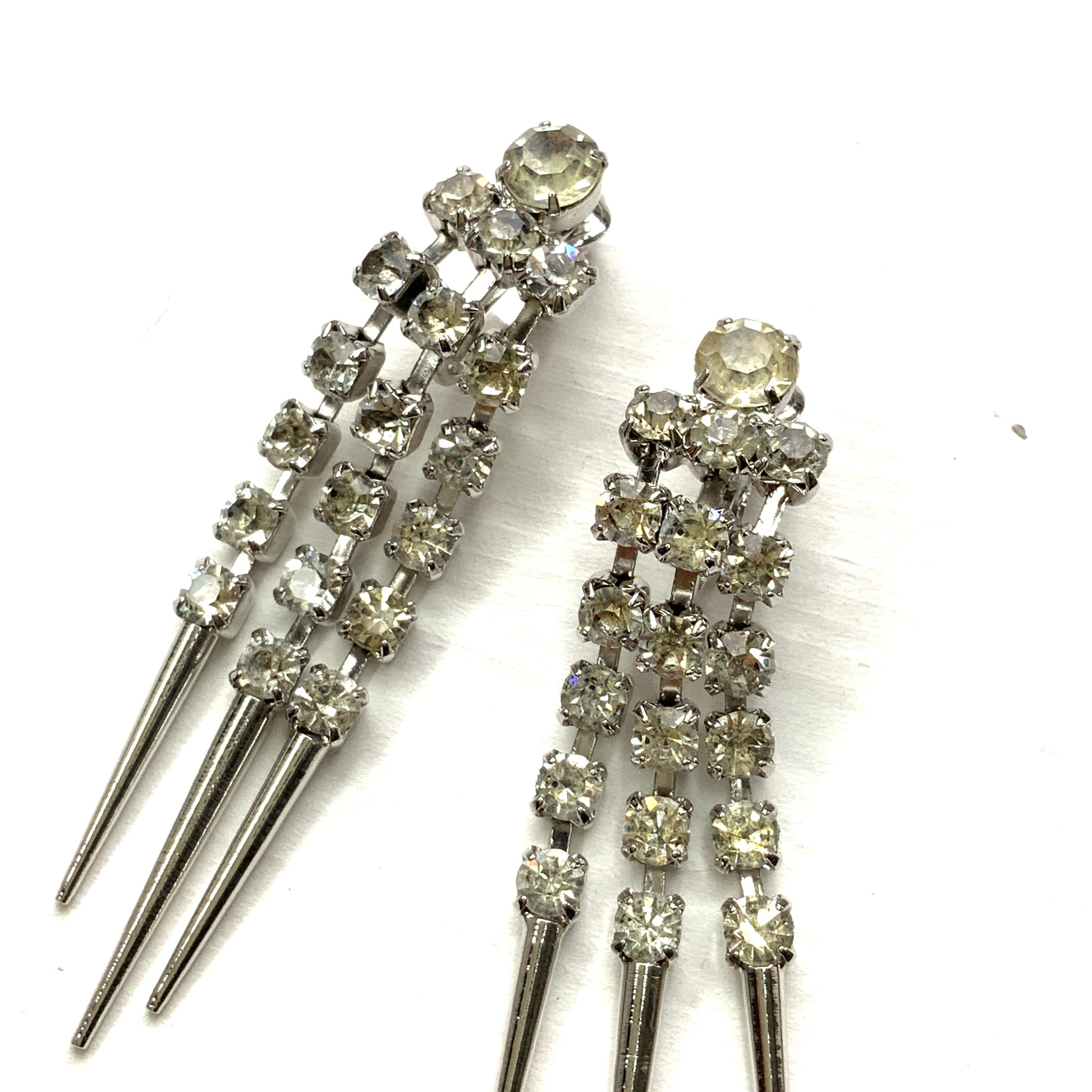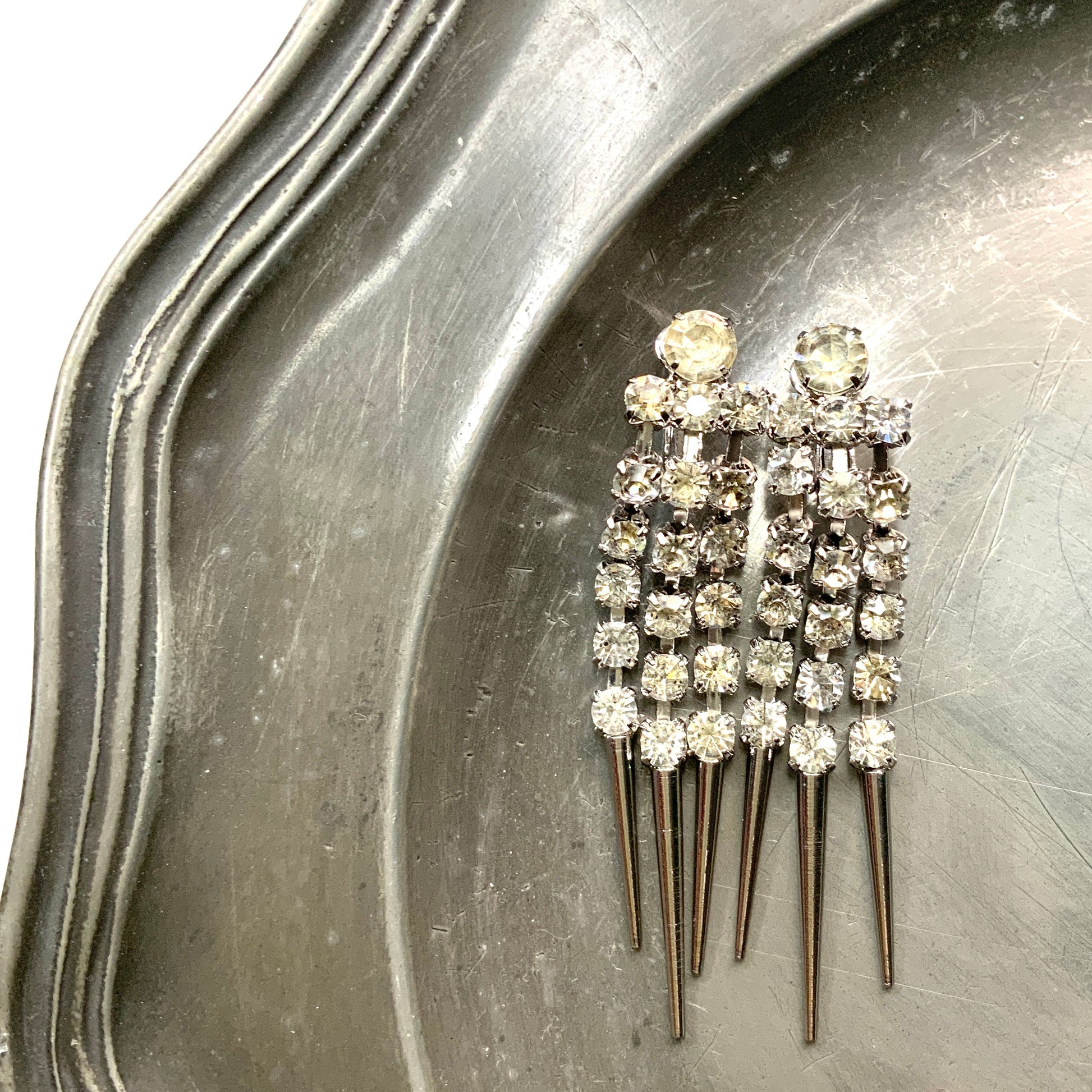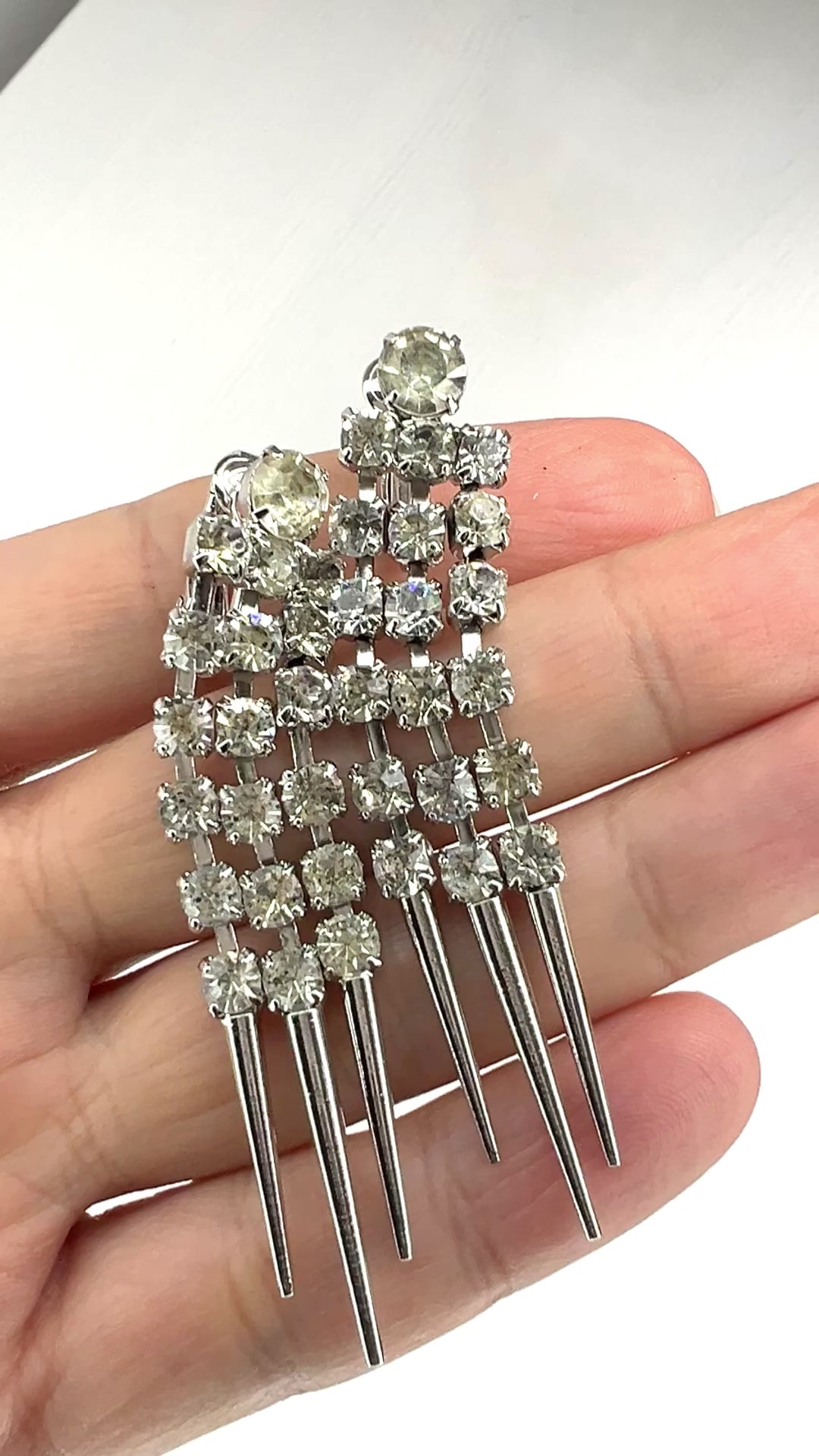 ヴィンテージ 1970 年代 サラ コベントリー ラインストーン & シルバー トーン スパイク クリップ イヤリング