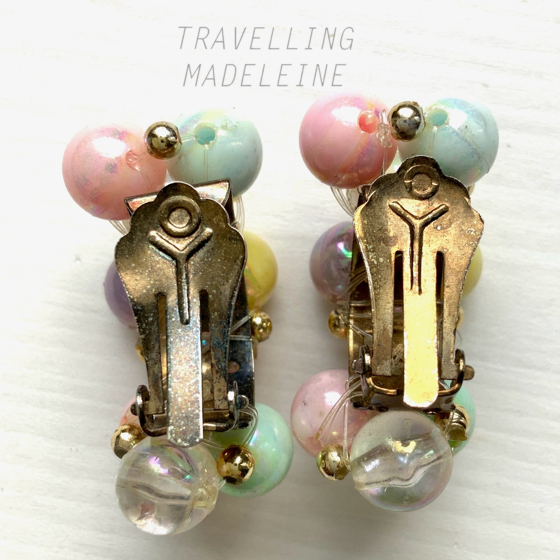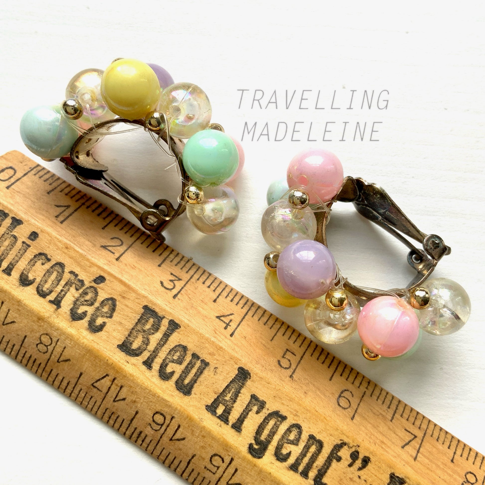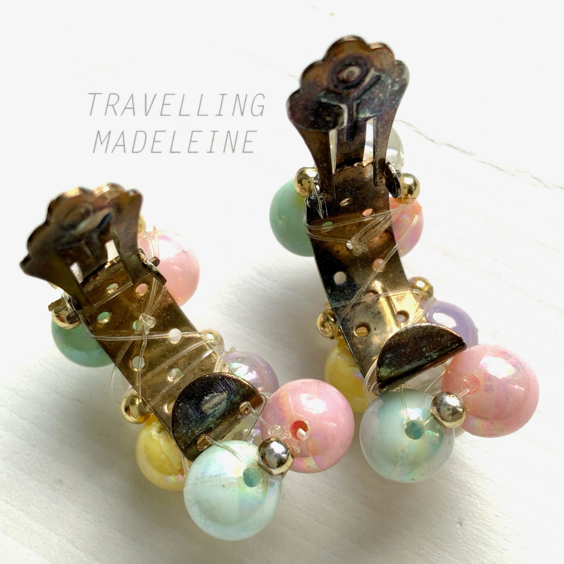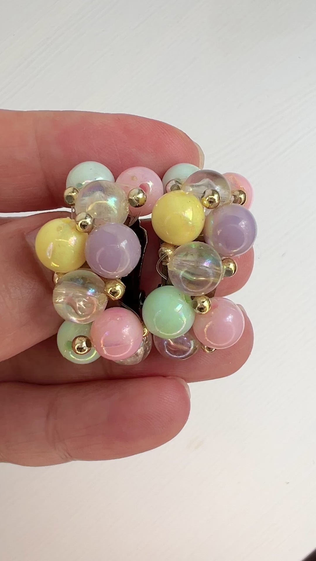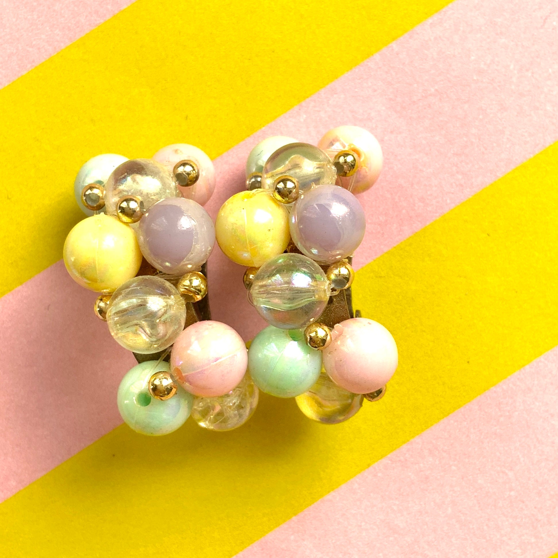 ヴィンテージ 1950 年代 パステル マルチカラー プラスチック ビーズ ハーフフープ クリップ イヤリング
