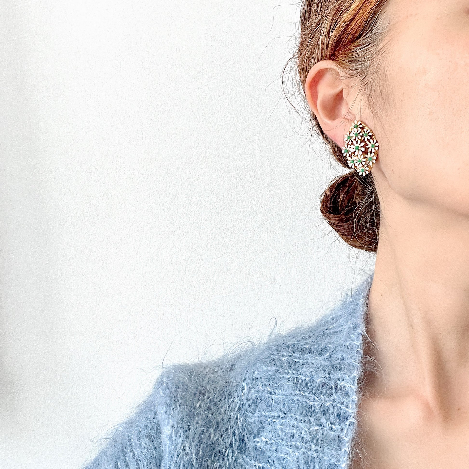 ちいさなかわいいデイジーのようなお花がダイヤ型にならんだクリップイヤリング。