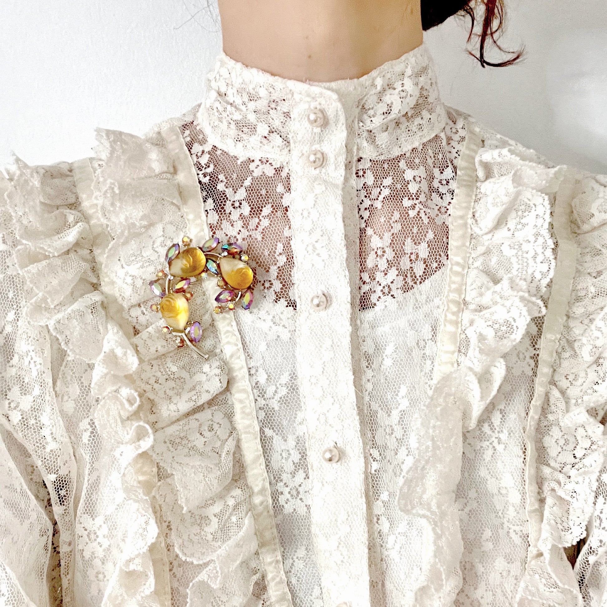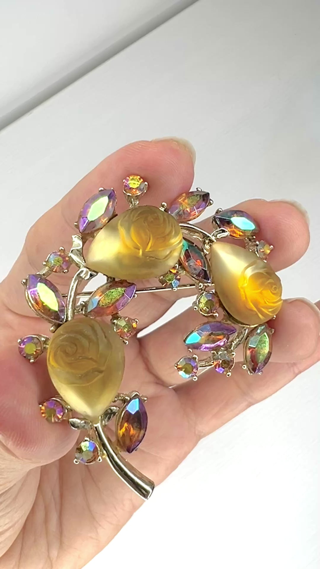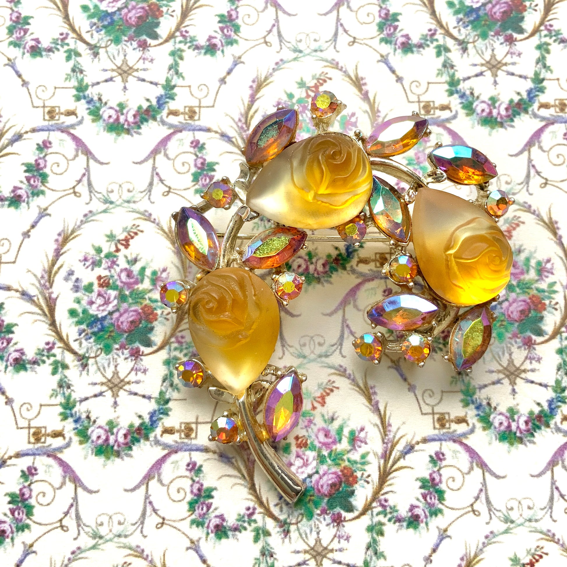 VINTAGE BSK Orange Frosted Glass Rose Brooch