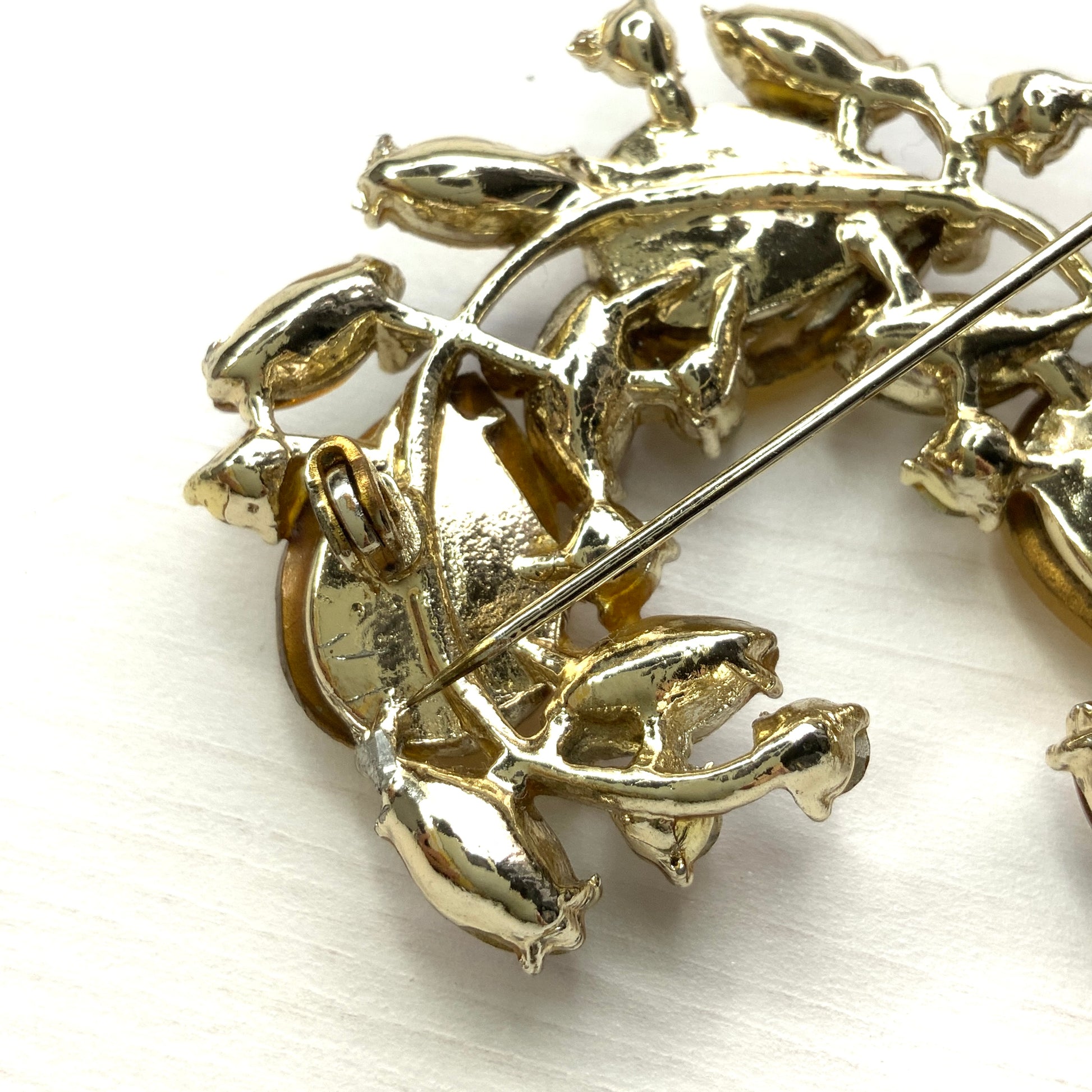 オレンジカラーのフロストグラスのバラの蕾がついた枝のブローチ。