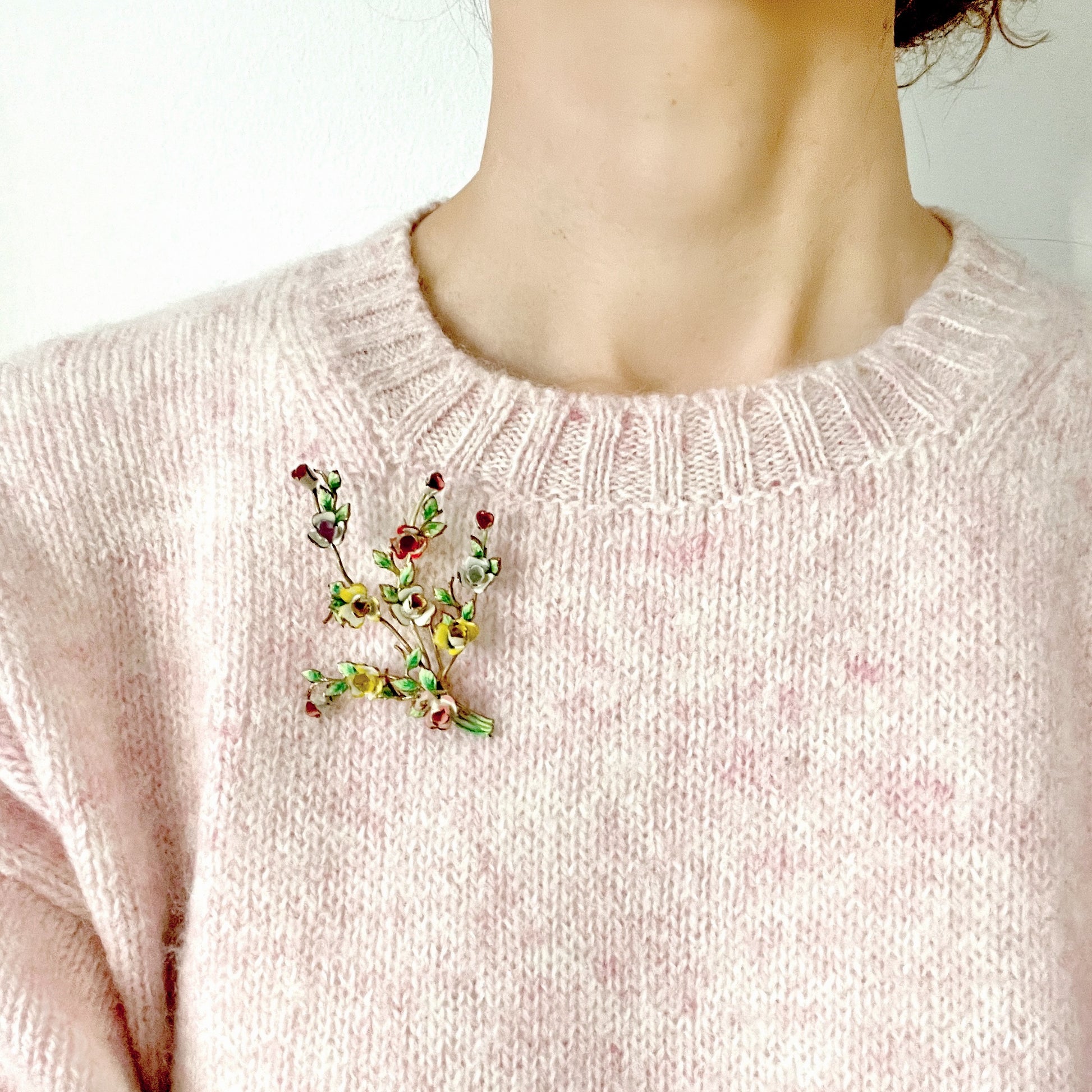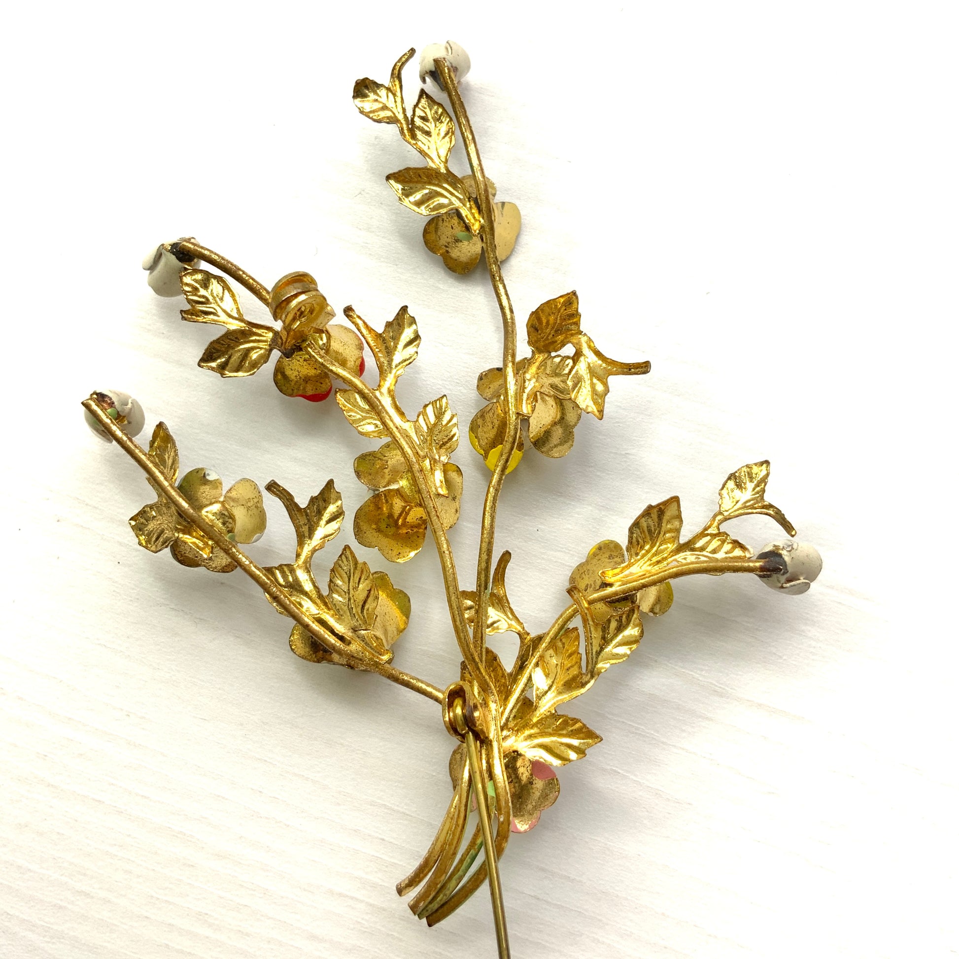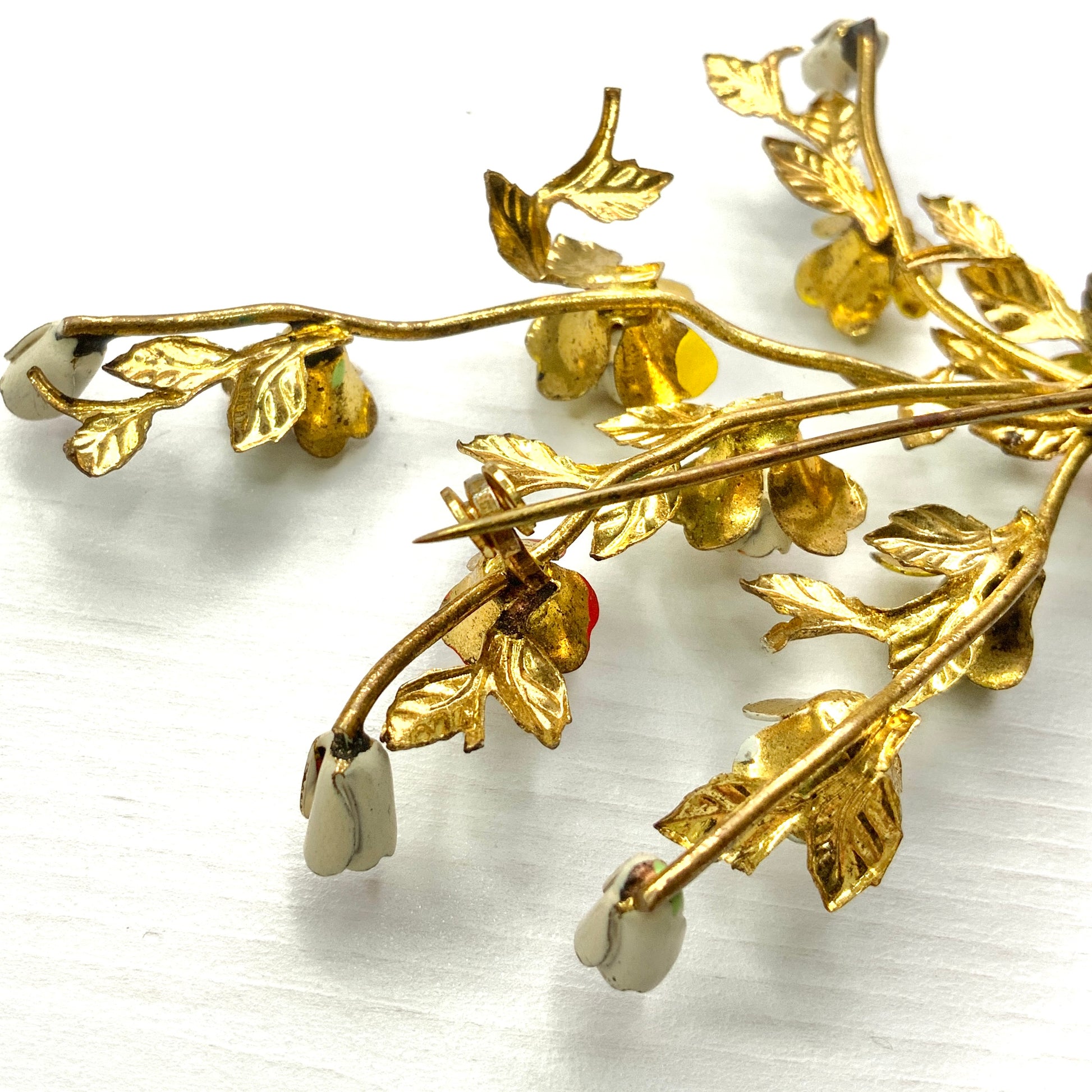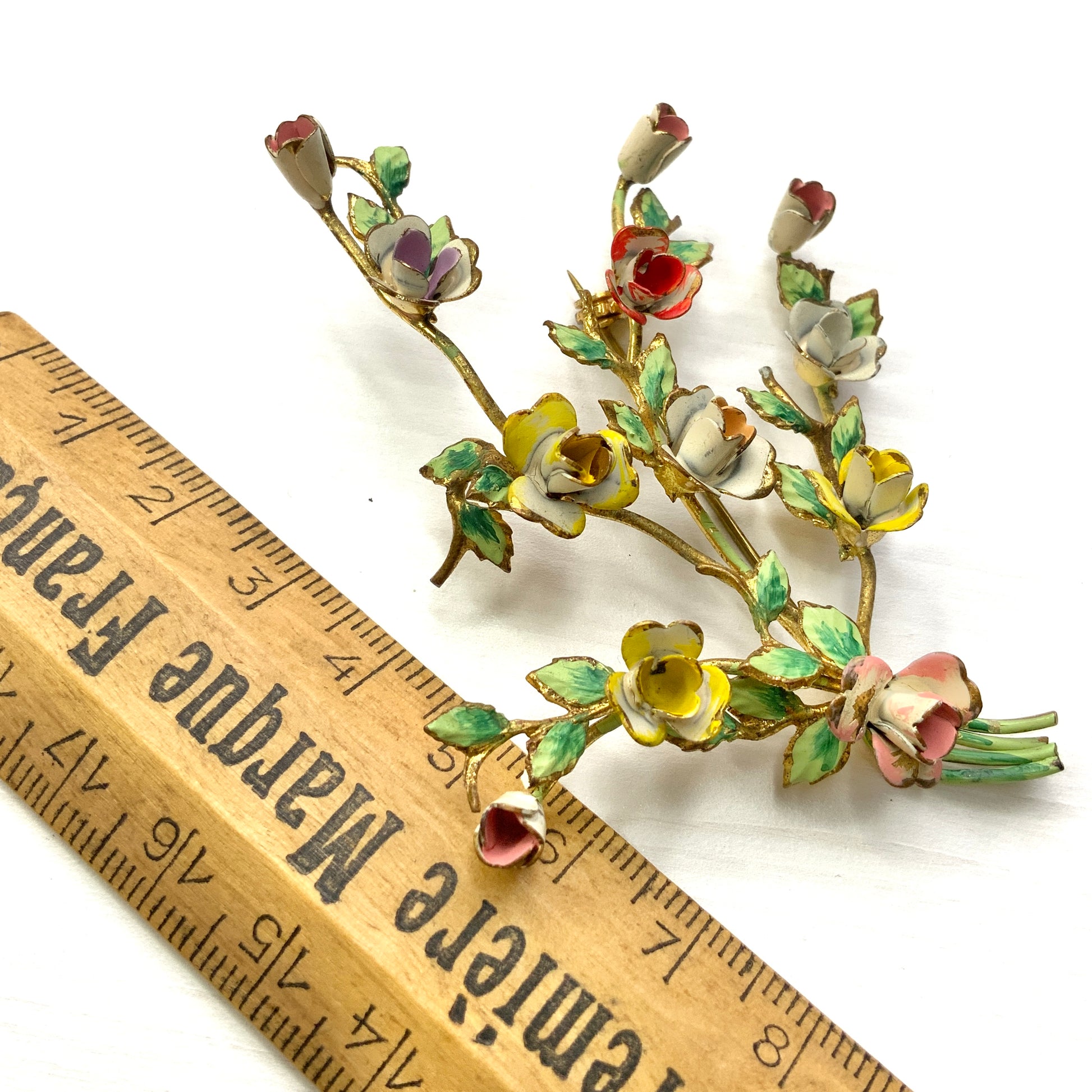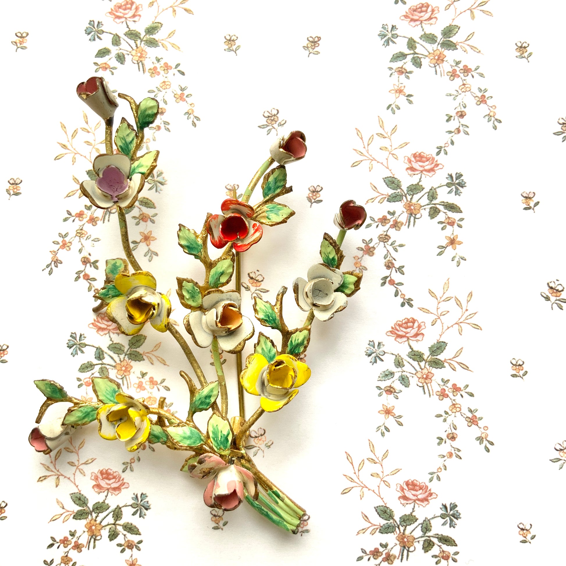 VINTAGE 1950's Enamel Multicolour Rose Spray Brooch