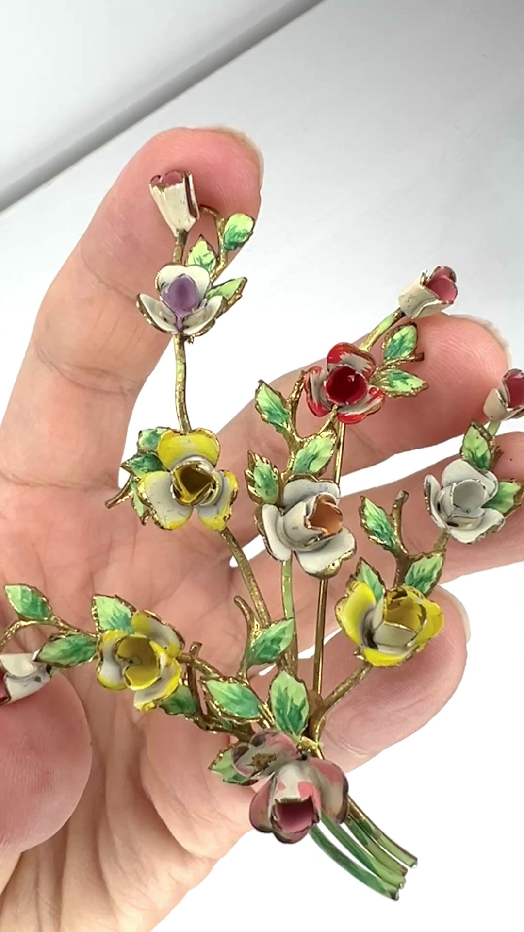 The hand-painted enamel has a lovely gradation on the leaves and petals.