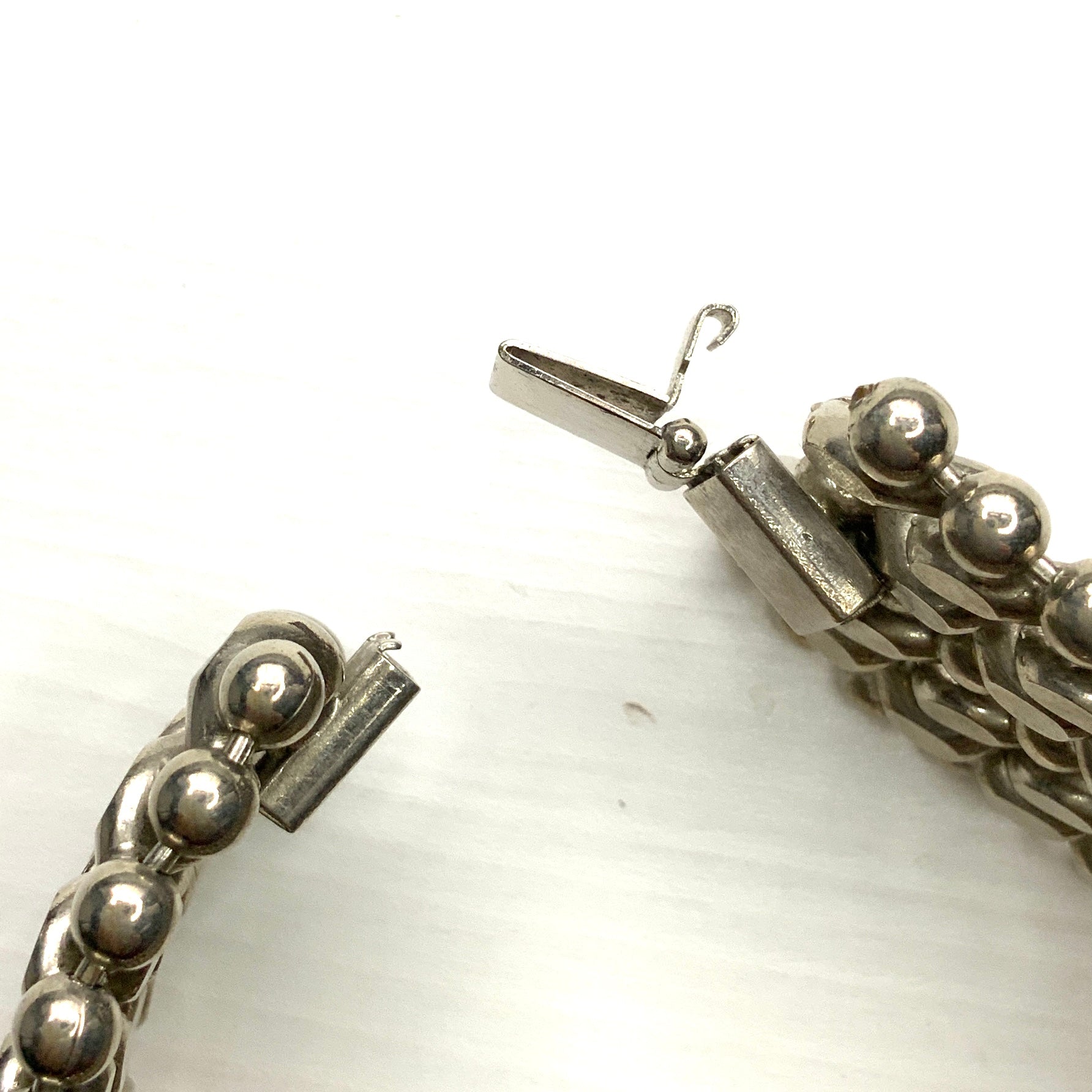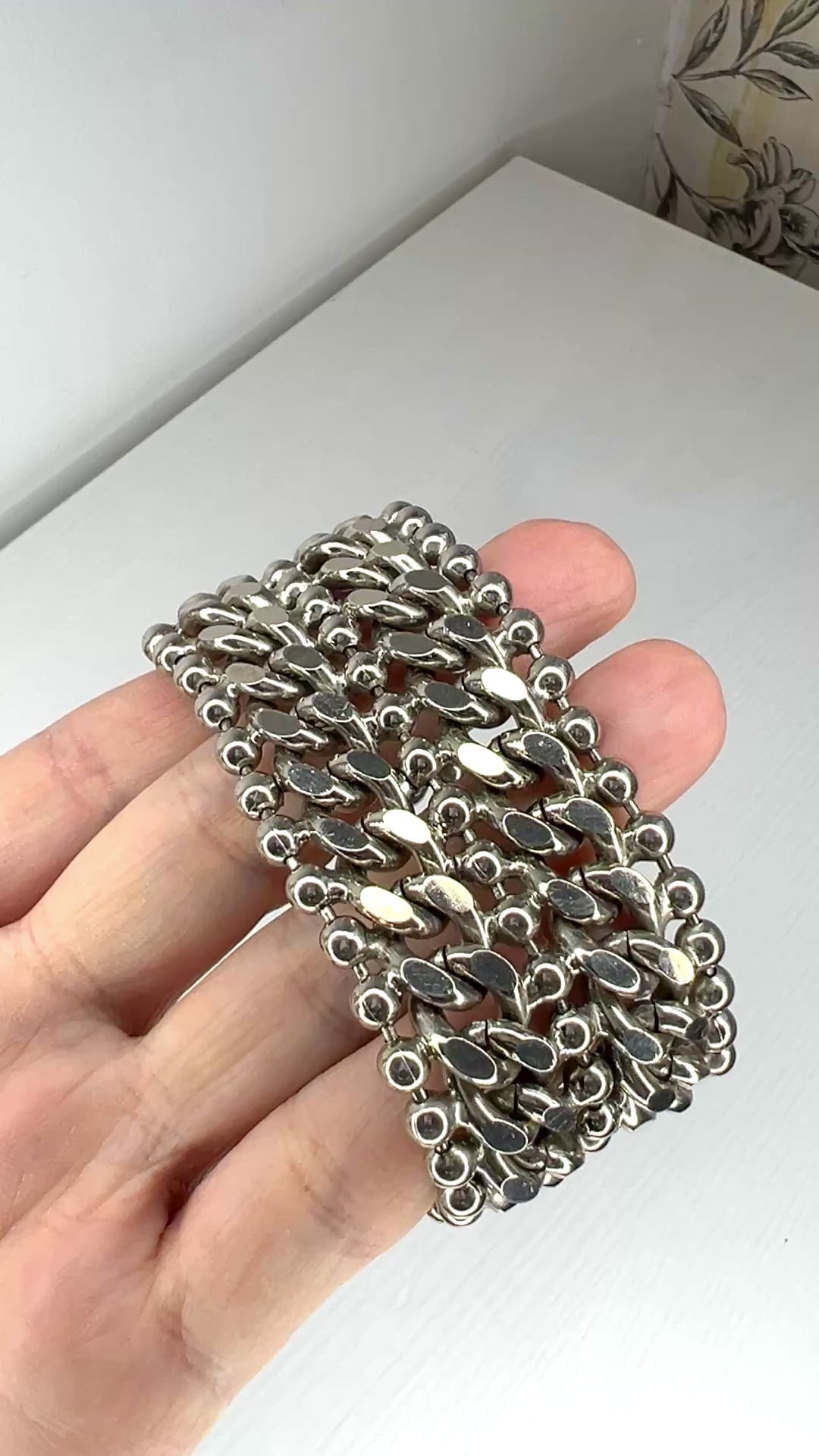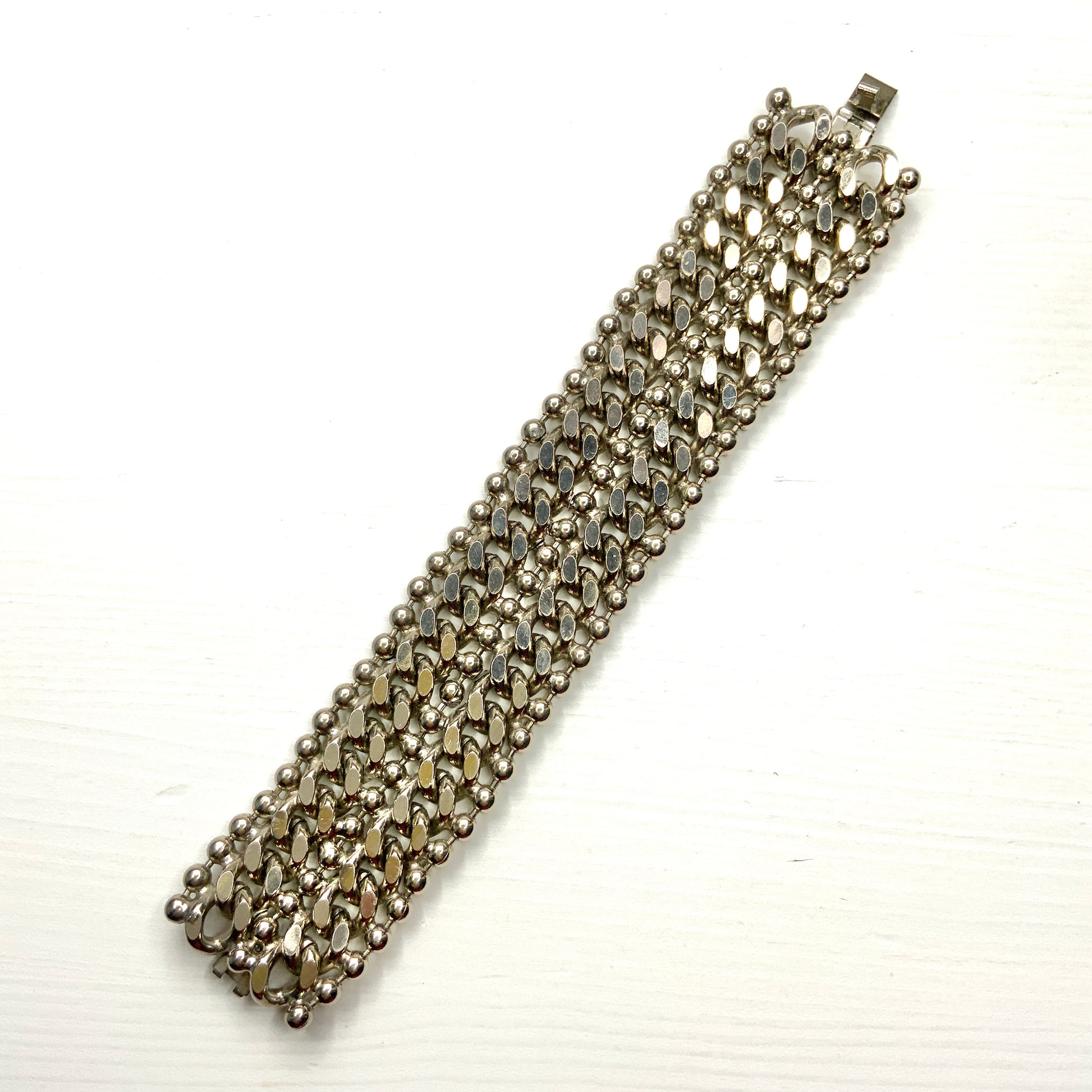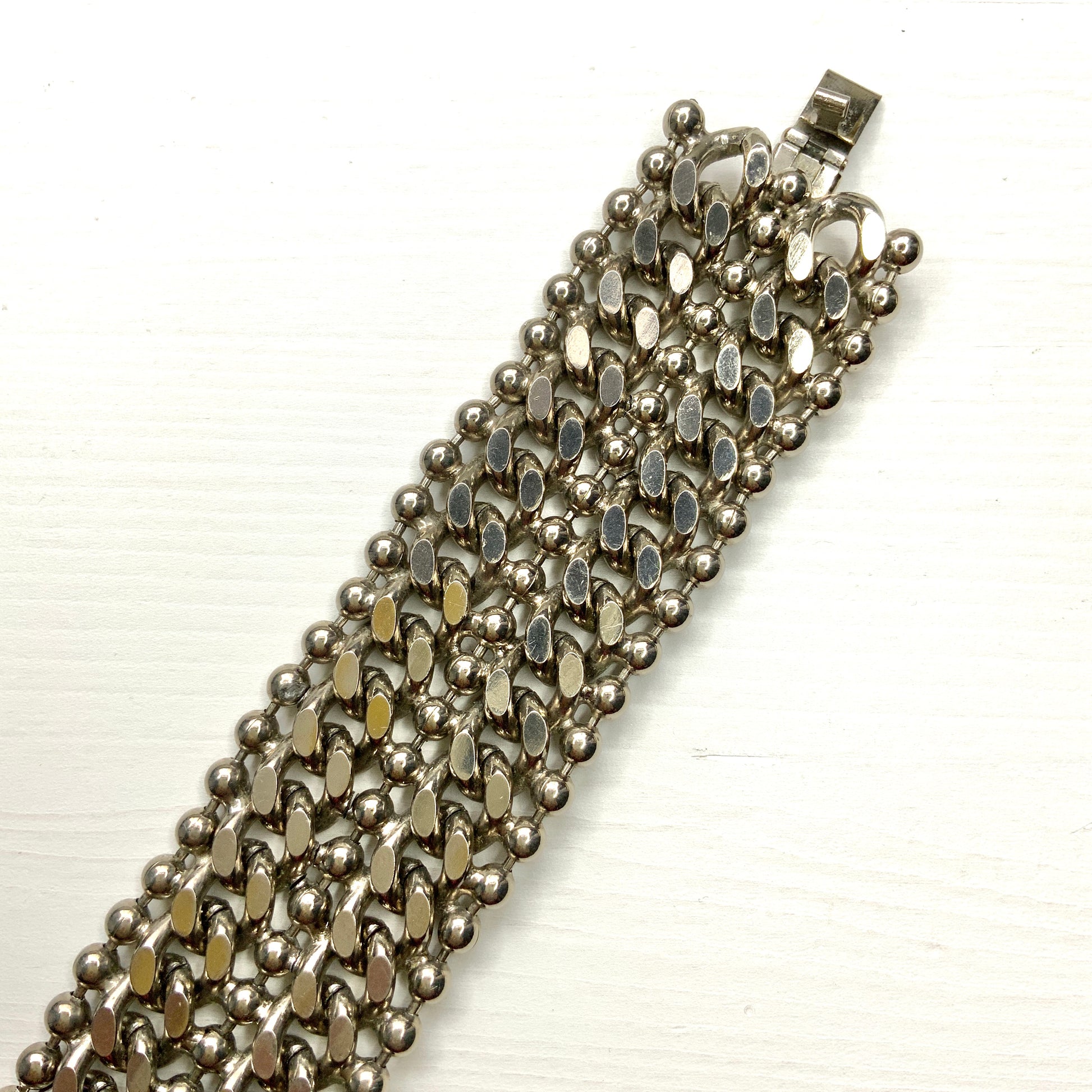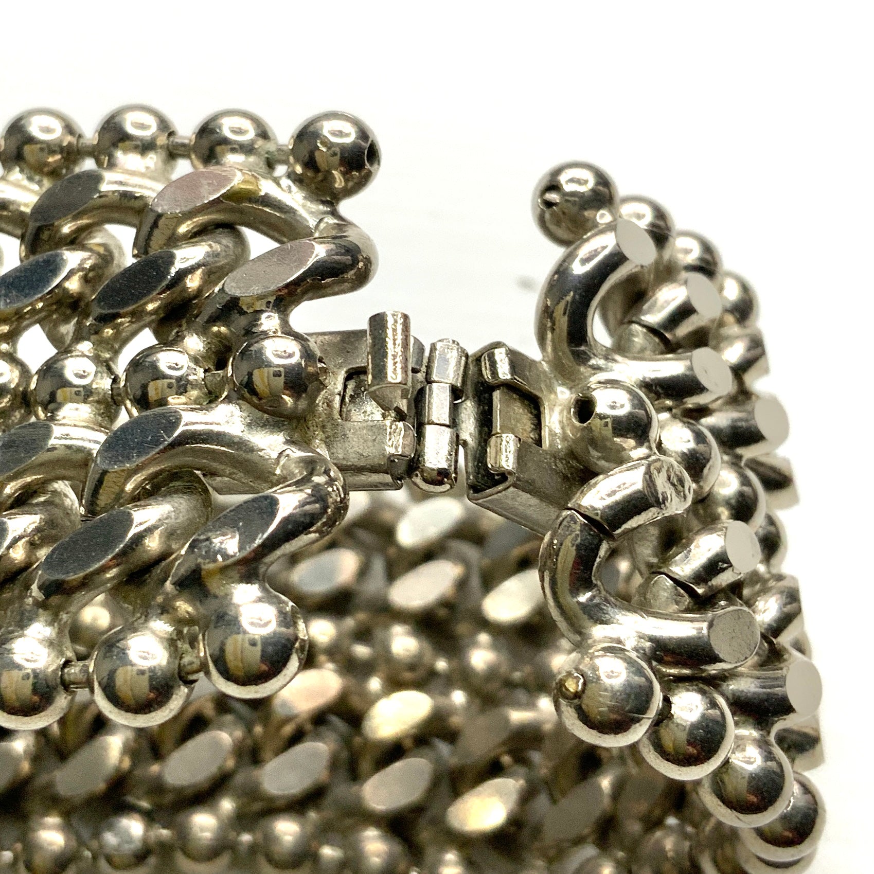 シルバートーンのチェーンを編み込んだ、重厚感のあるブレスレット。
