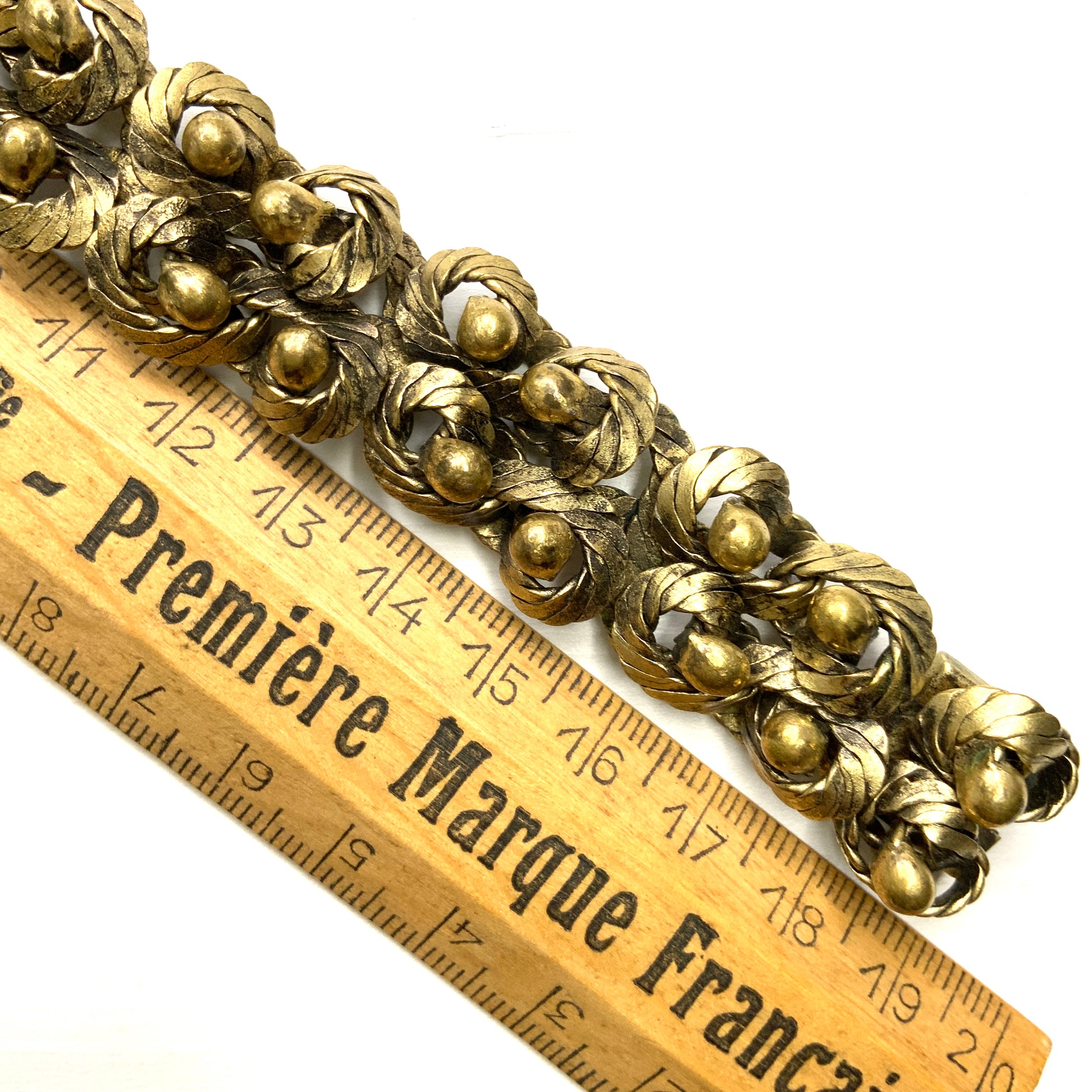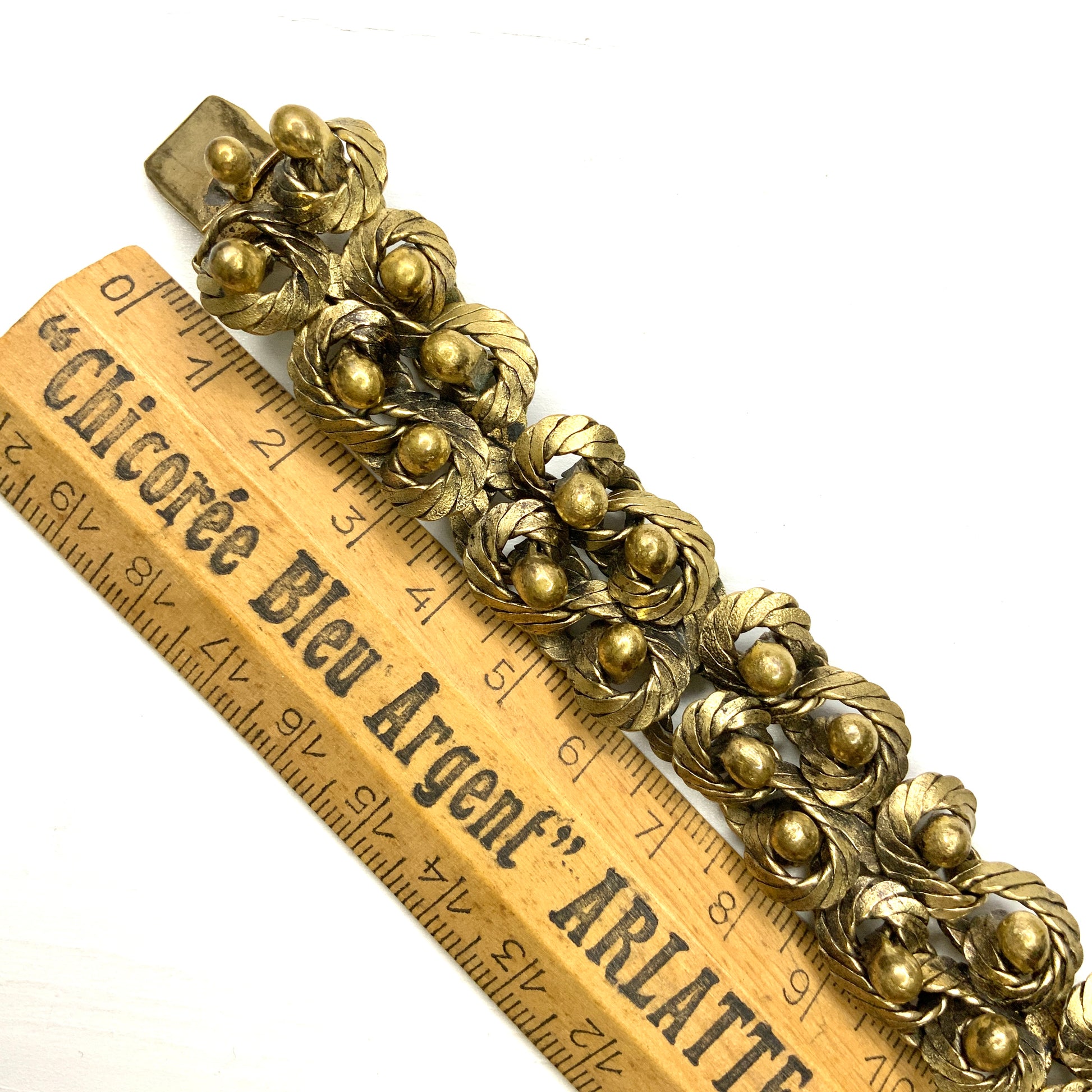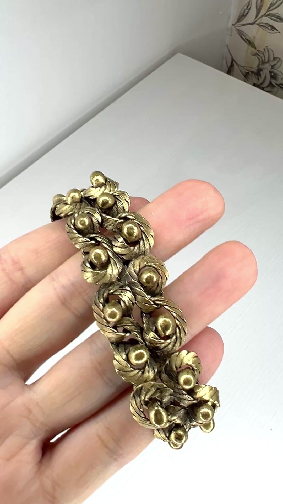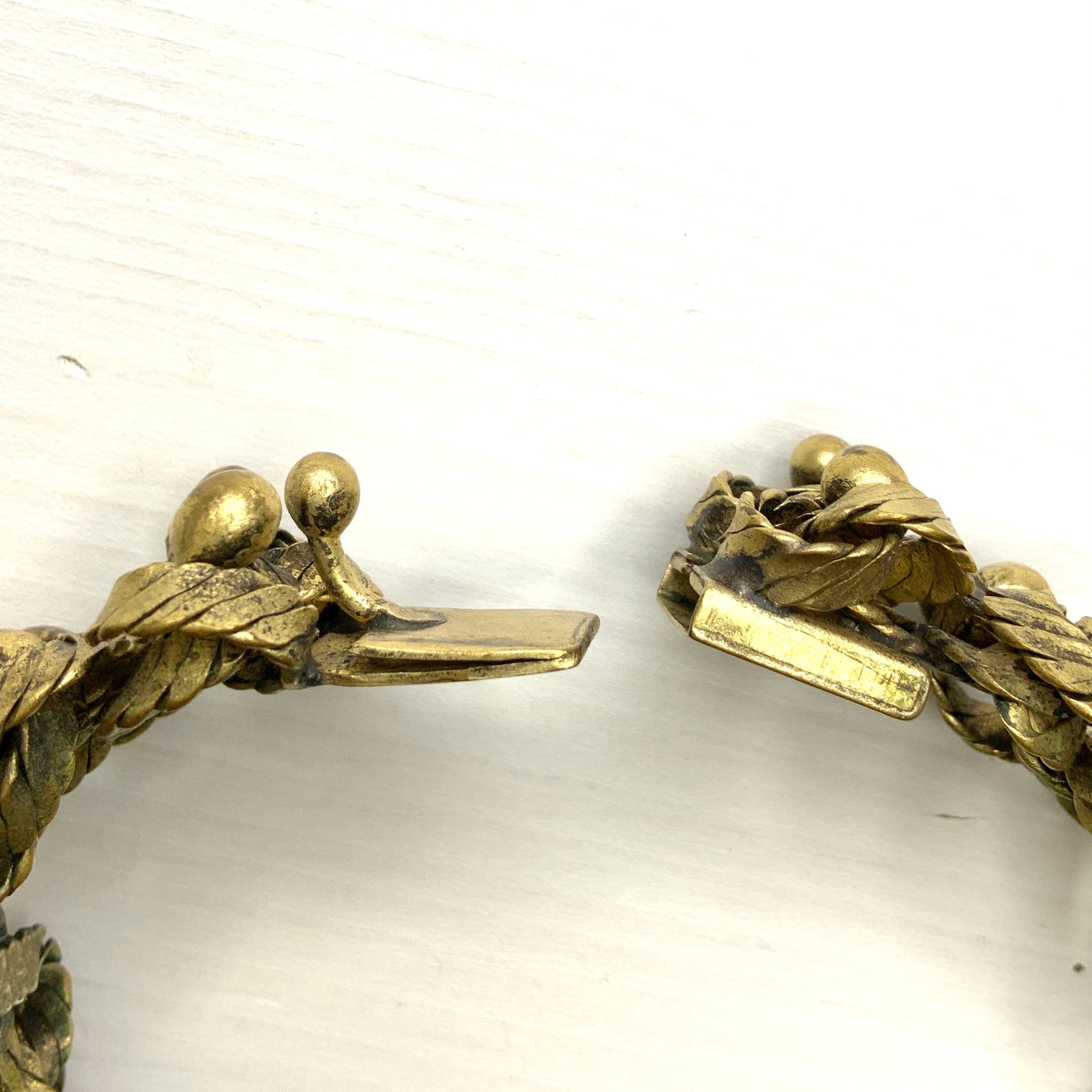 ねじれ模様が刻まれたゴールドトーンメタルが巻きついたユニークなデザインのブレスレット。