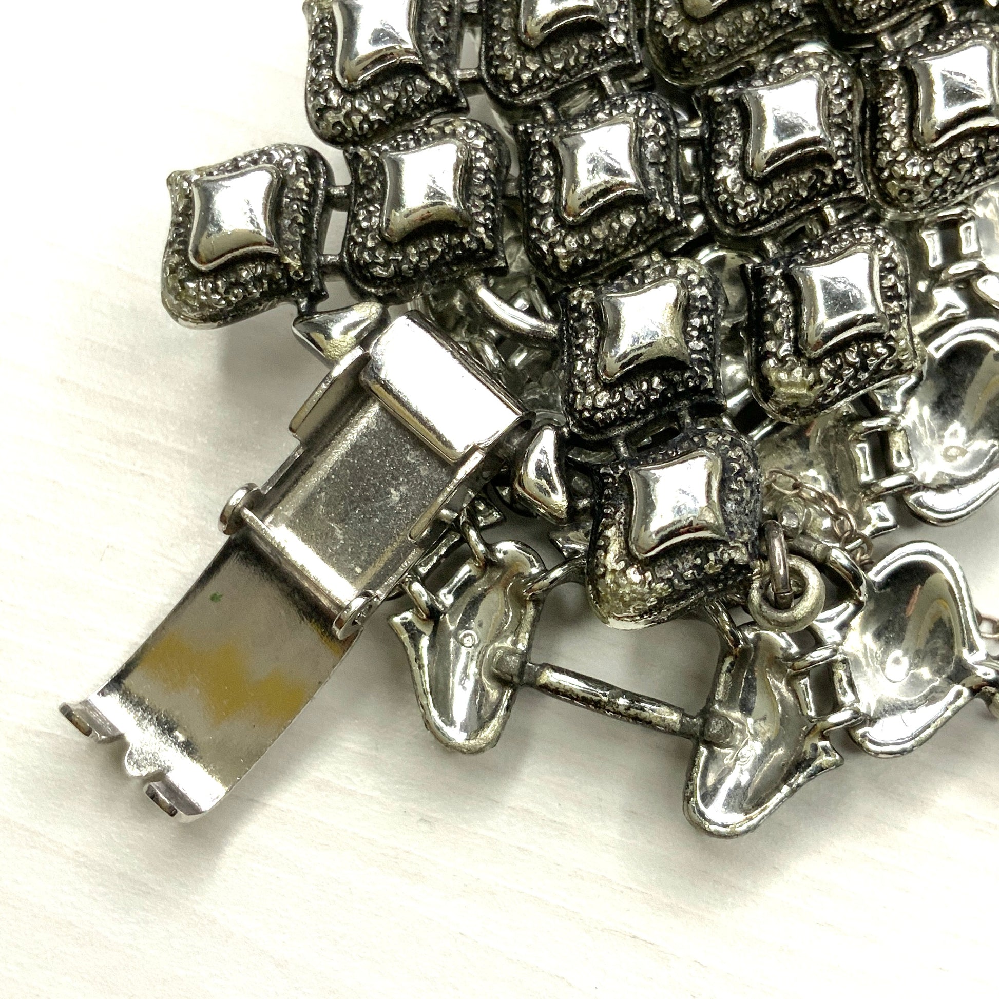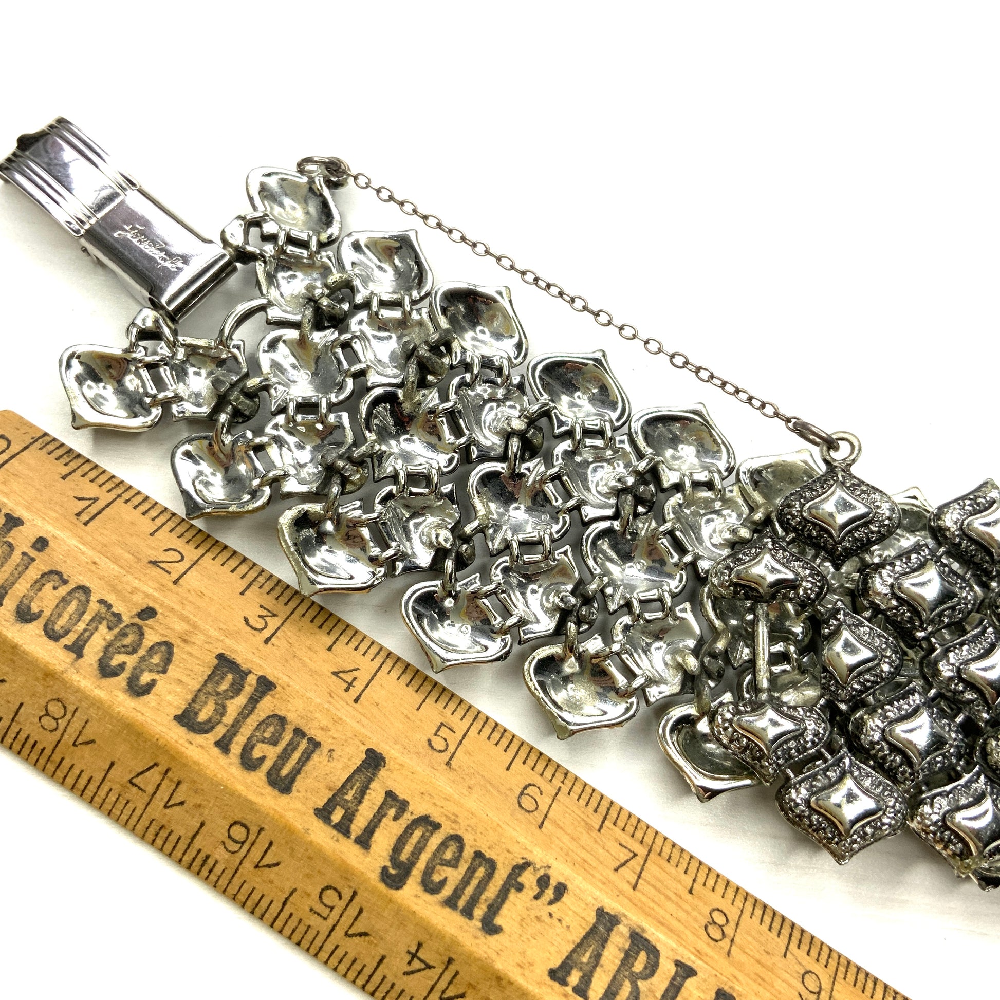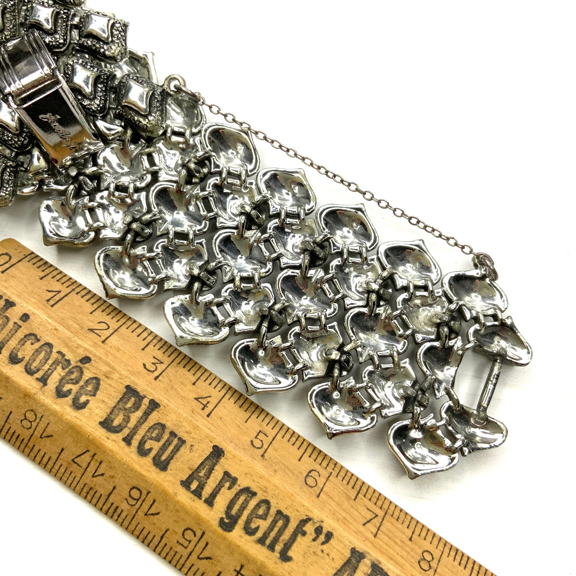 VINTAGE JEWELCRAFT Silver Tone Diamond Link Wide Bracelet