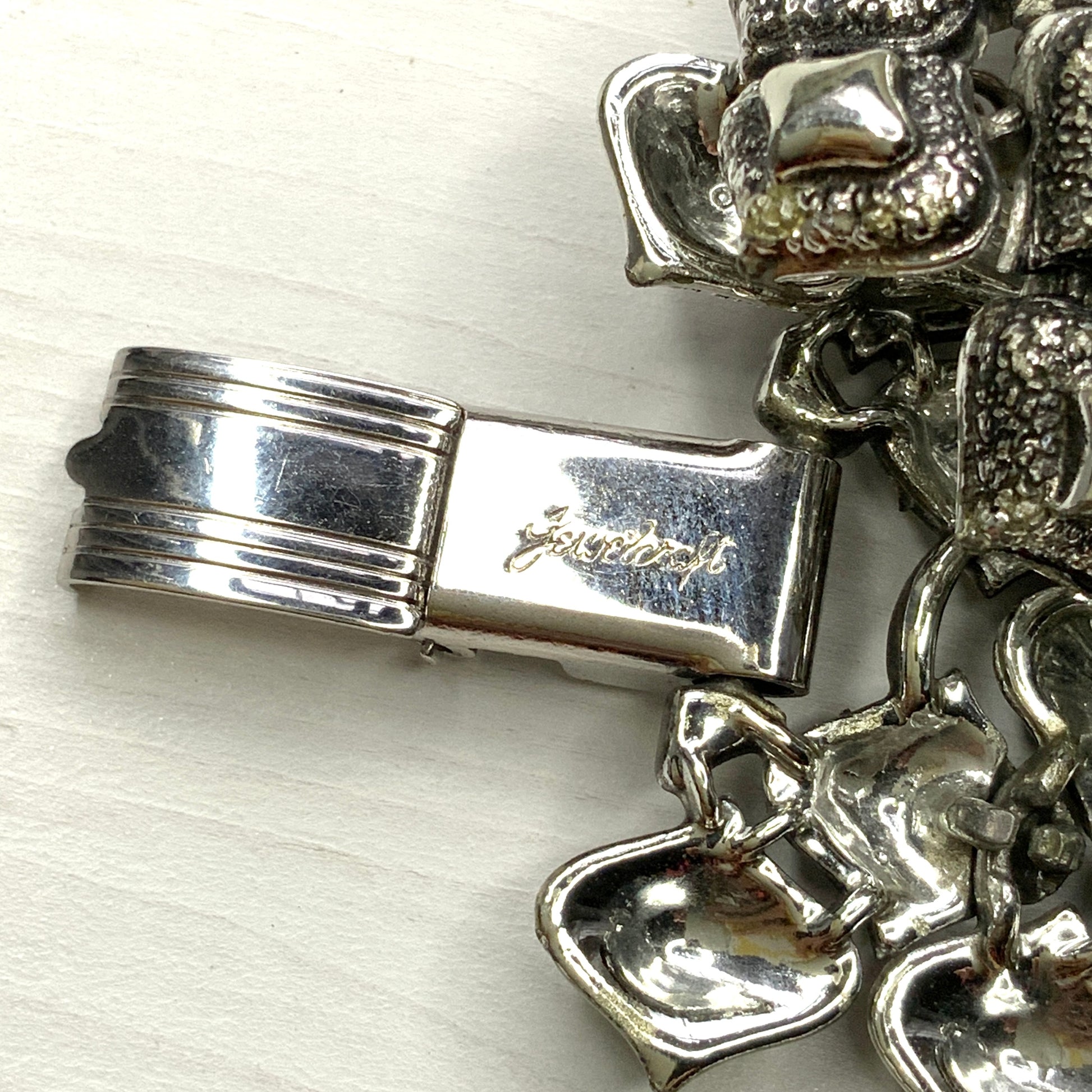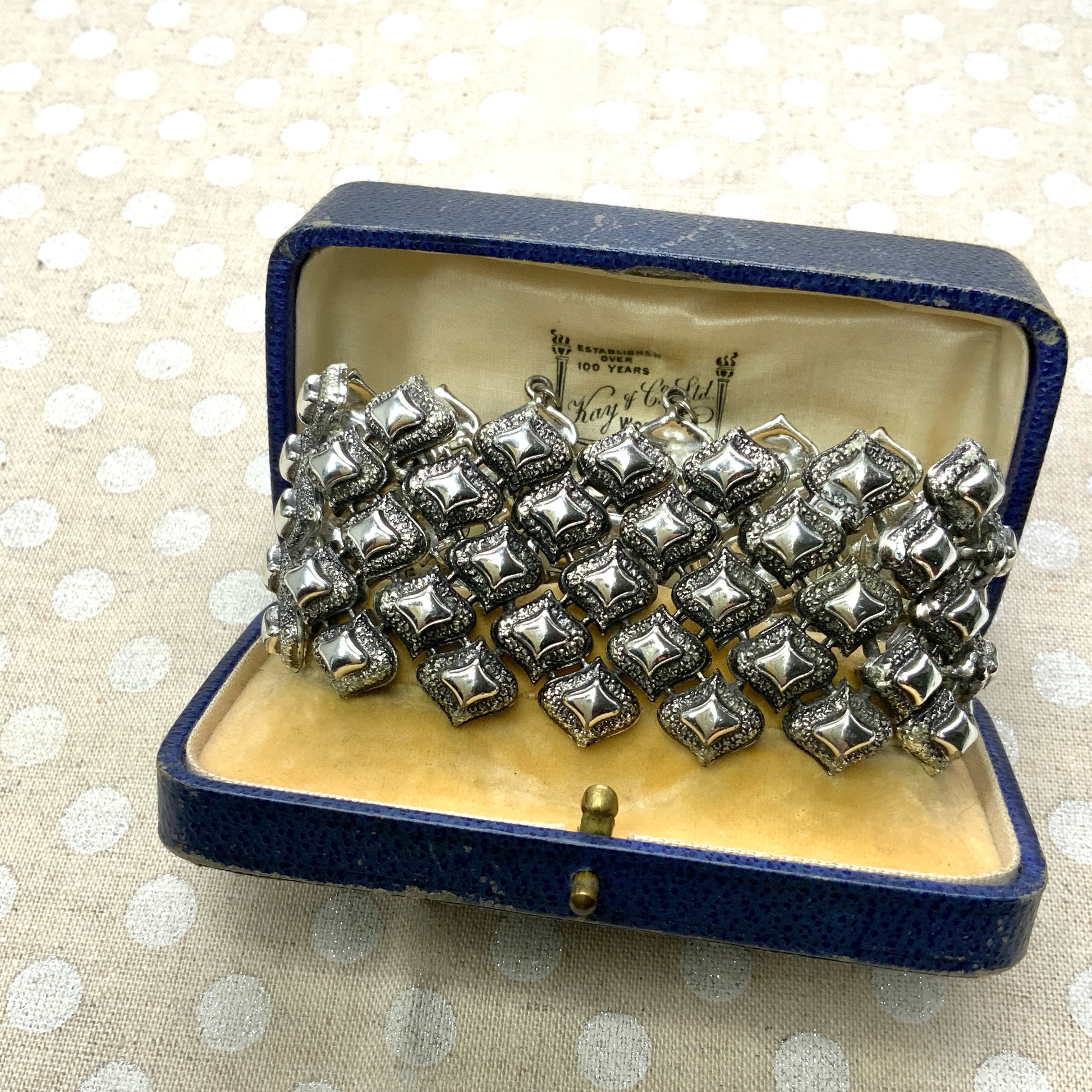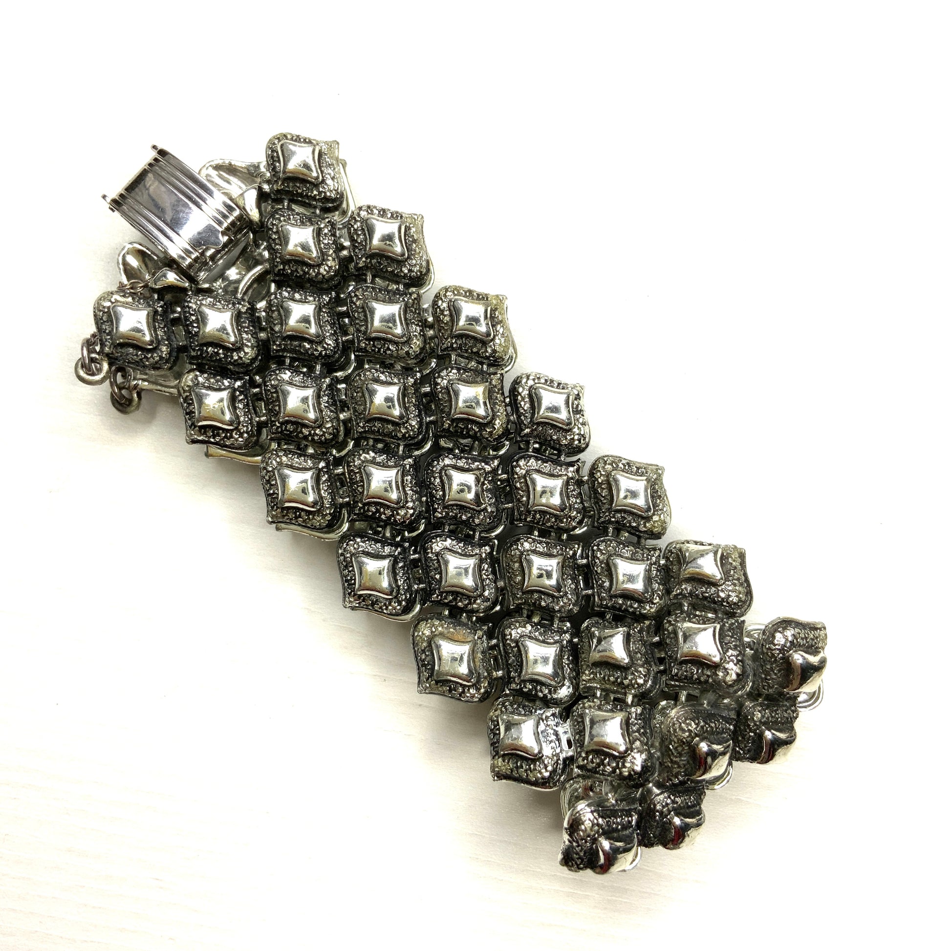 VINTAGE JEWELCRAFT Silver Tone Diamond Link Wide Bracelet