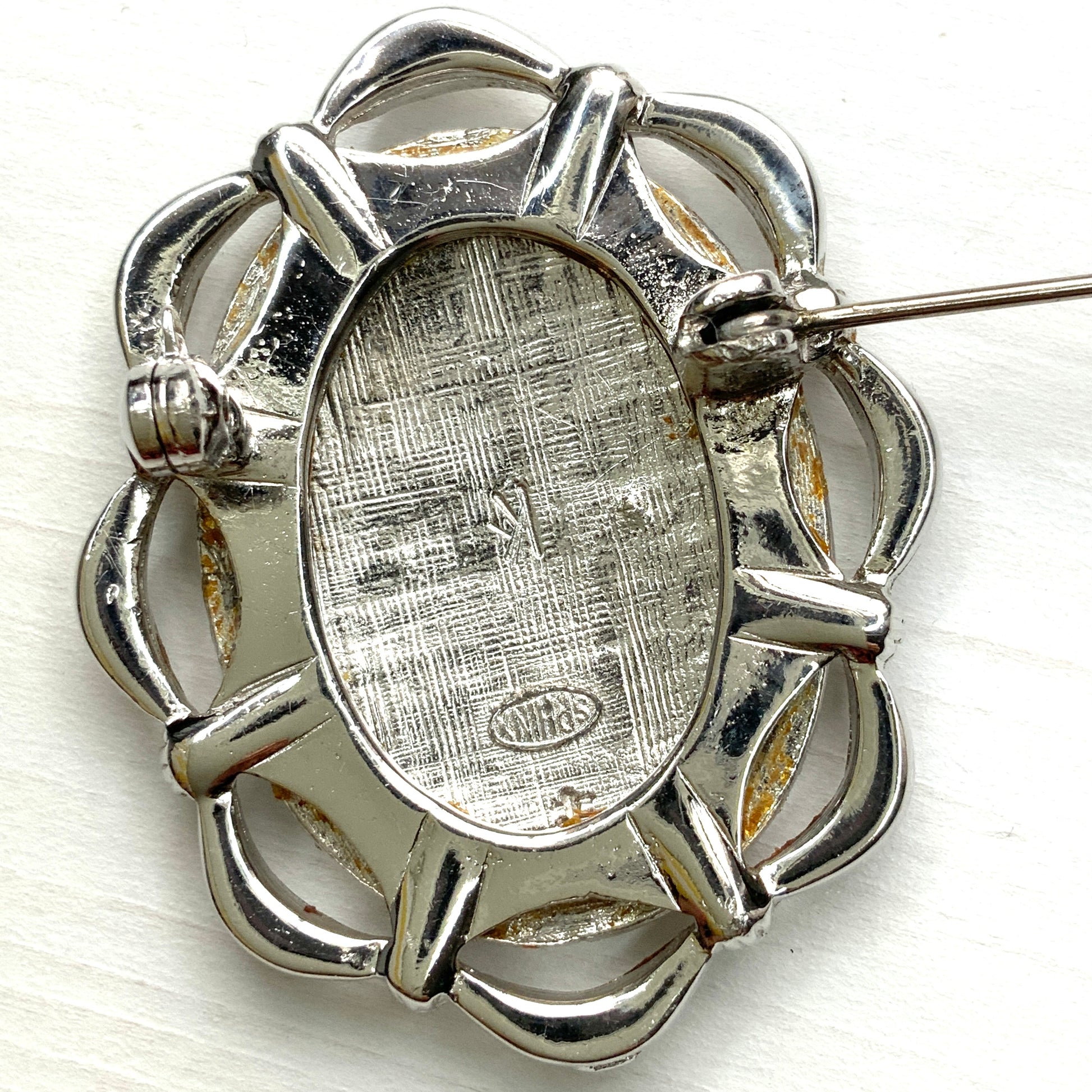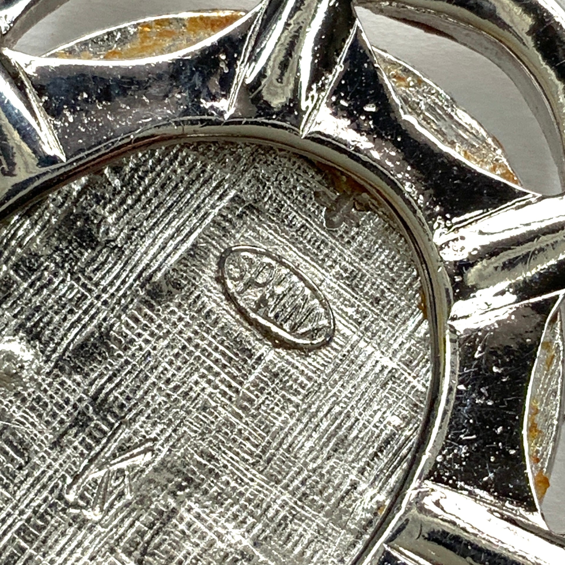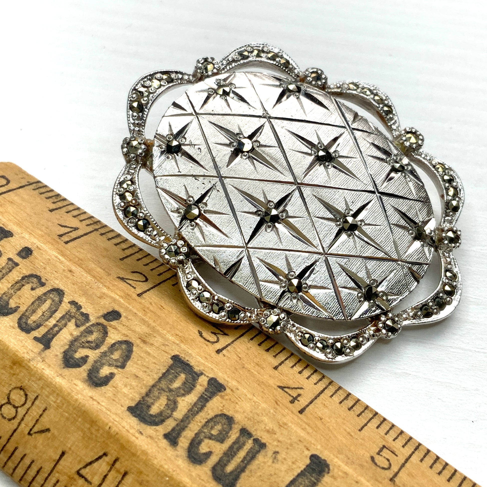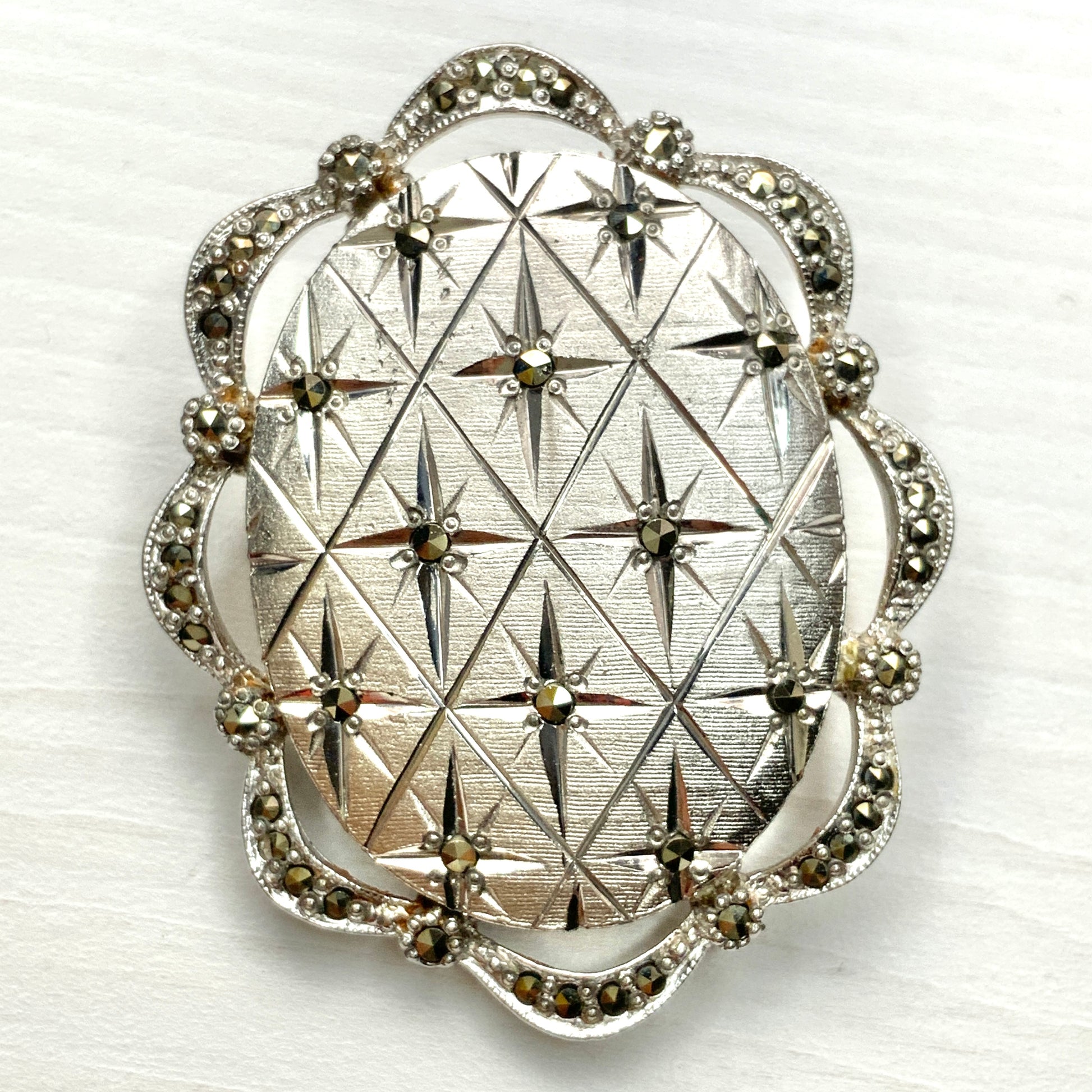 VINTAGE 1950's SPHINX Silver Tone Oval Starburst & Marcasite Brooch