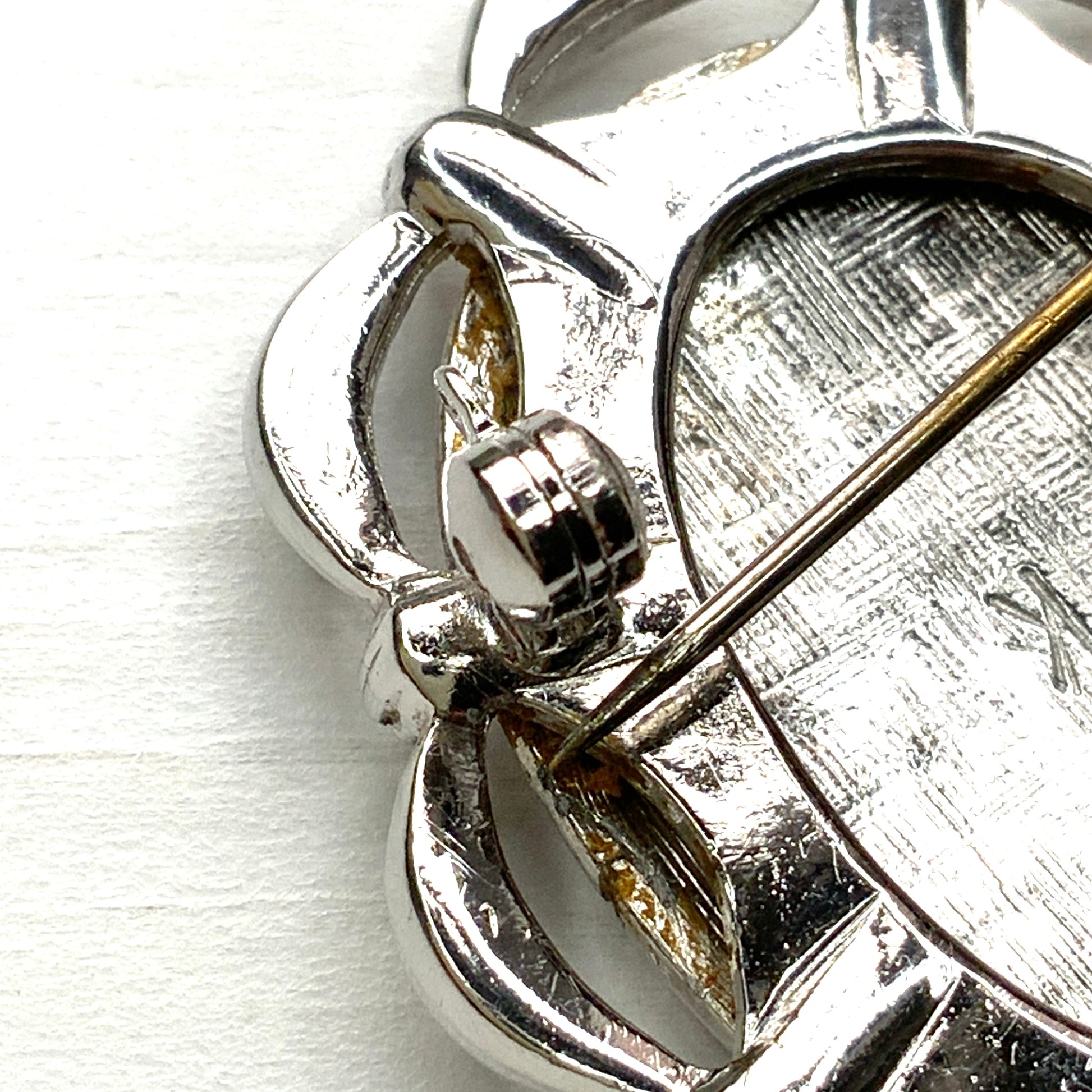 スターバーストの柄が刻み込まれたシルバートーンの楕円ブローチ。