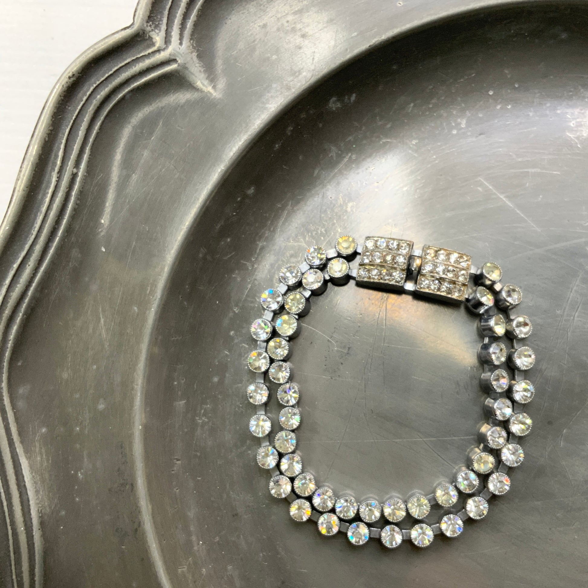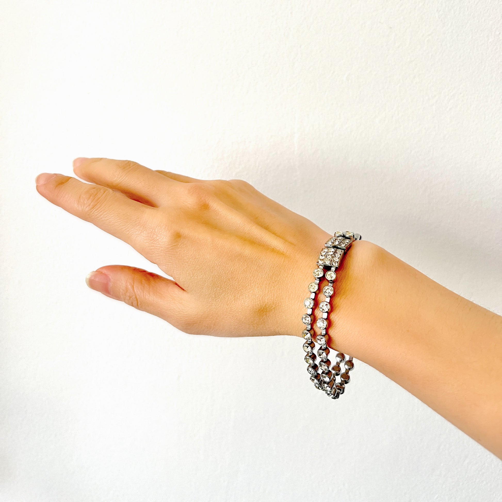ベゼルセッティングのラインストーンが二重になったブレスレット。