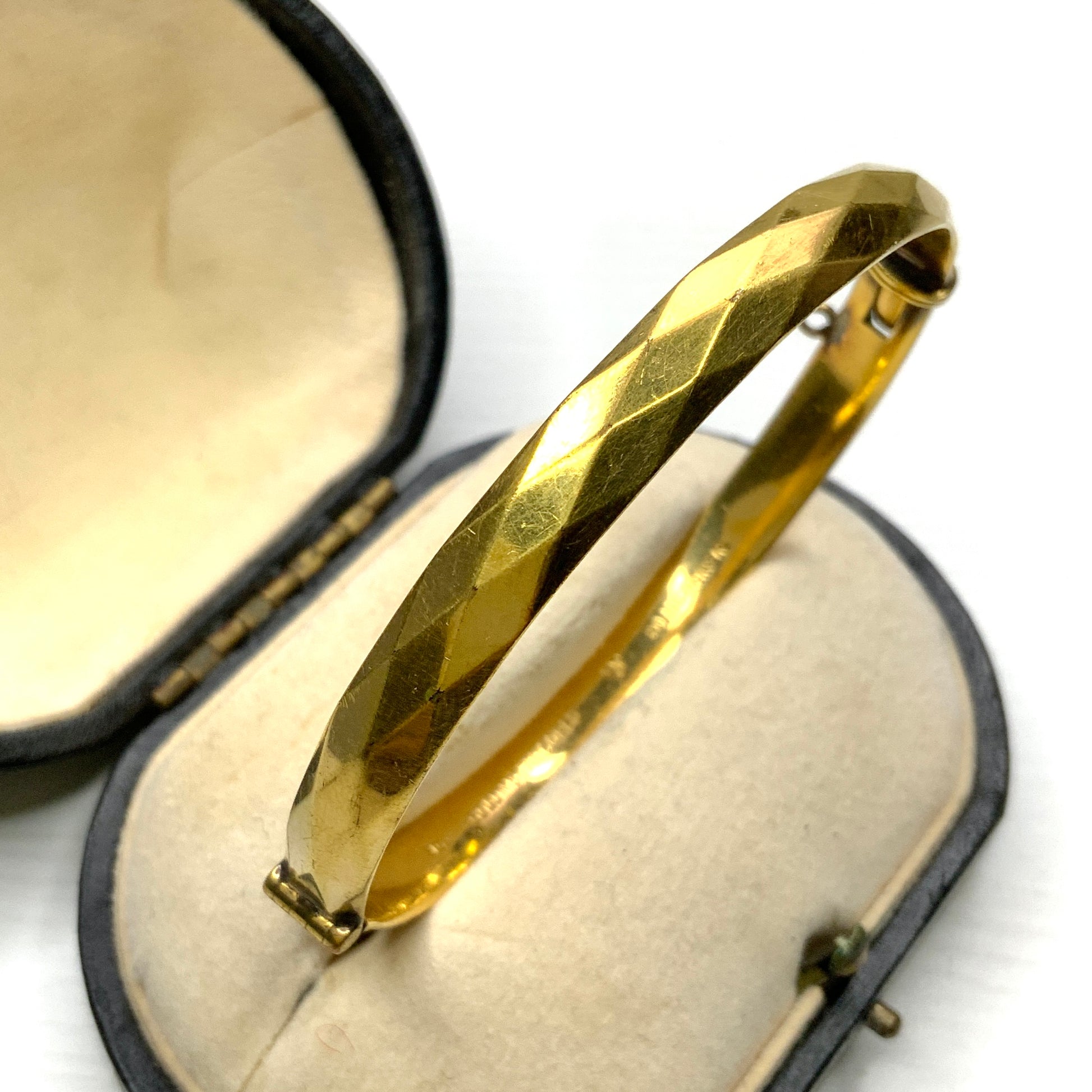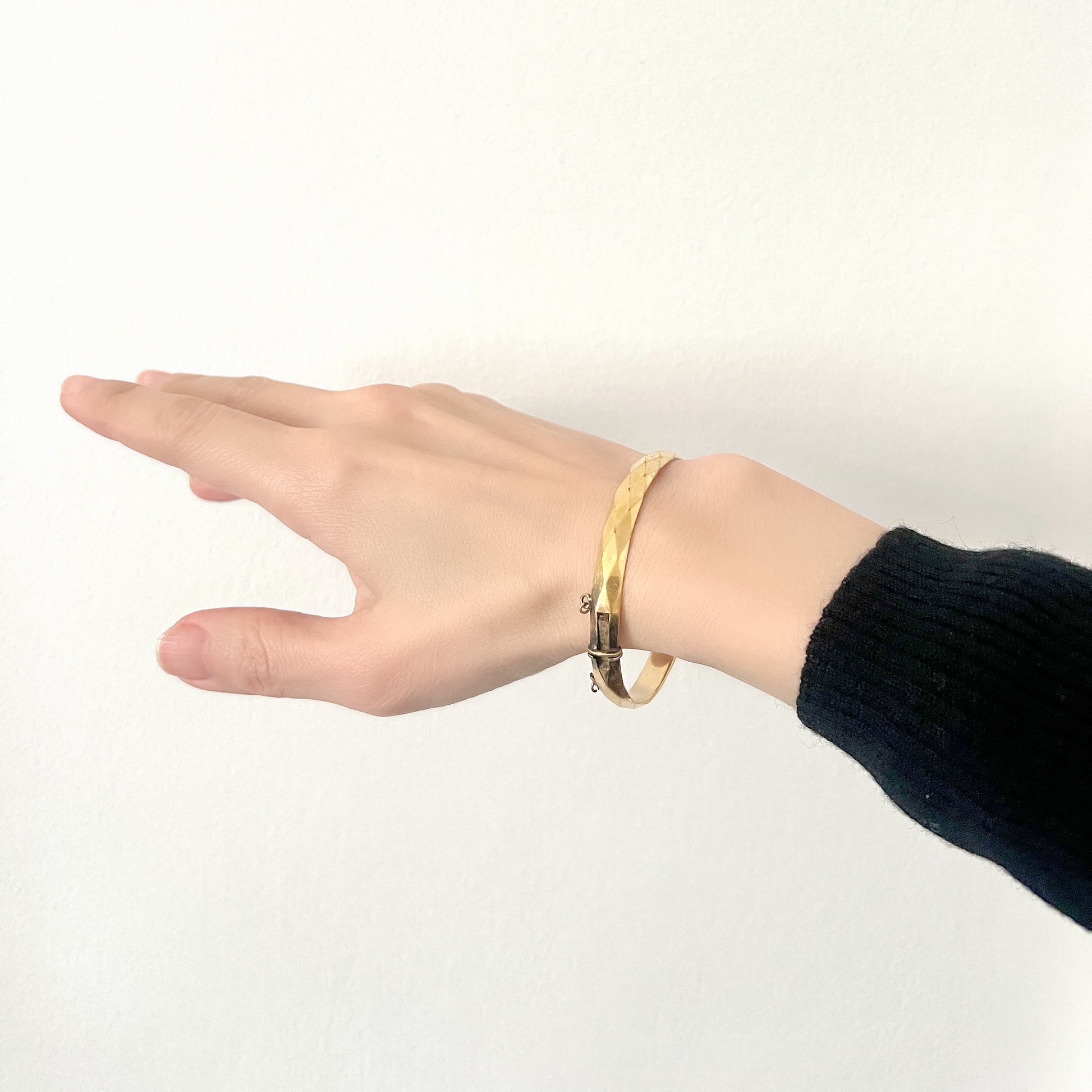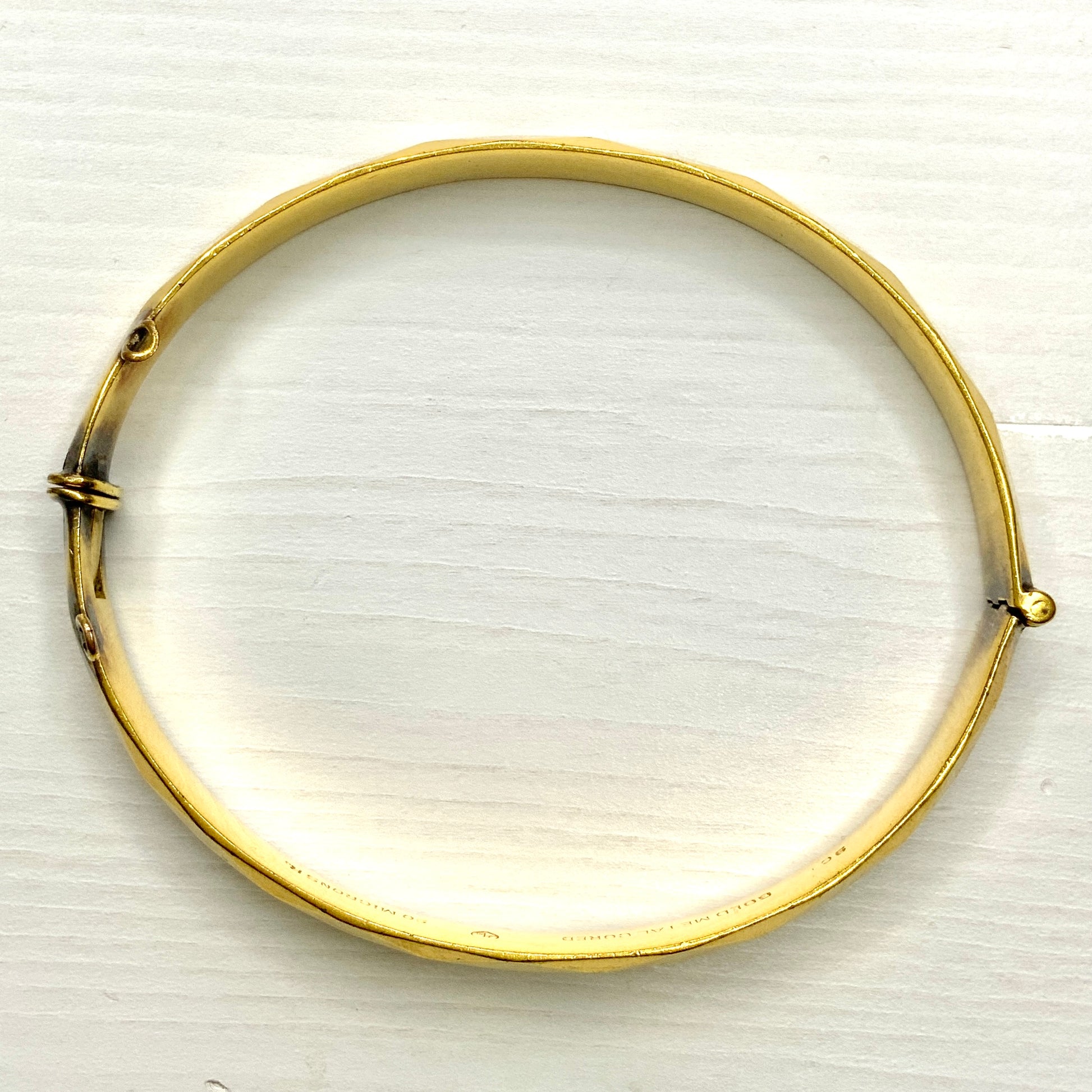 This bangle is made of rolled gold with a 9-karat gold film on an alloy core.