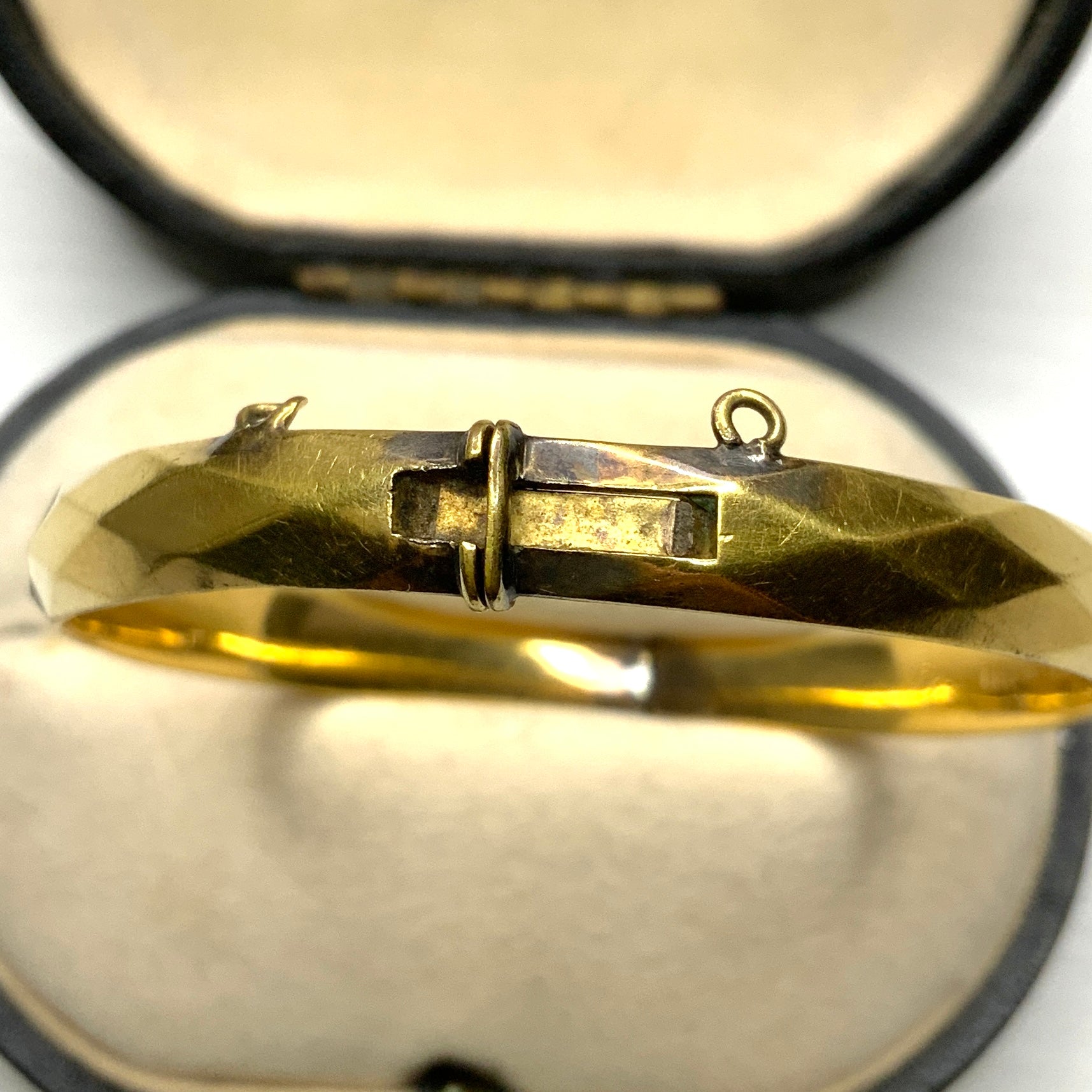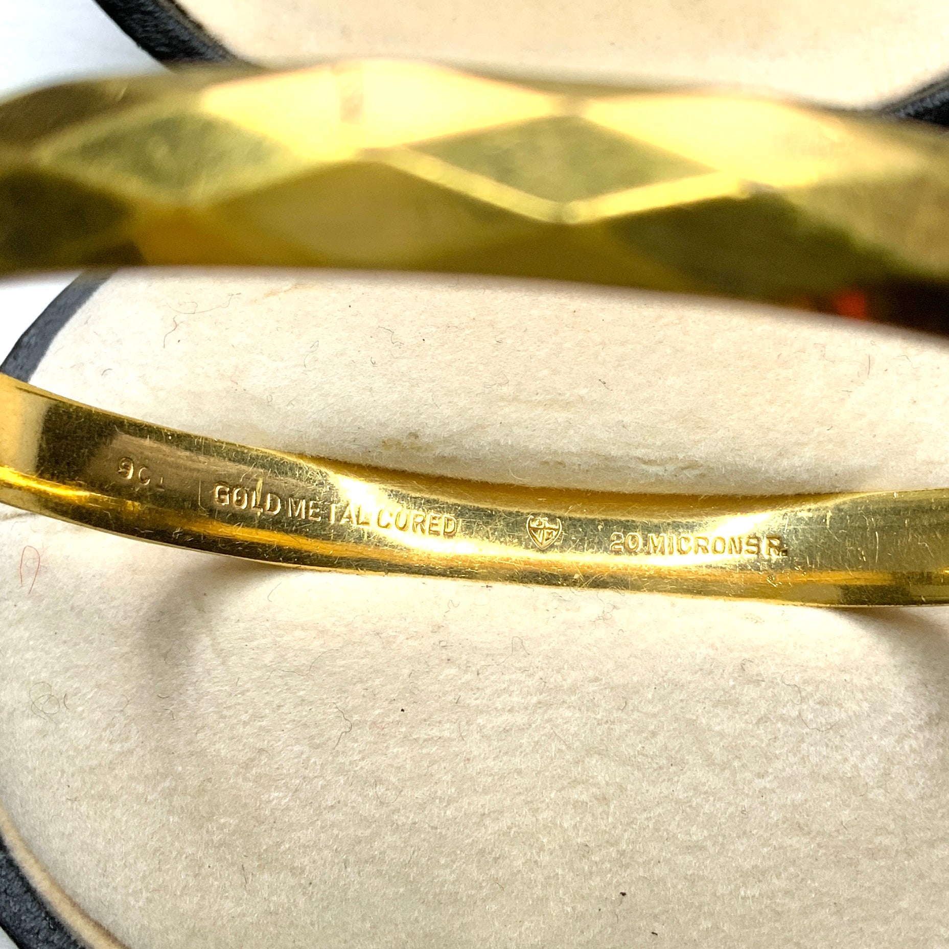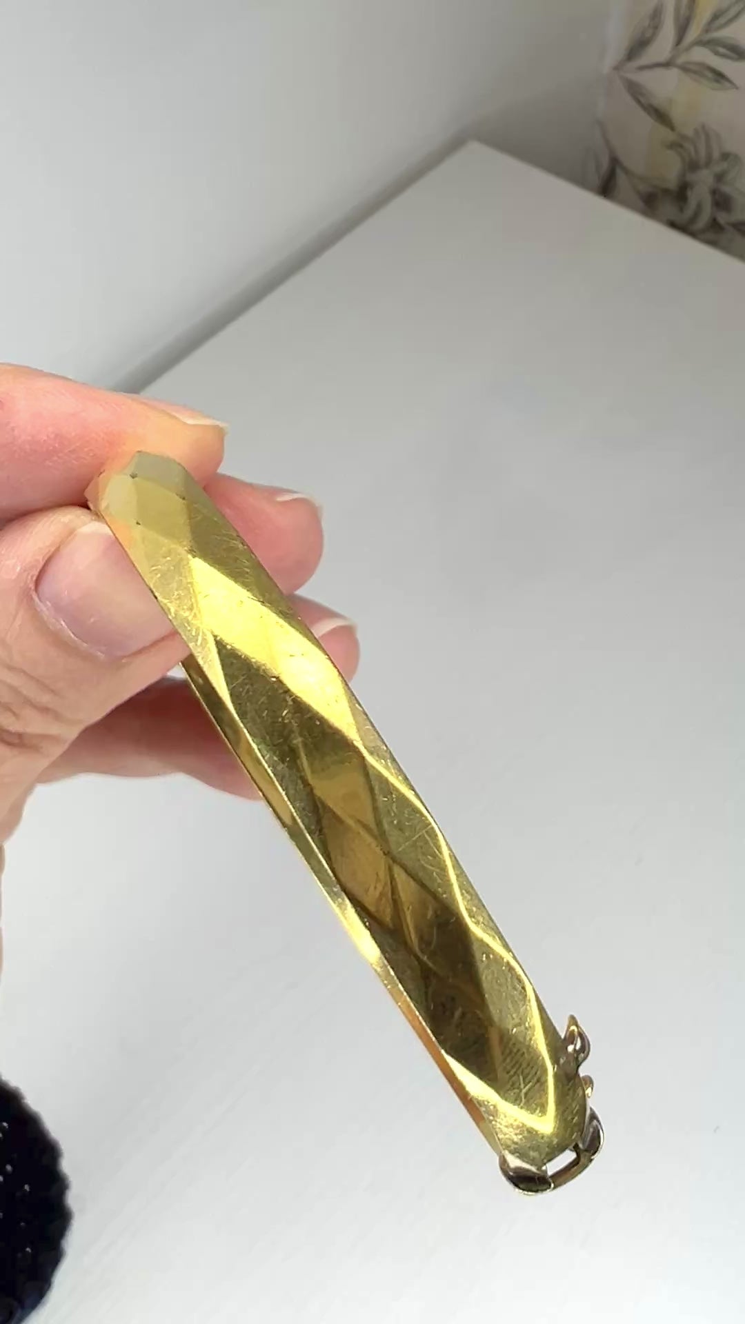 This bangle is made of rolled gold with a 9-karat gold film on an alloy core.