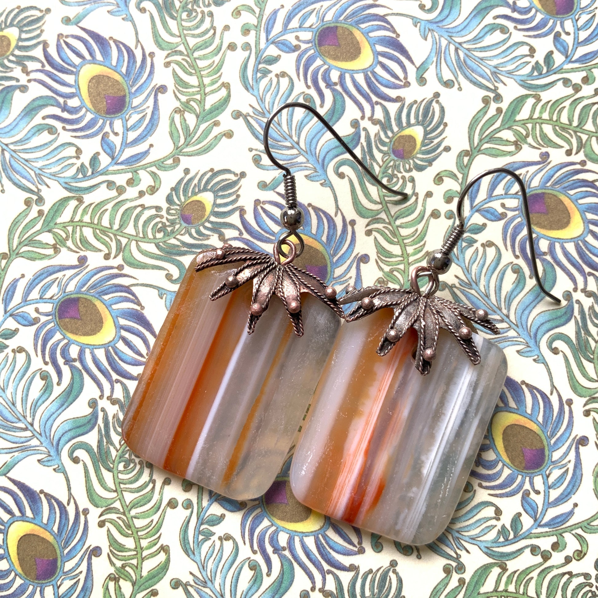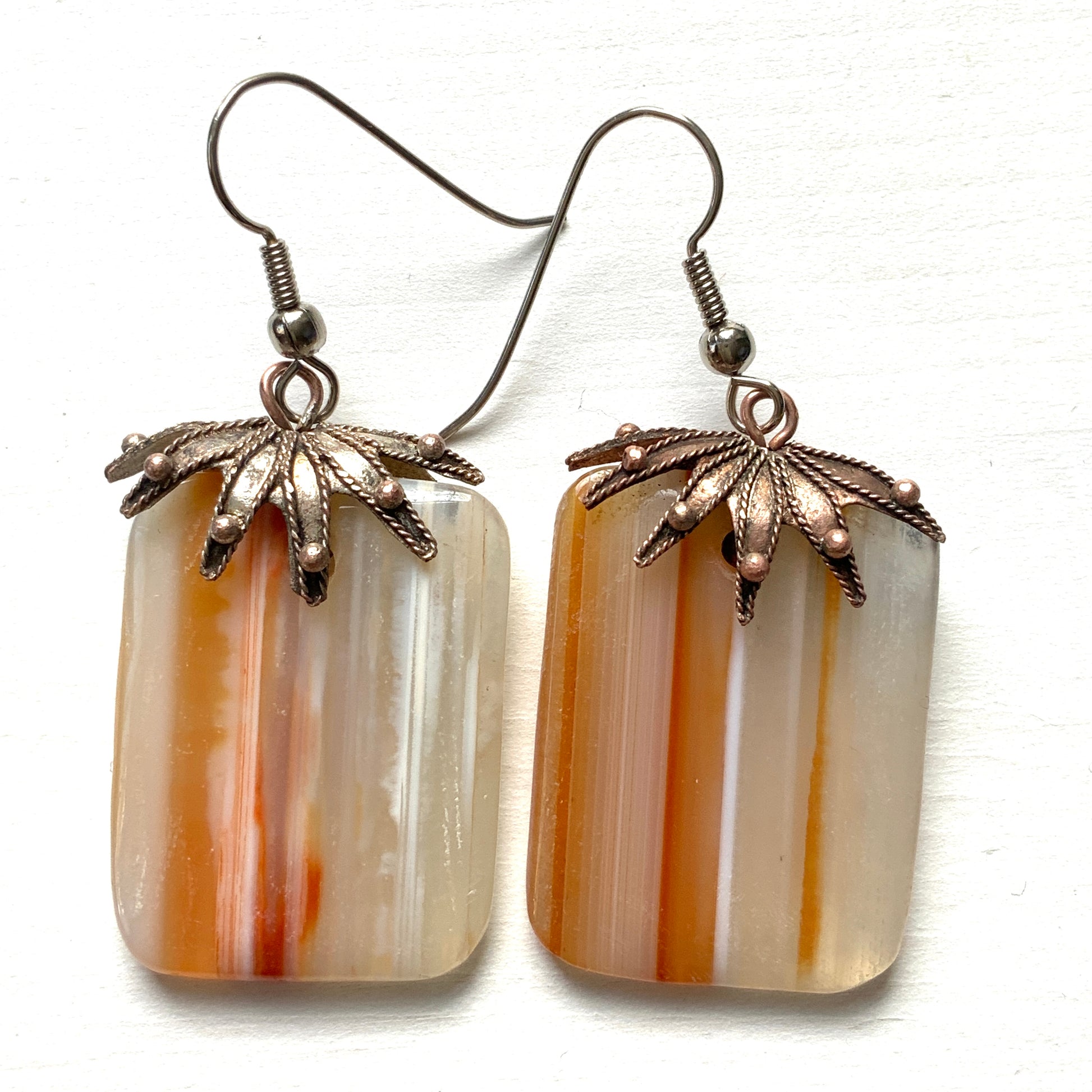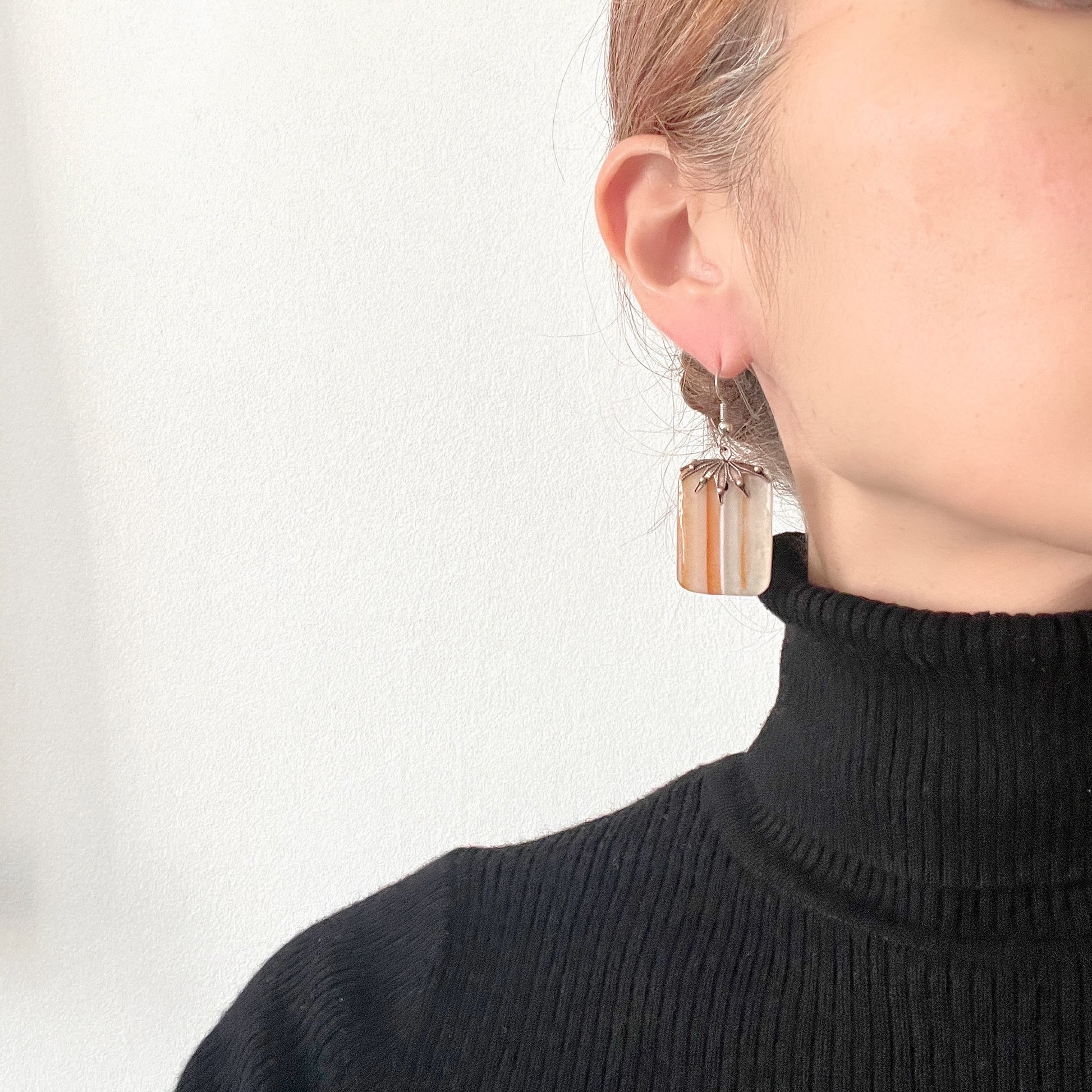スクエアのレッド・オレンジカラーのバンデッドアゲートのピアス。