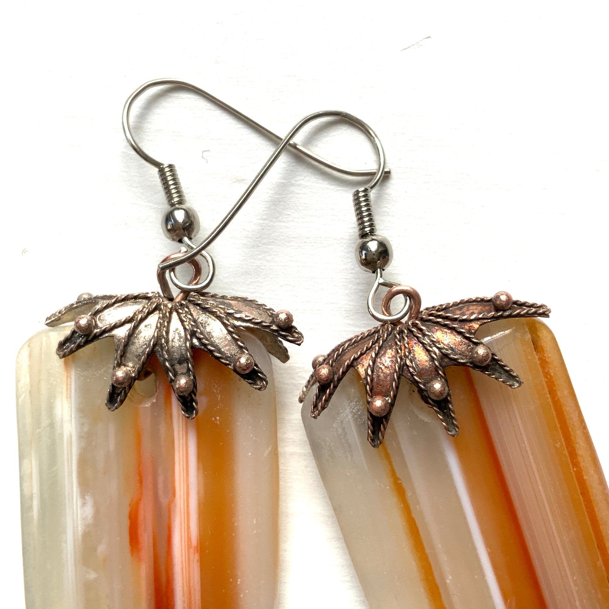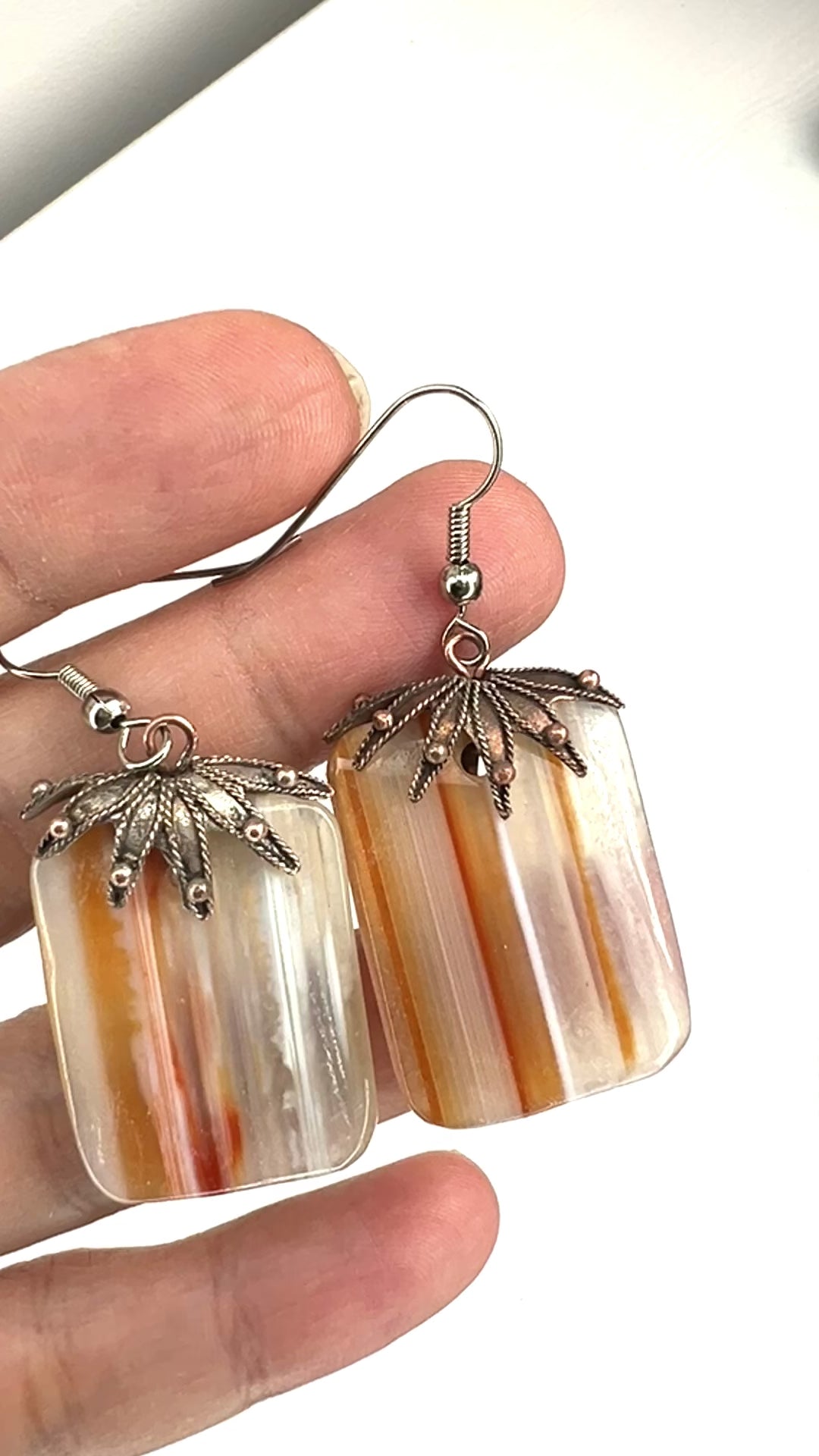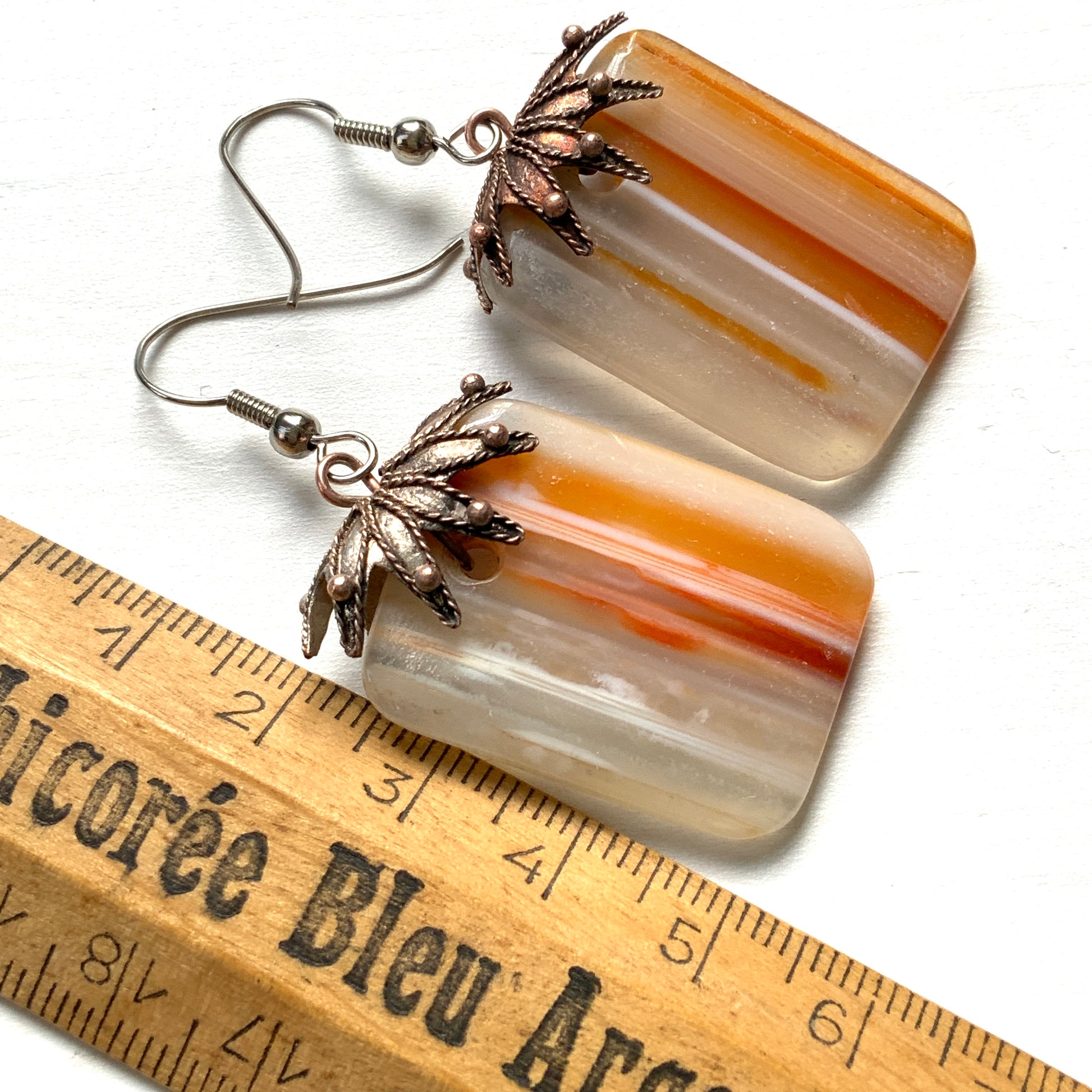スクエアのレッド・オレンジカラーのバンデッドアゲートのピアス。