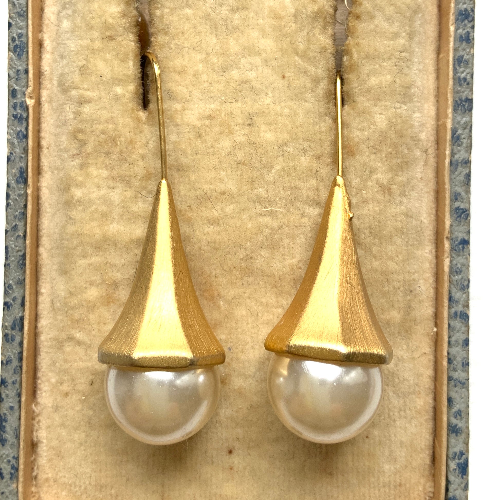 VINTAGE Gold Tone & Faux Pearl Hook Earrings