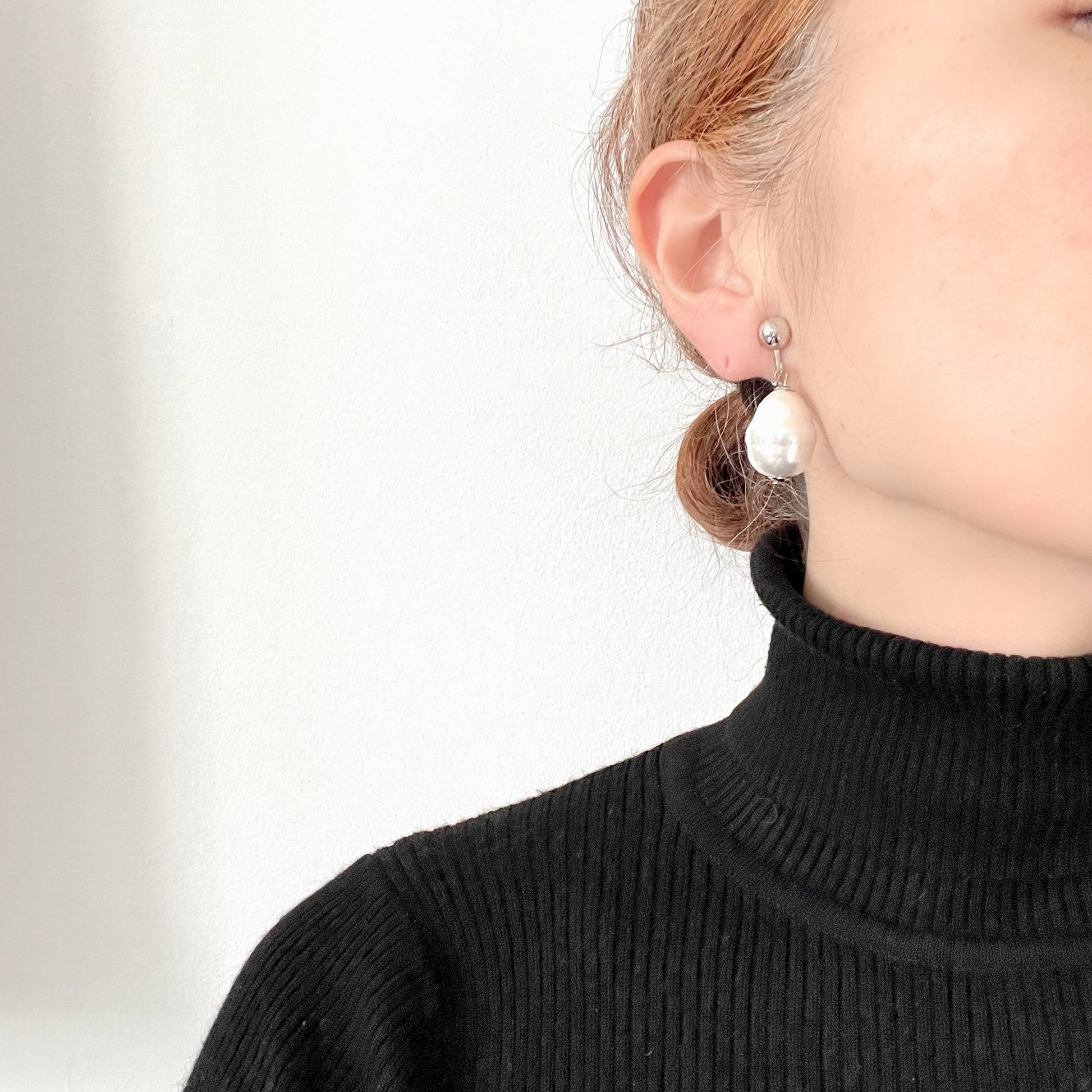 大きなフォーバロックパールが揺れるクリップイヤリング。