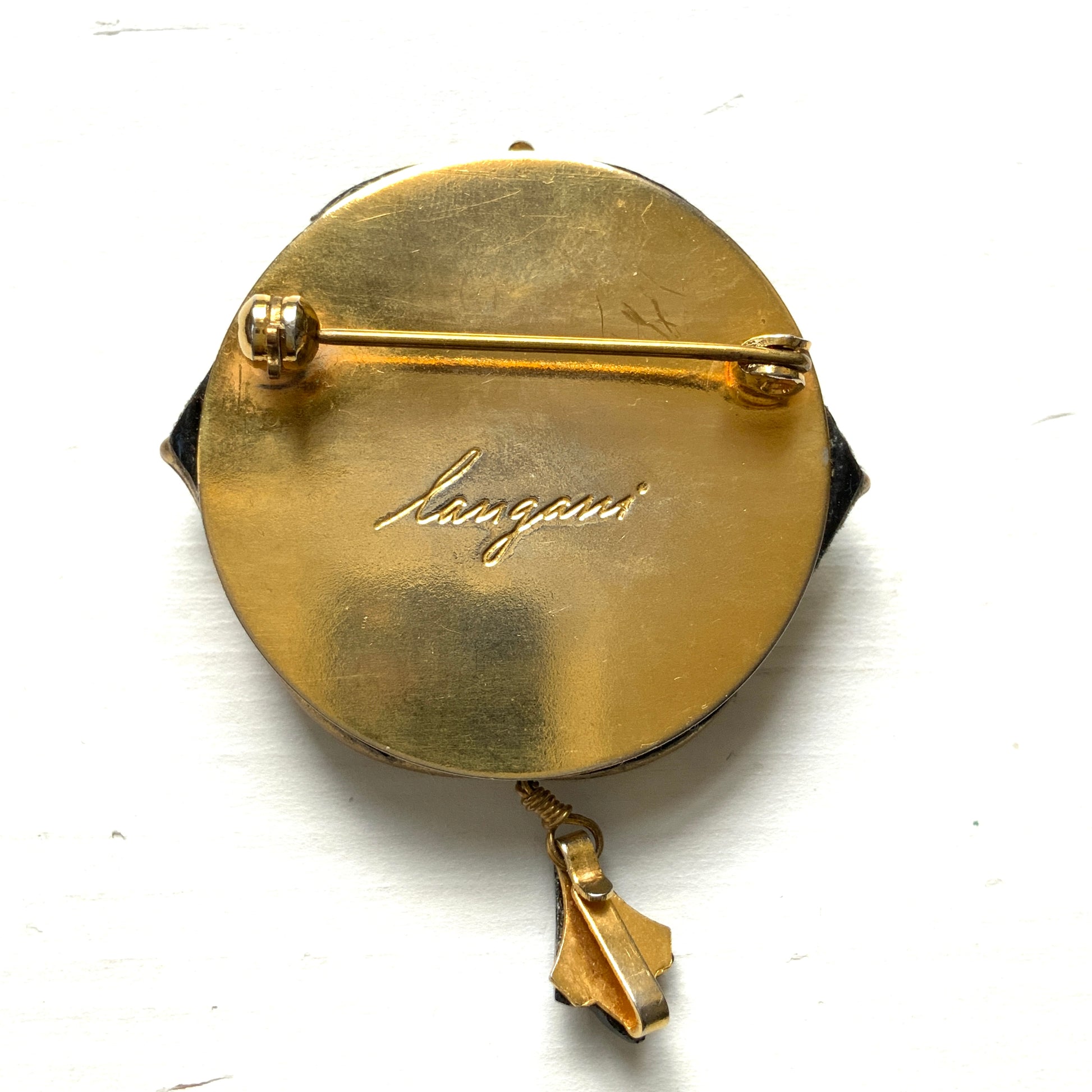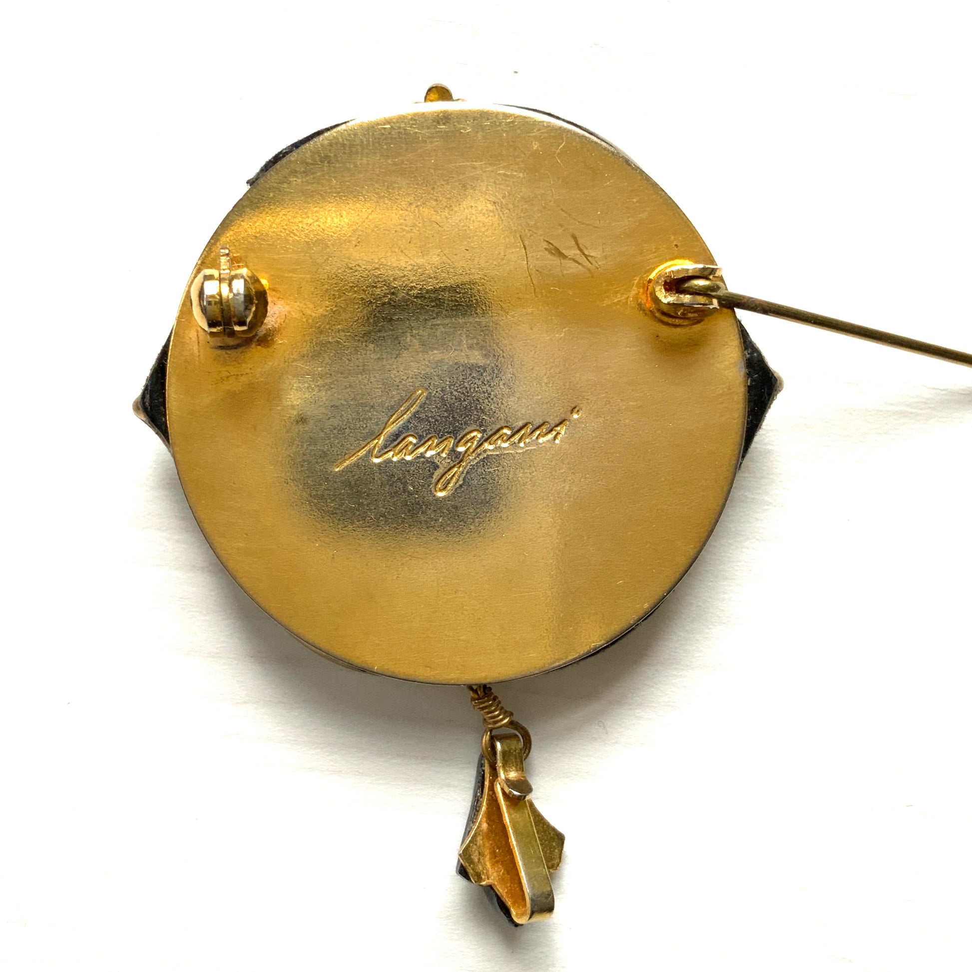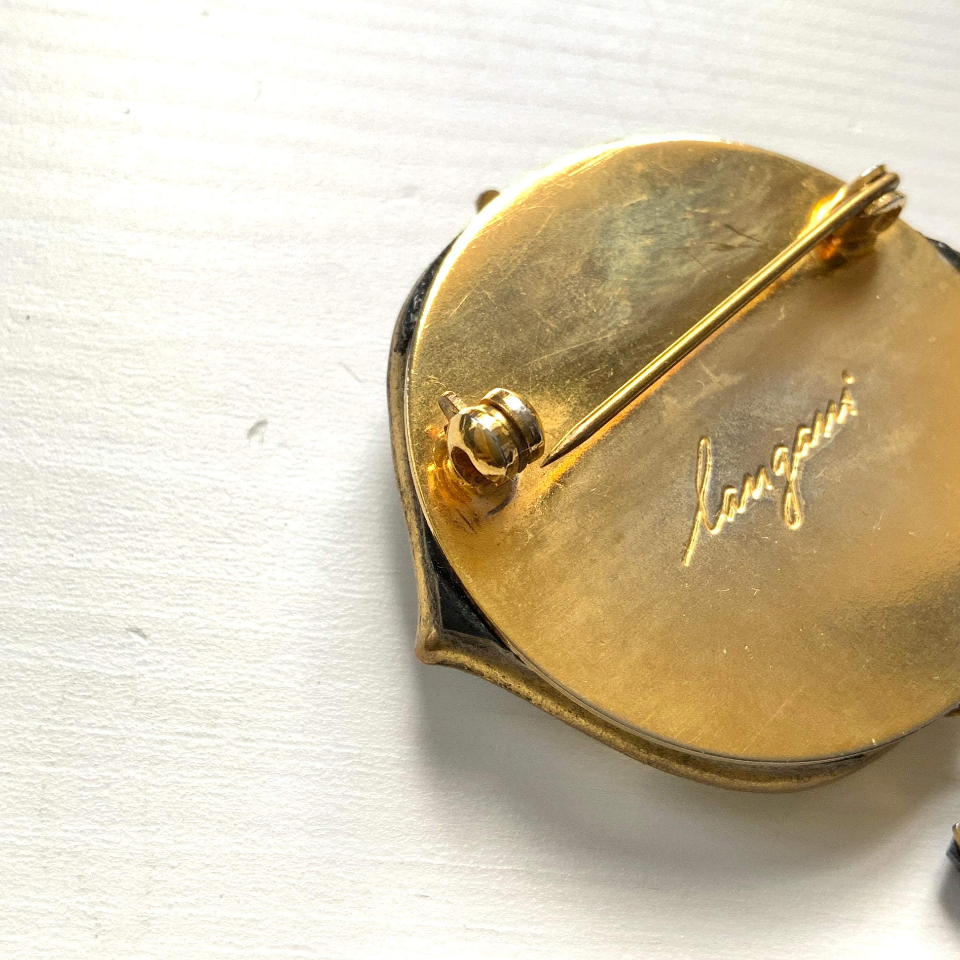VINTAGE 1980-90's LANGANI Brown & Gold Tone Brooch