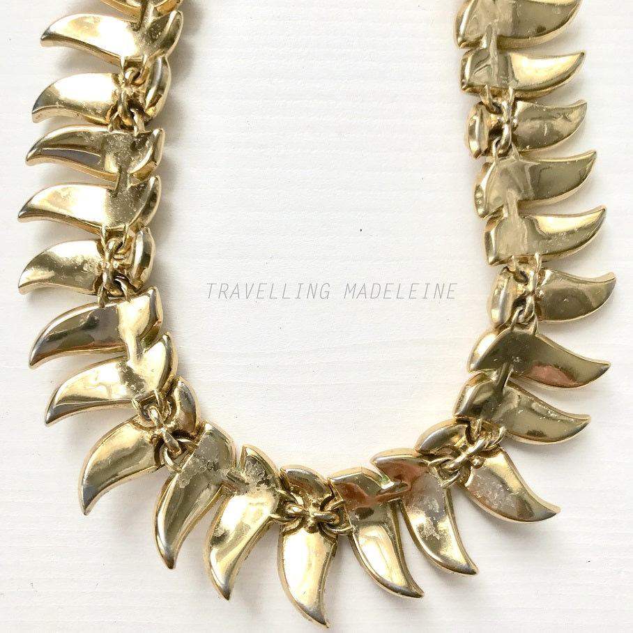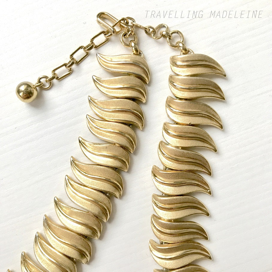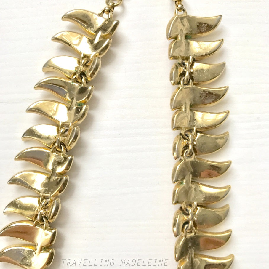 VINTAGE 1950-60's TRIFARI Gold Tone Long Leaf Necklace