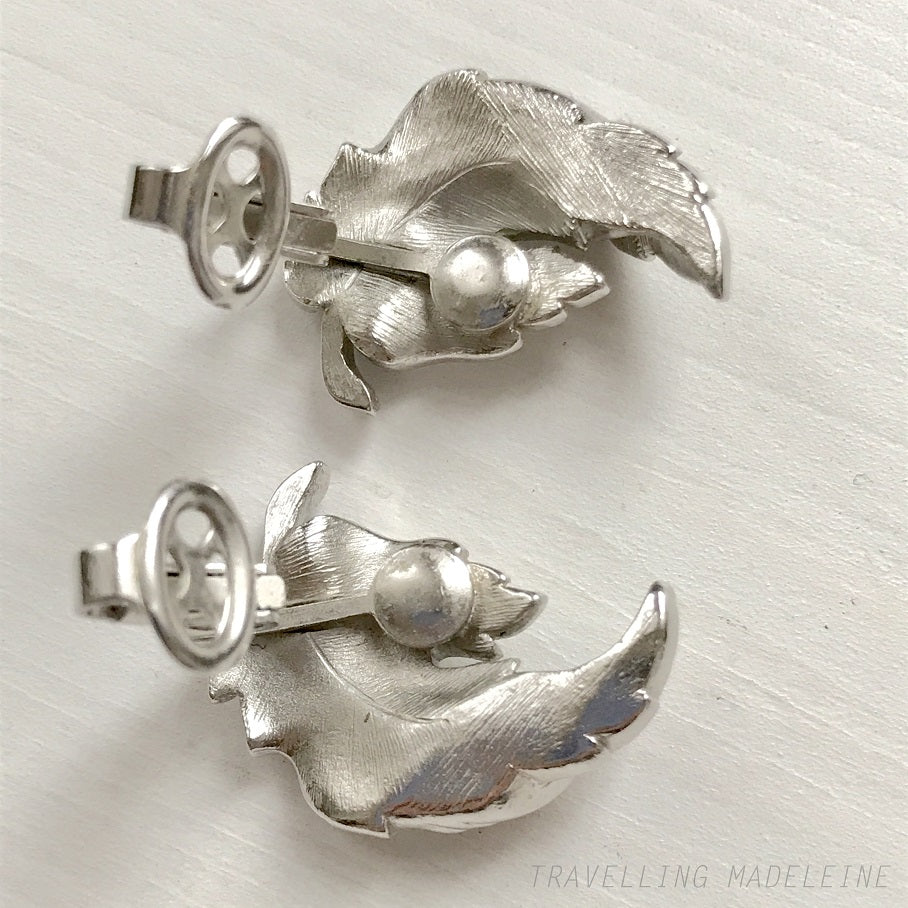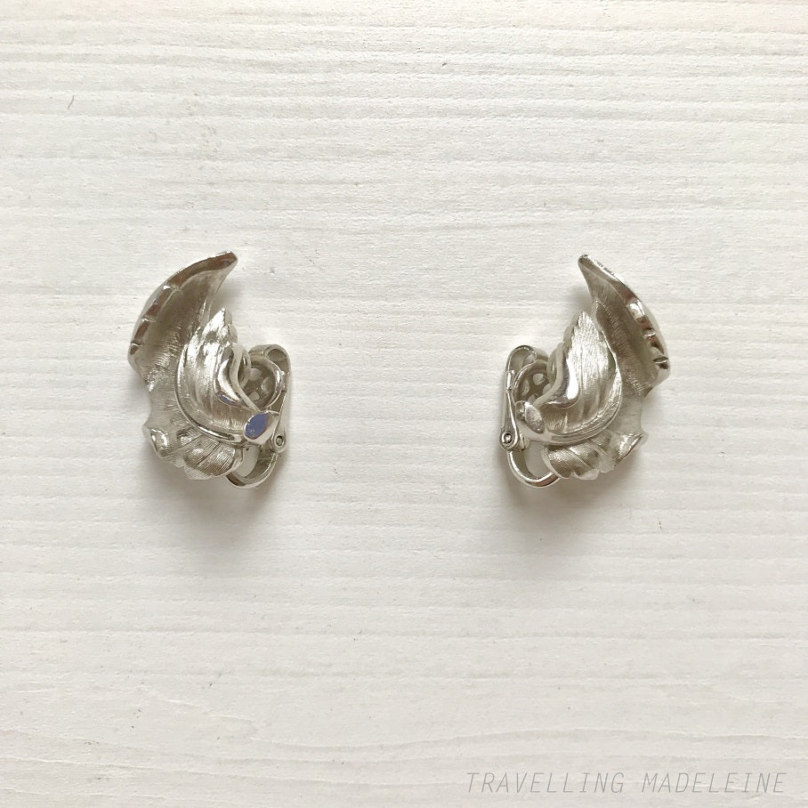 Silver tone leaf clip earrings with a beautiful fluttering shape.