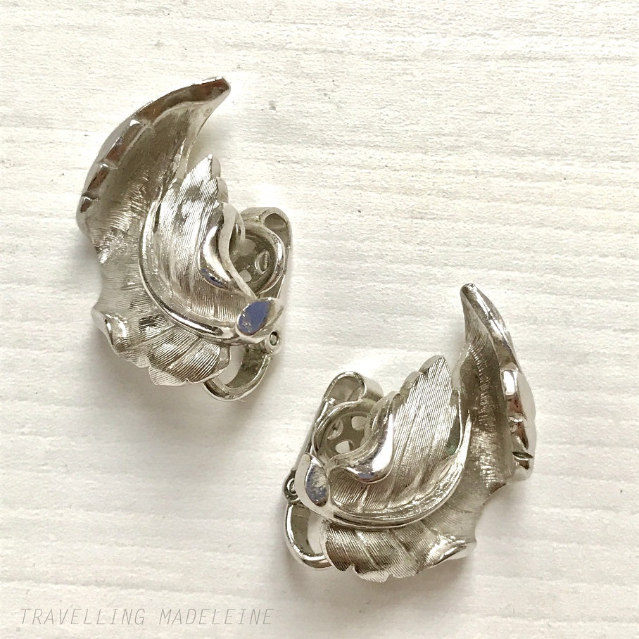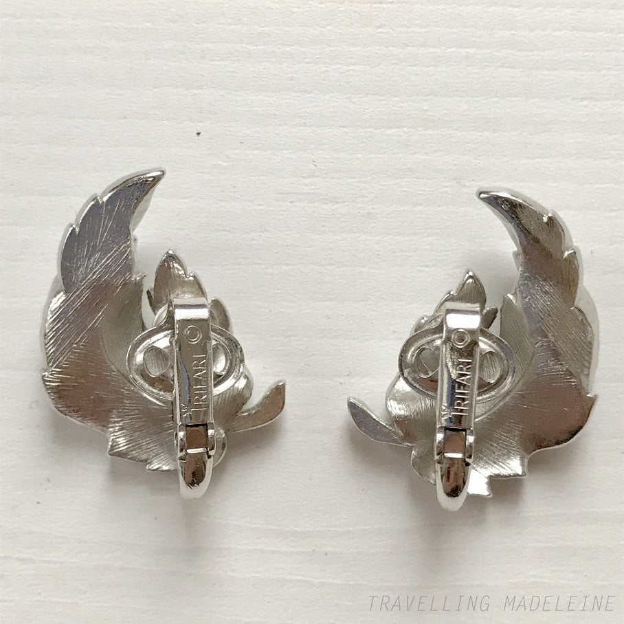 VINTAGE 1950-60's TRIFARI Silver Tone Leaf Clip Earrings