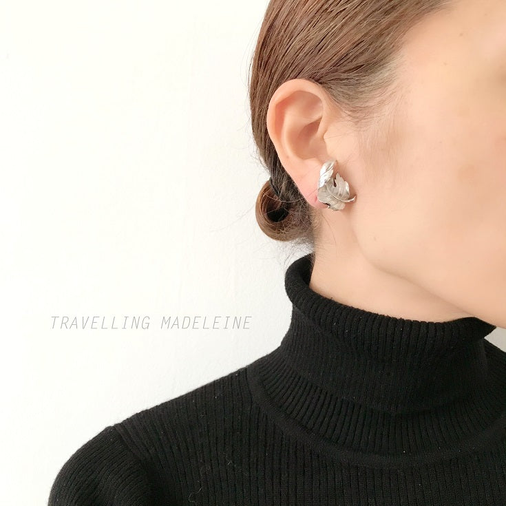 トリファリによる、ひらりと舞うような形が美しい銀色のリーフのクリップイヤリング。