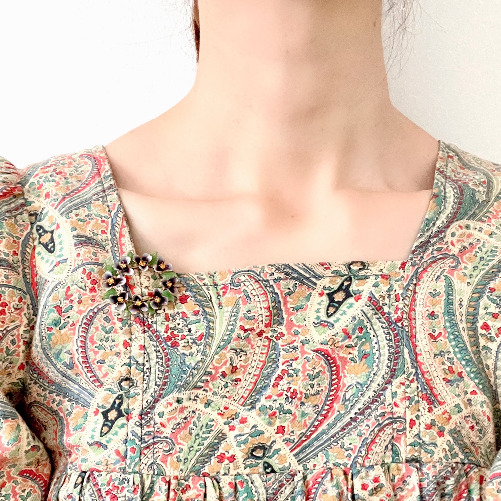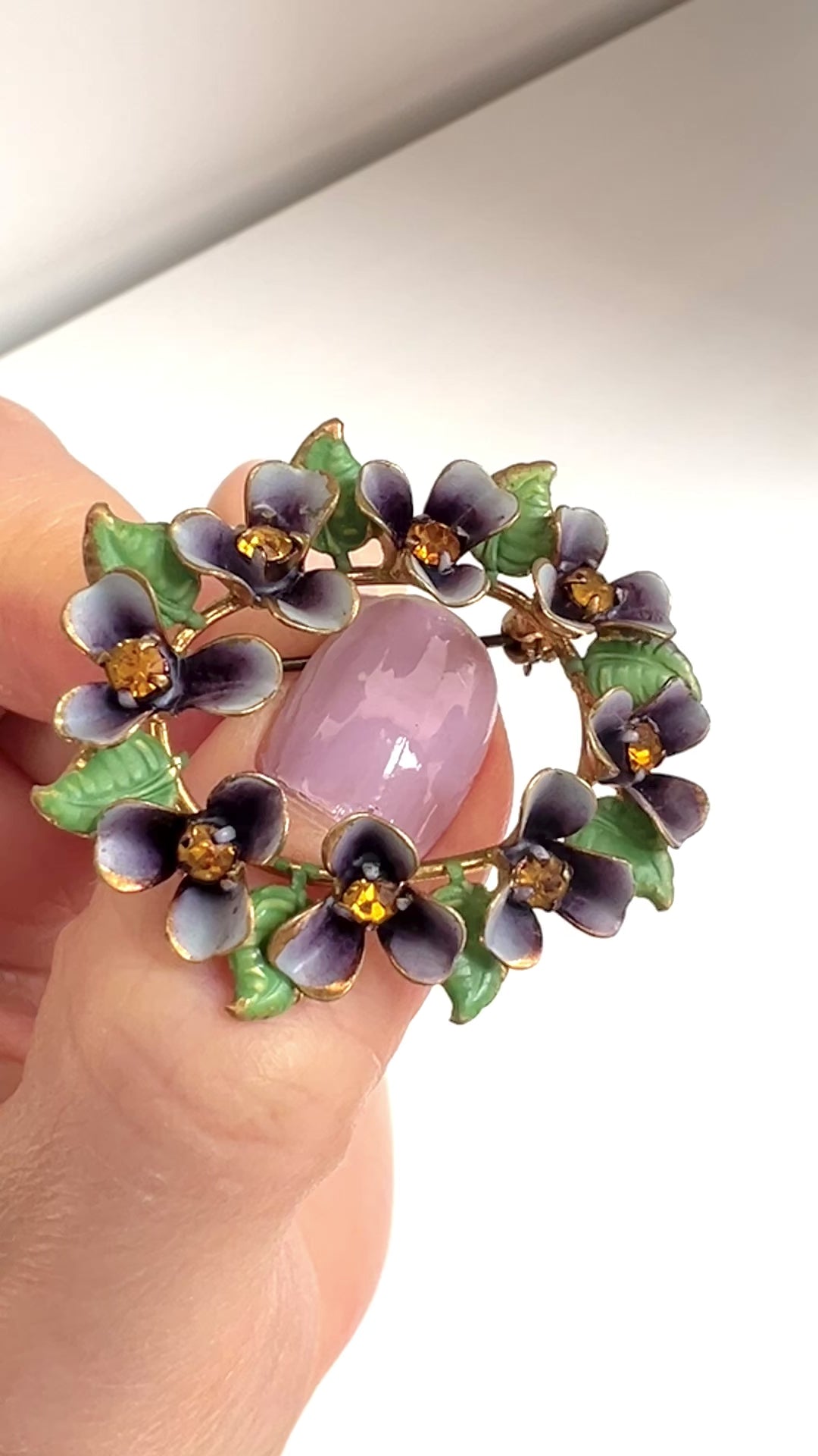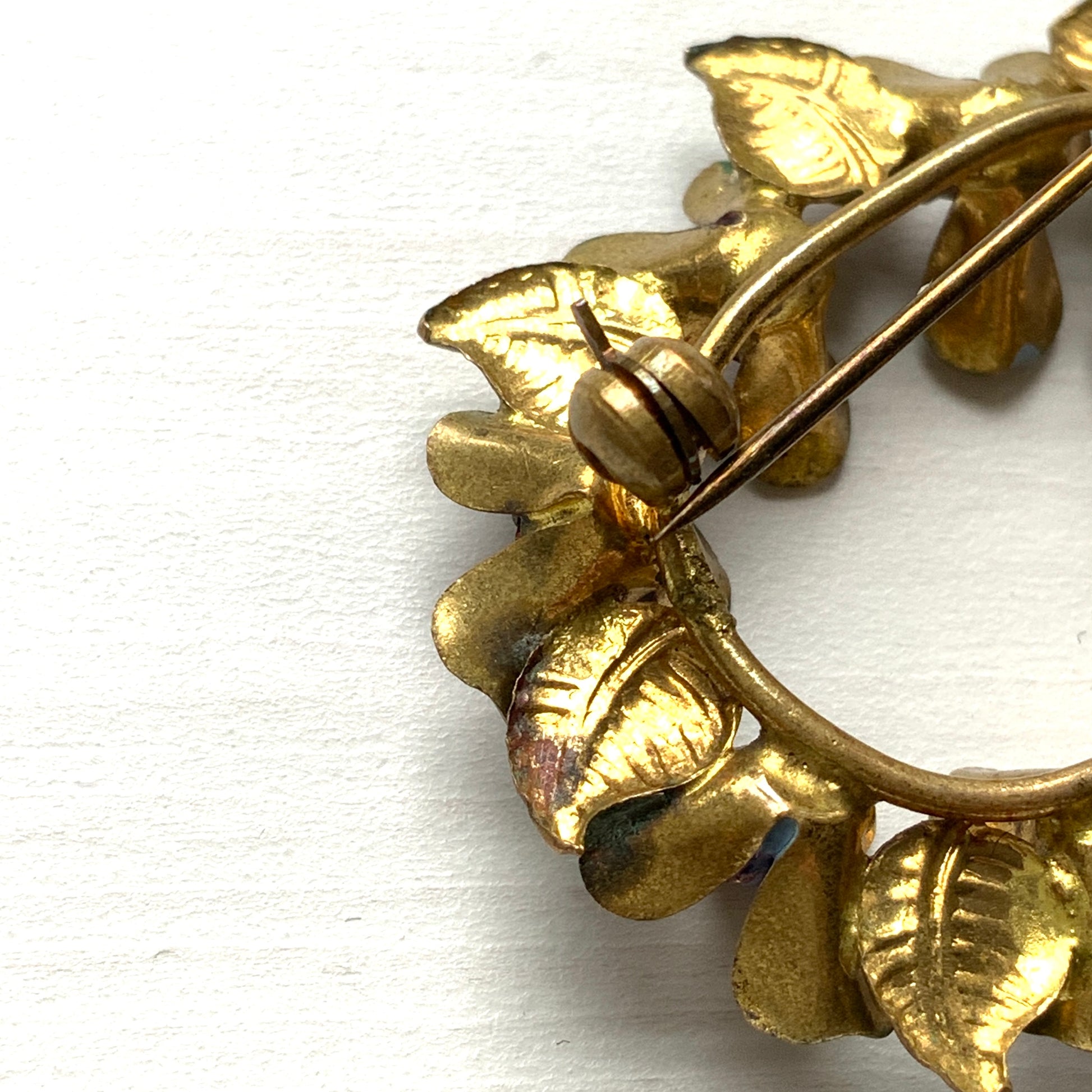 かわいらしいスミレがリースになったエナメルのブローチ。