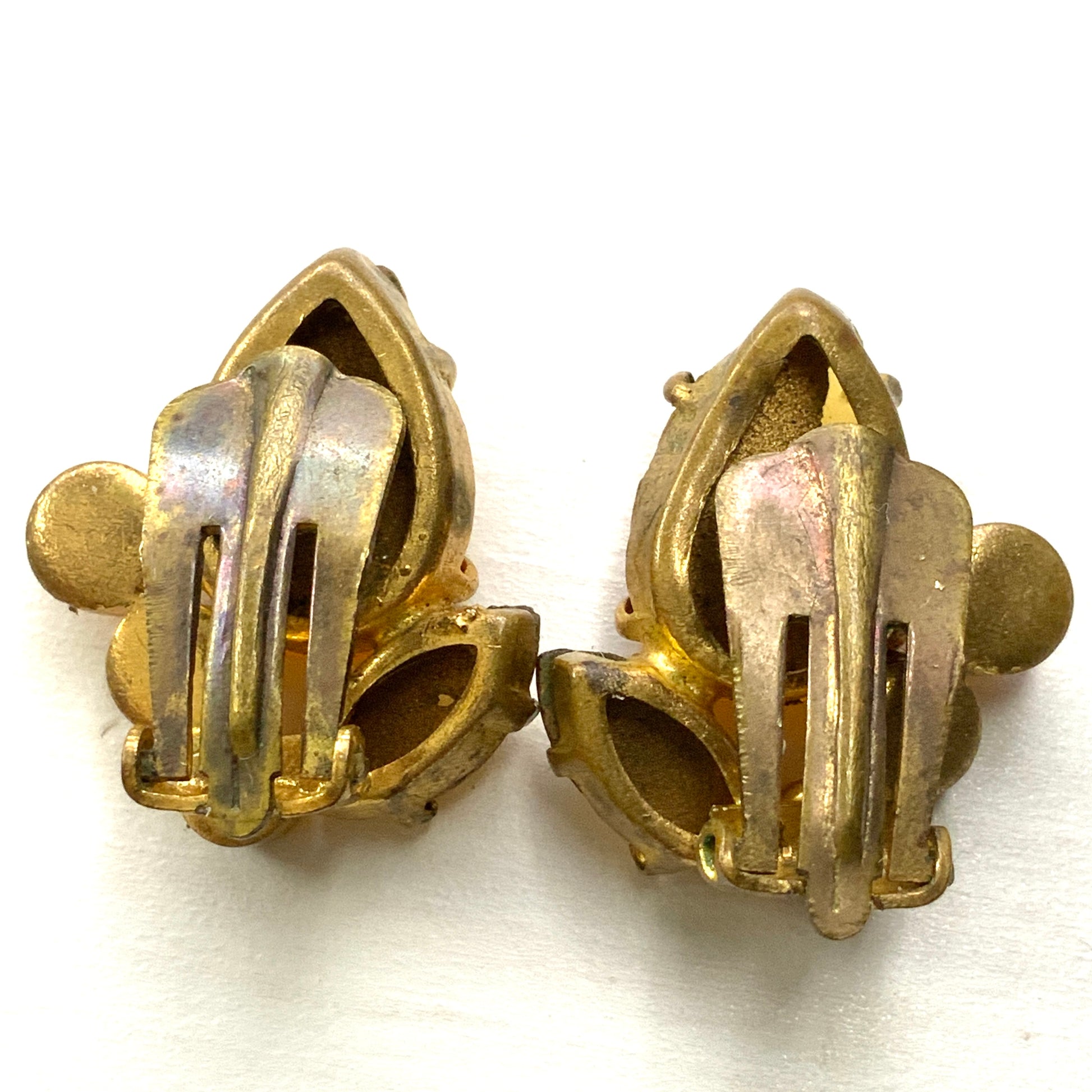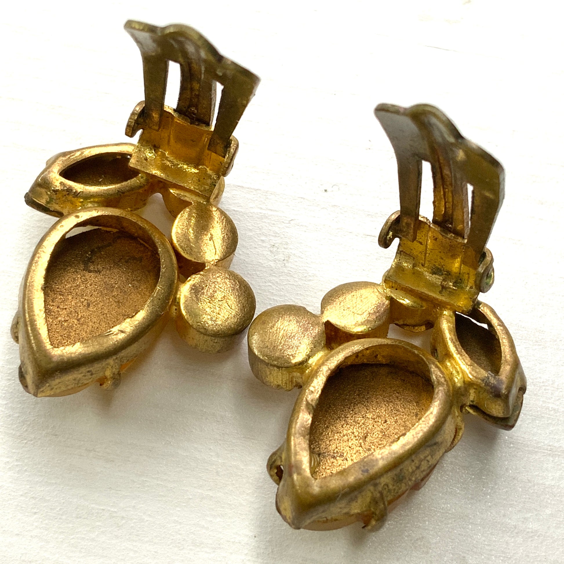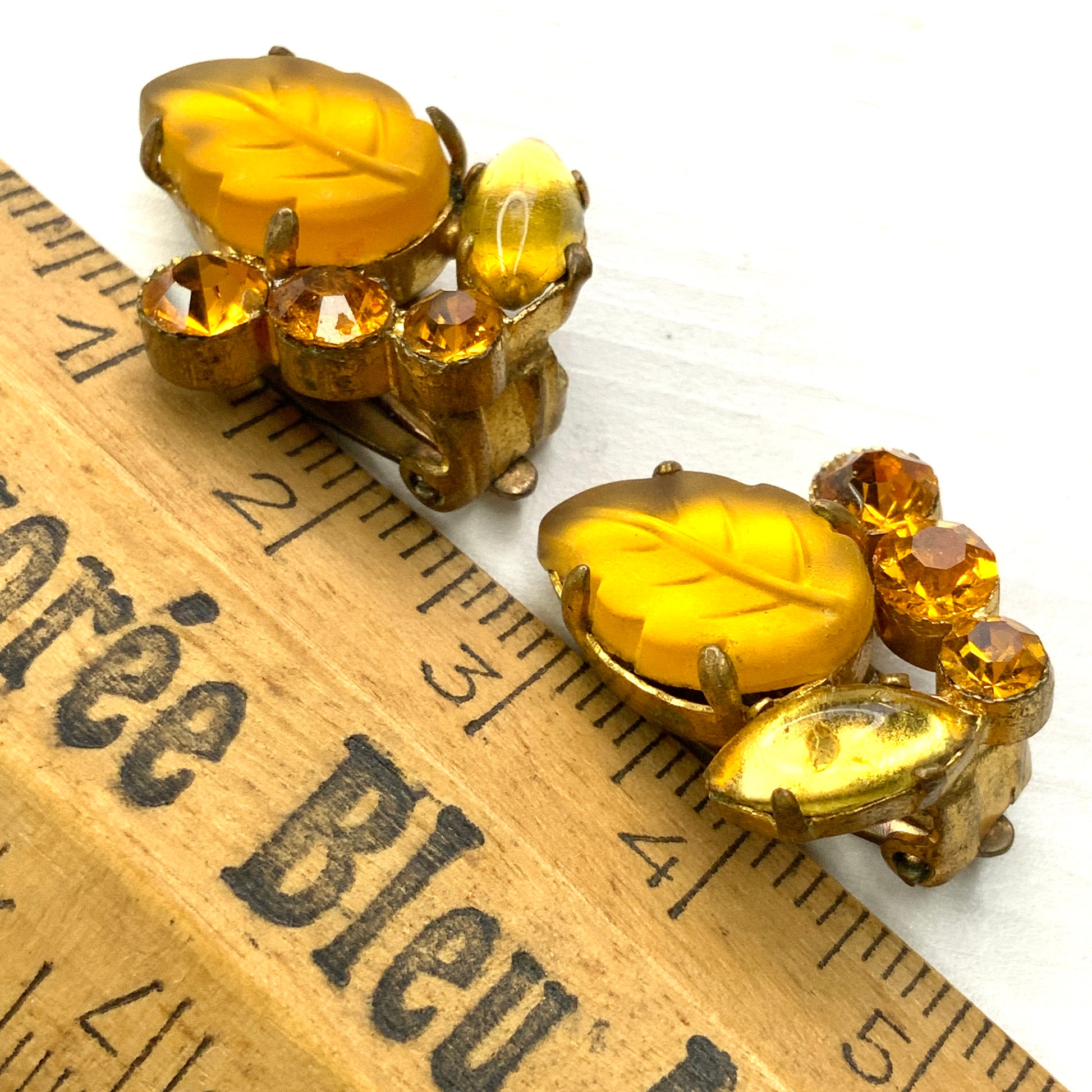 VINTAGE 1950's Orange/Amber Frosted Leaf Glass Clip Earrings