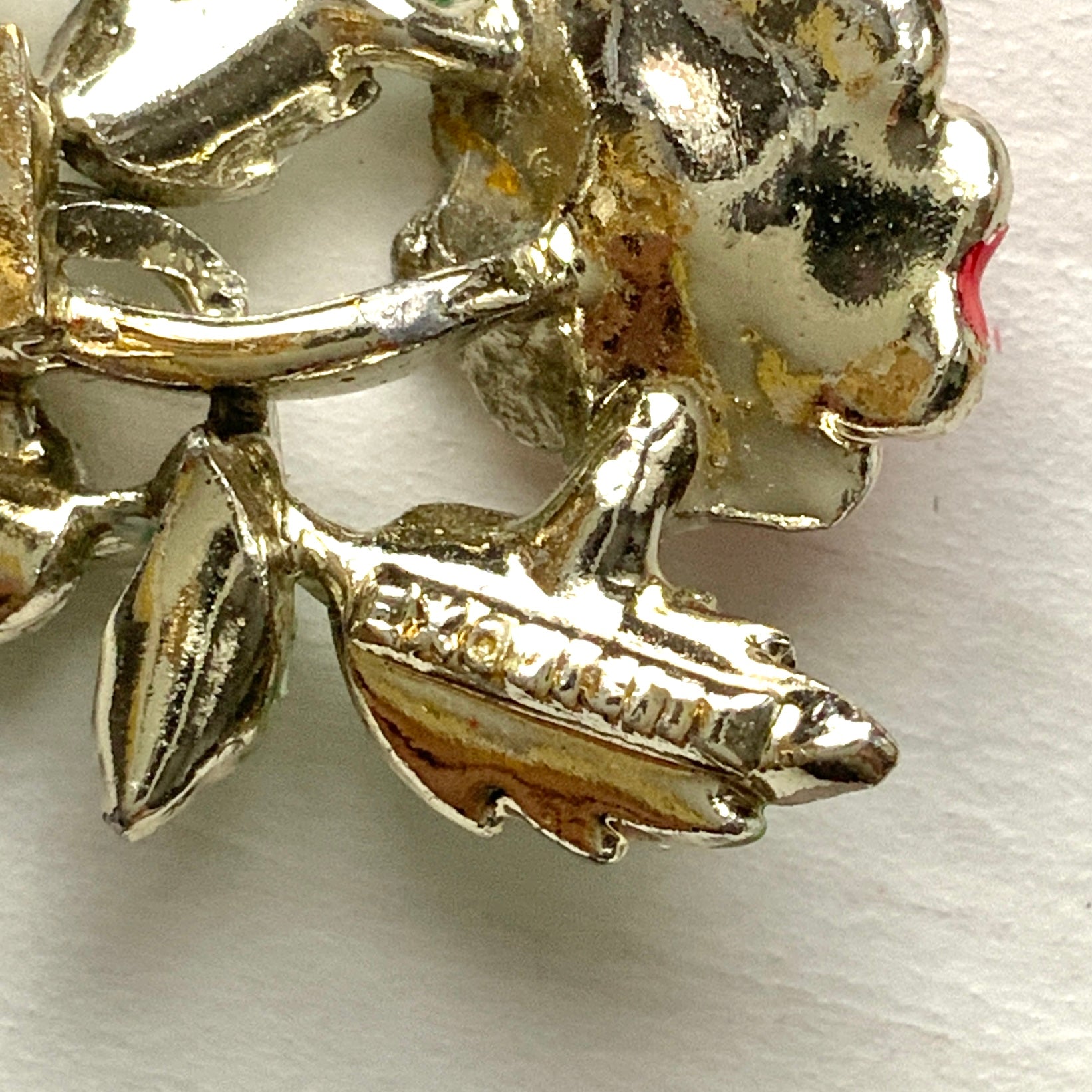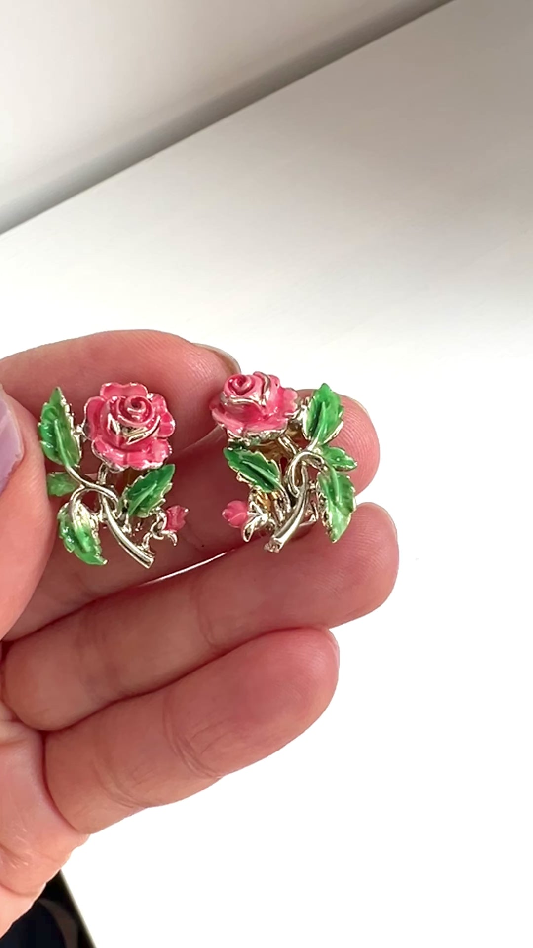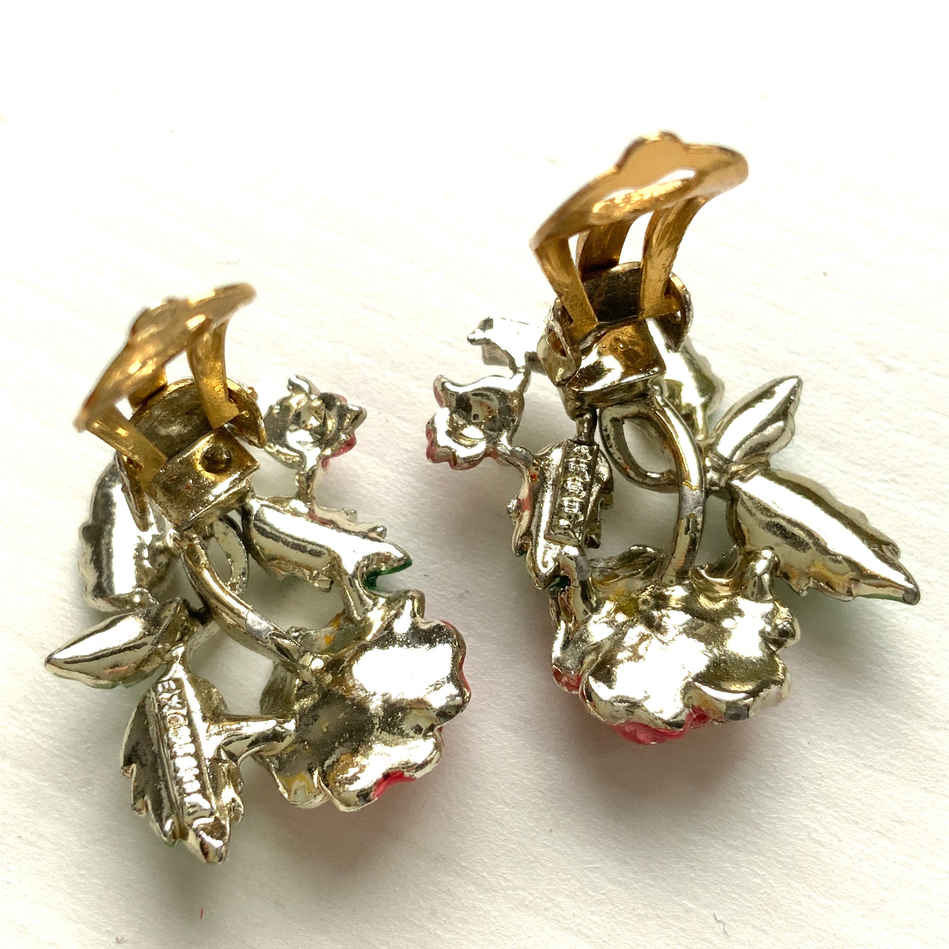 VINTAGE EXQUISITE 1950's Enamel Pink Rose Clip Earrings