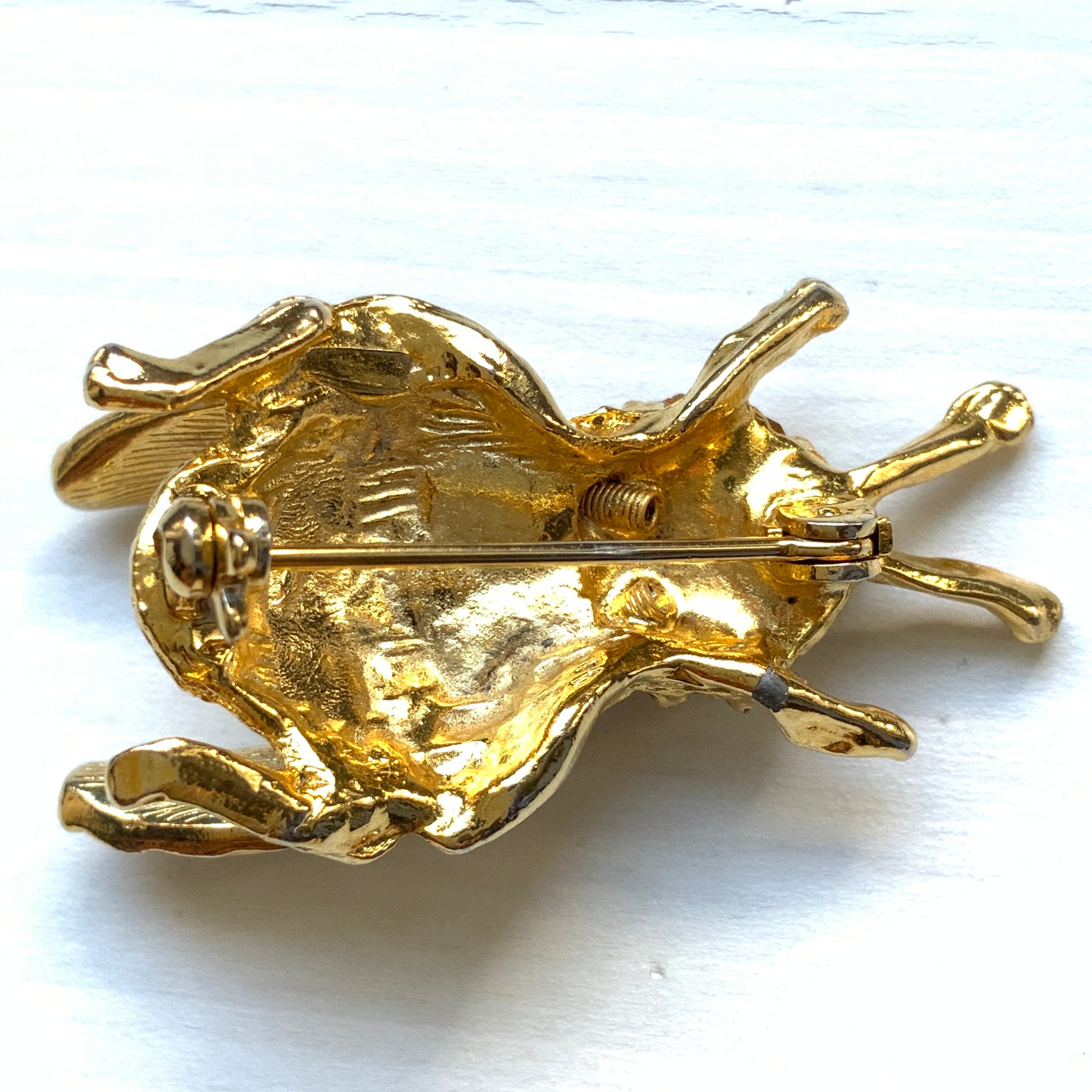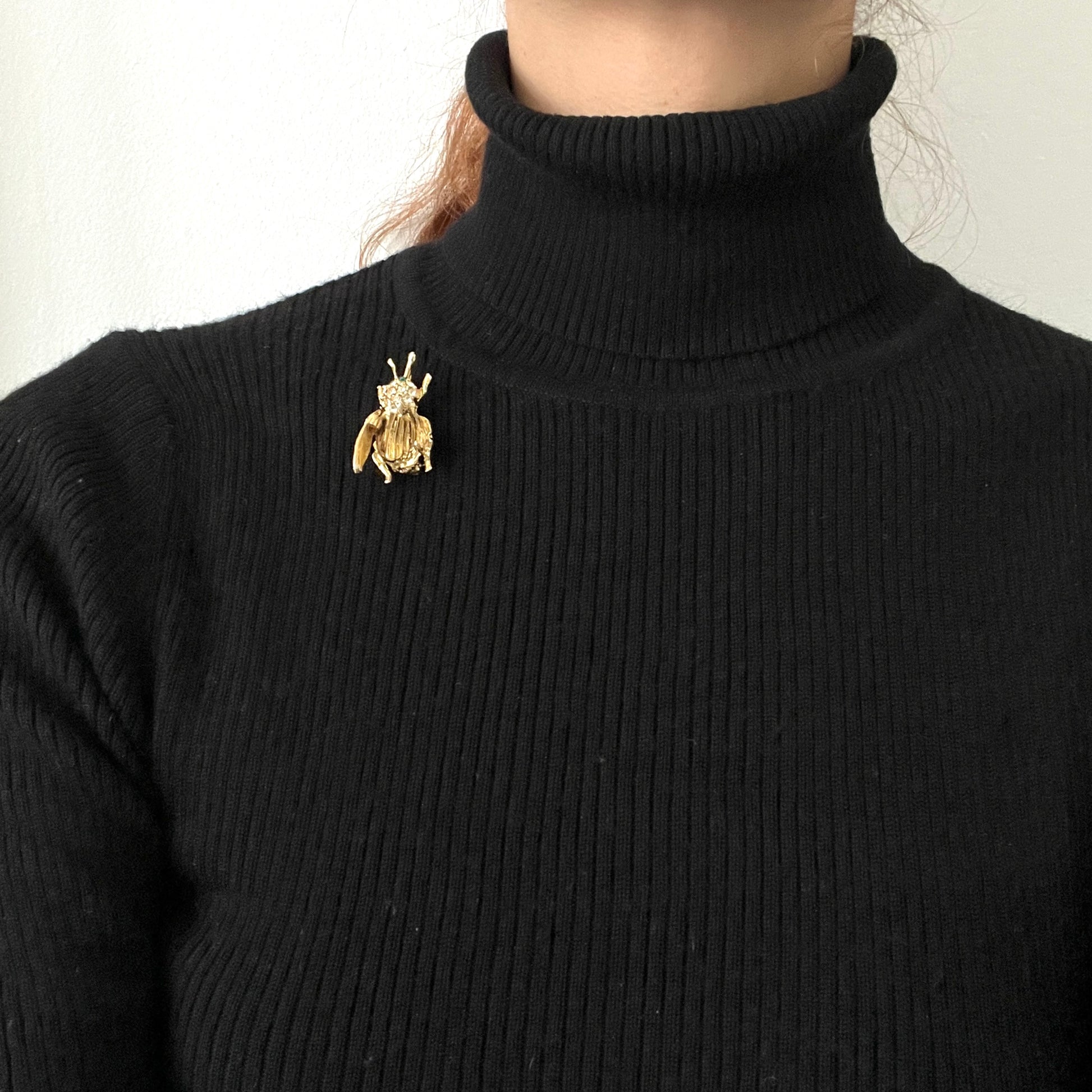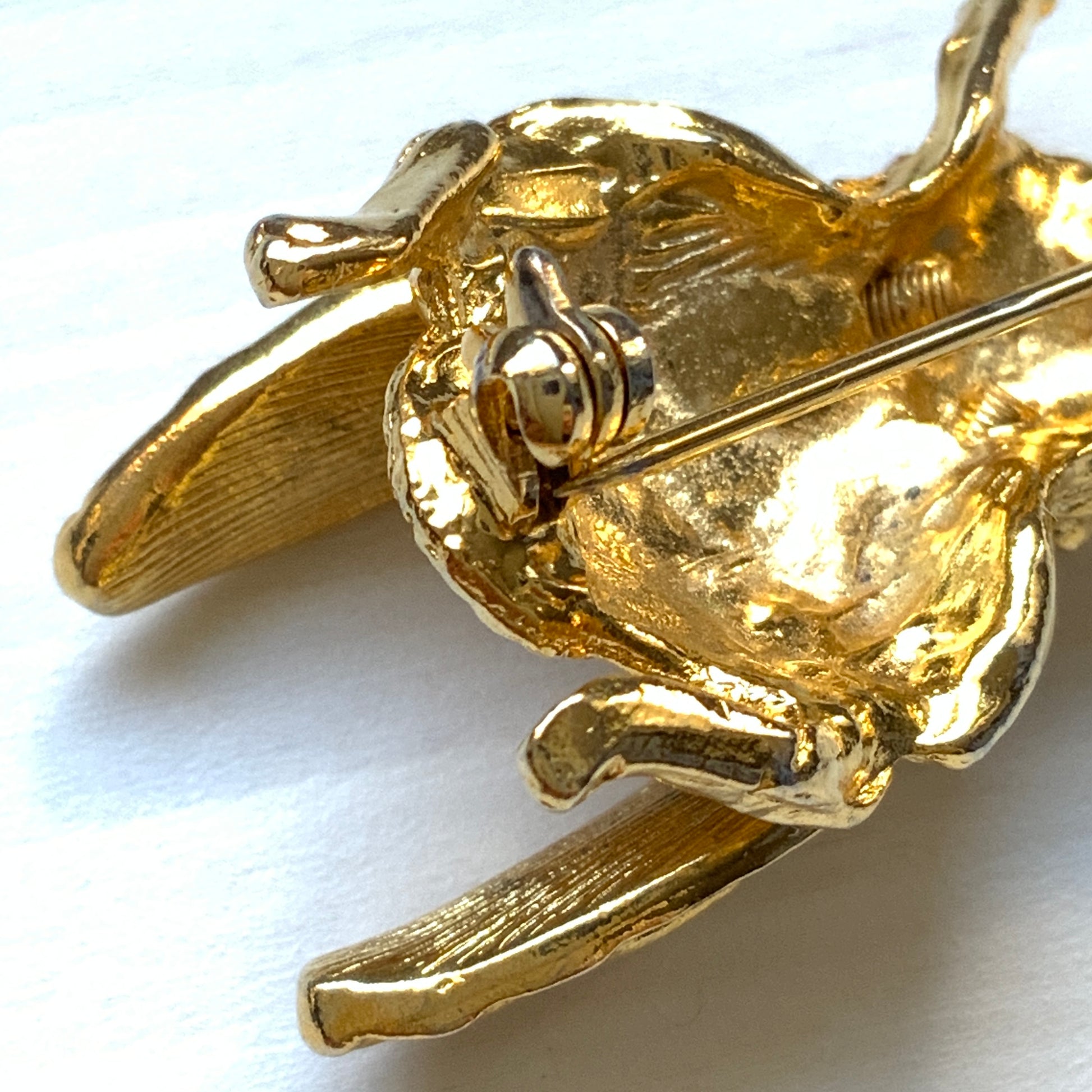 スプリングで羽が揺れる、ゴールドトーンとラインストーンの虫のブローチ。