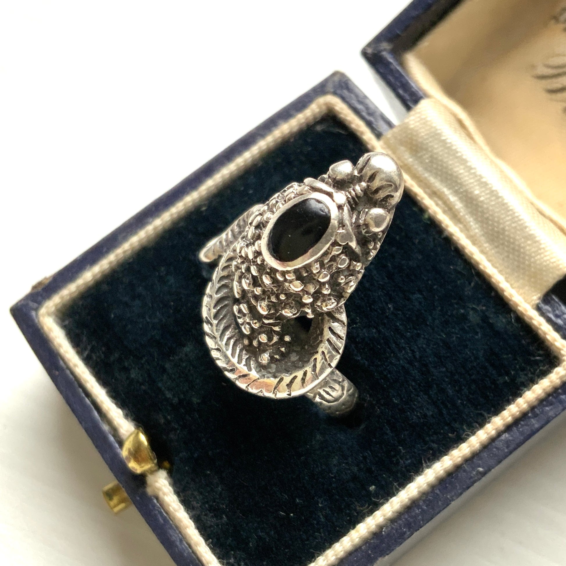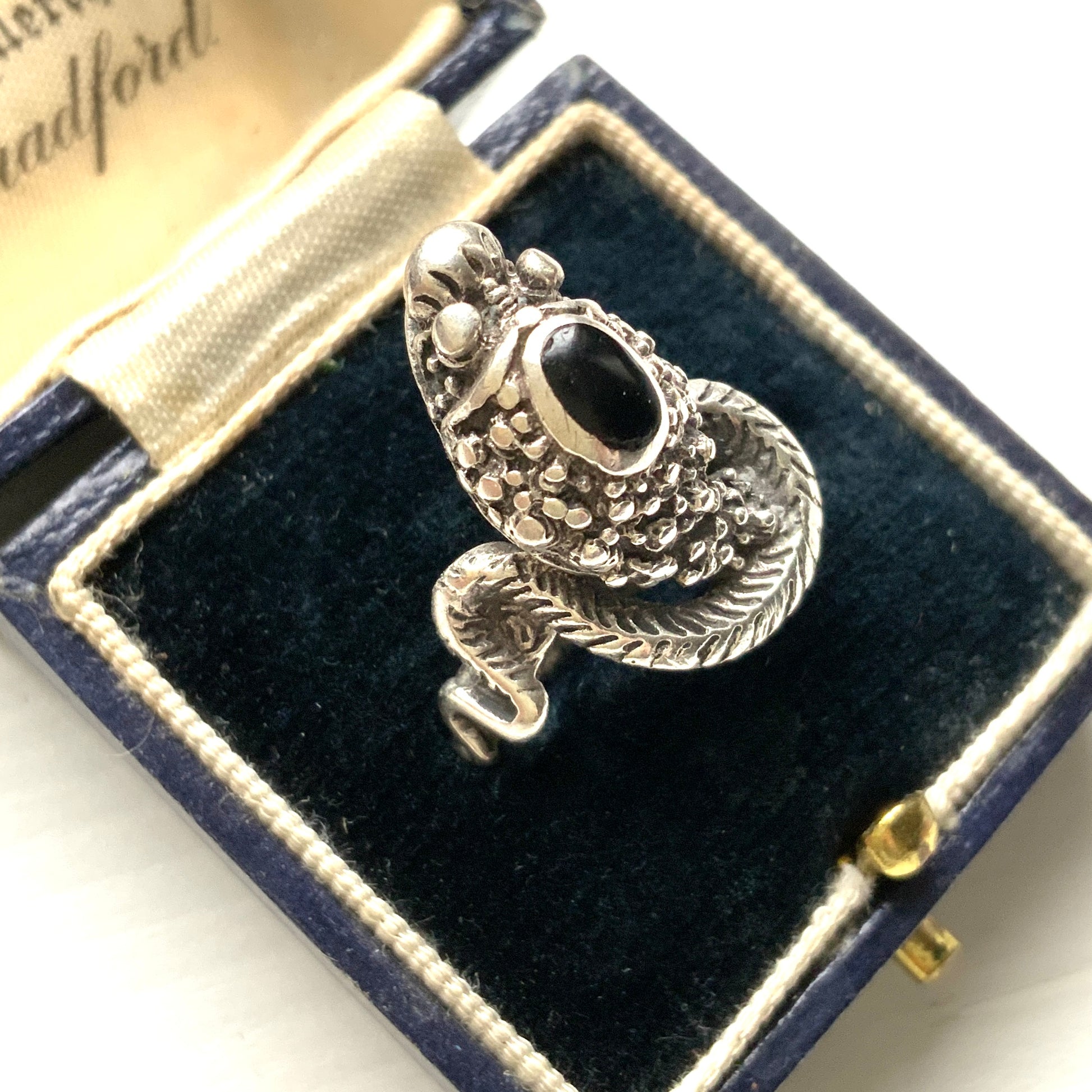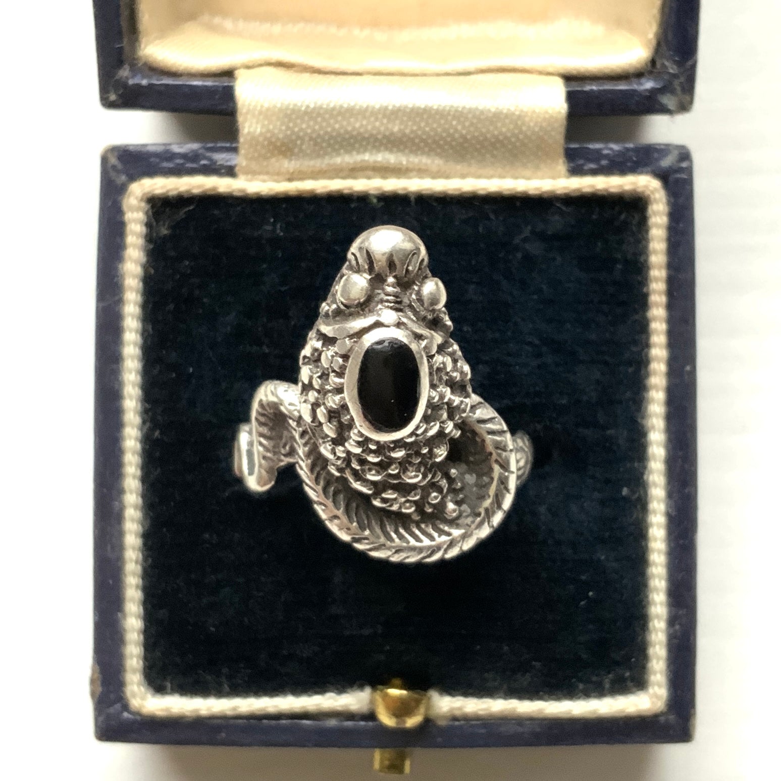 VINTAGE Onyx Cobra Snake Silver Ring