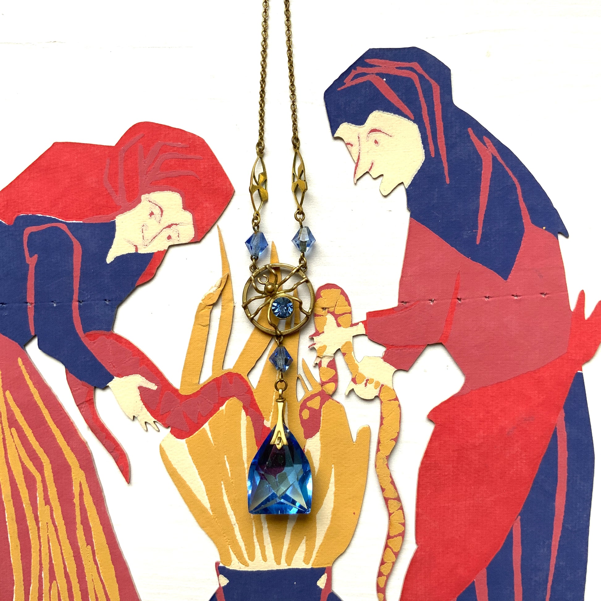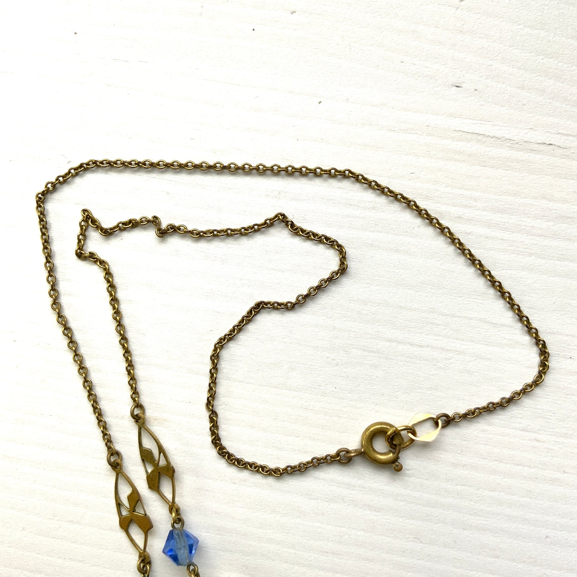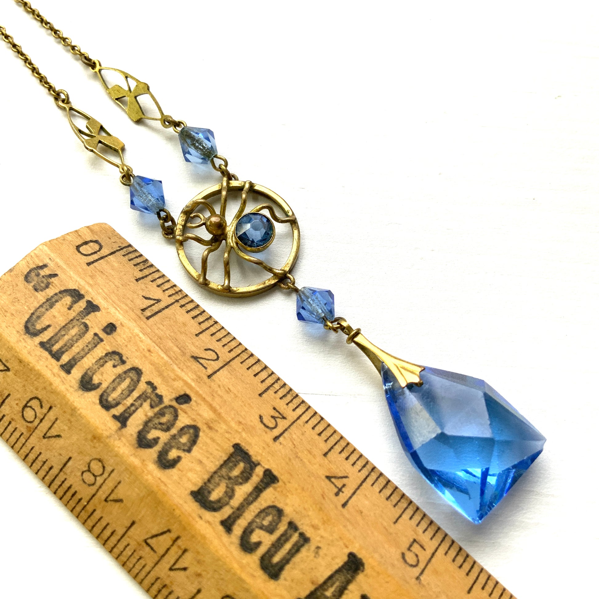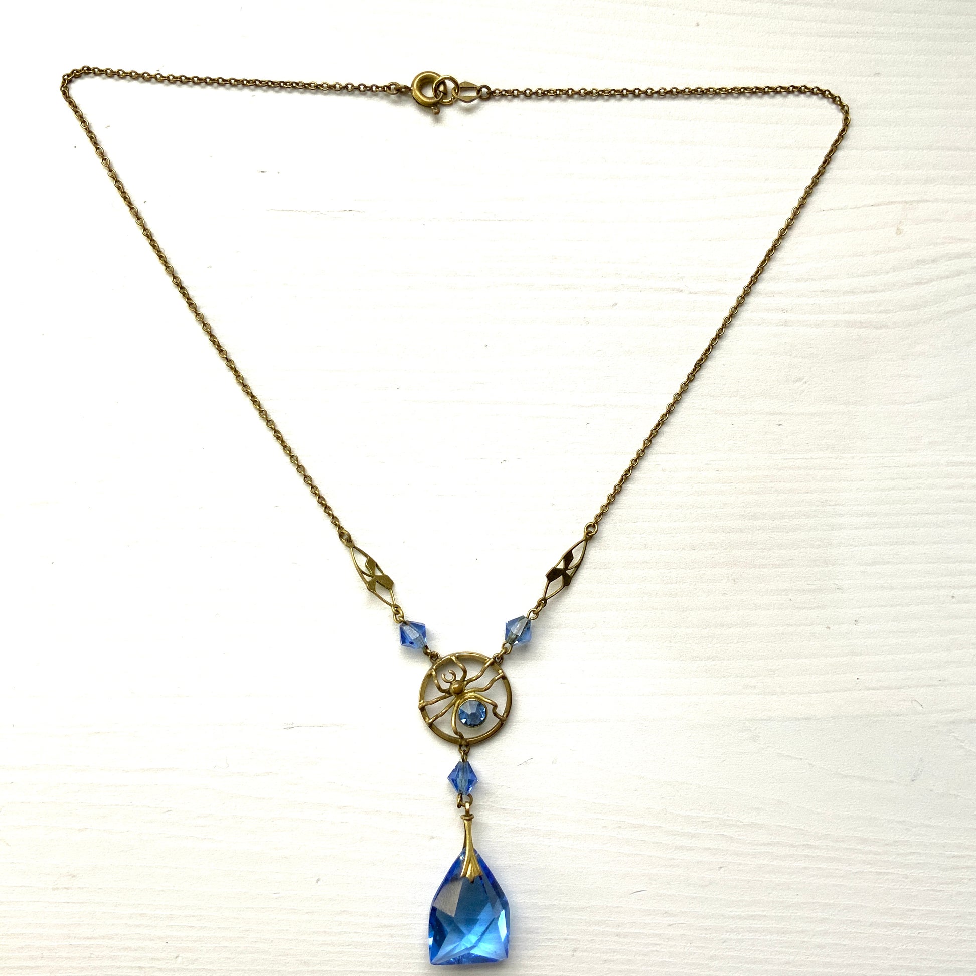 VINTAGE ART DEOCO WARD BROTHERS Blue Glass Spider Necklace