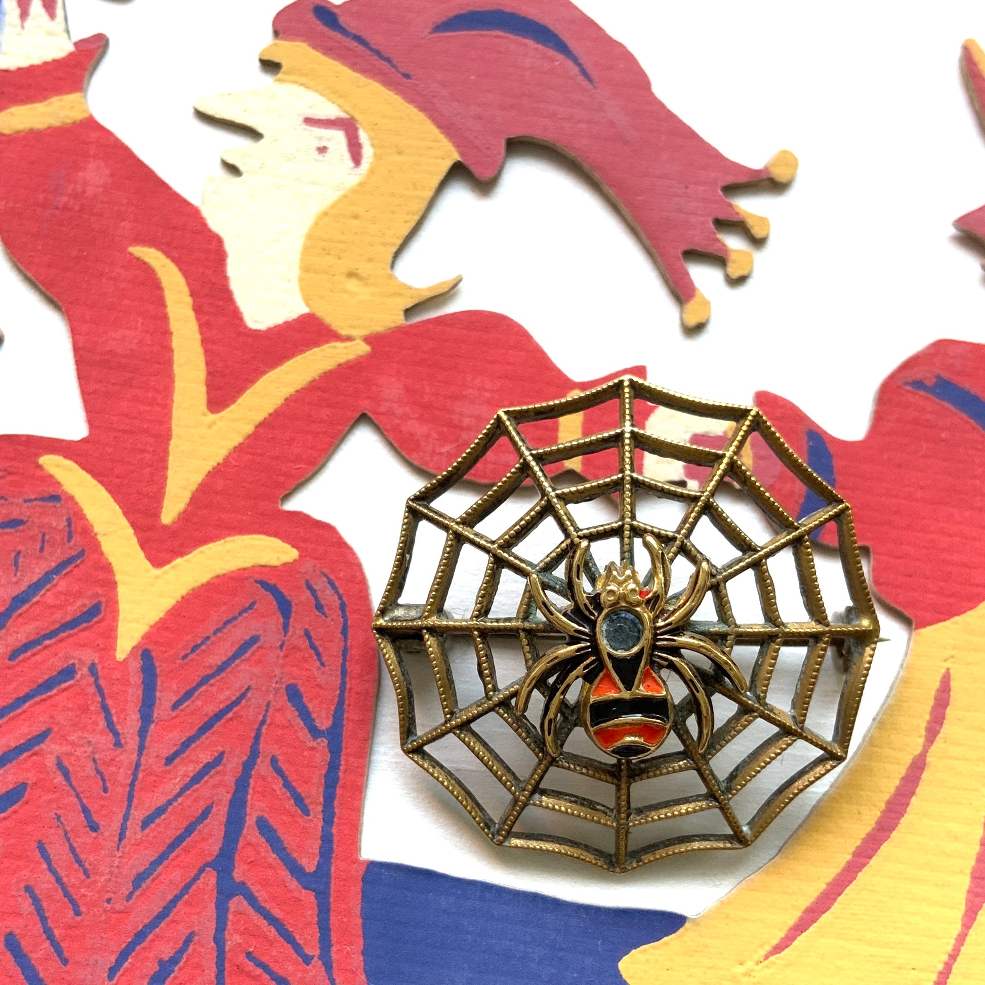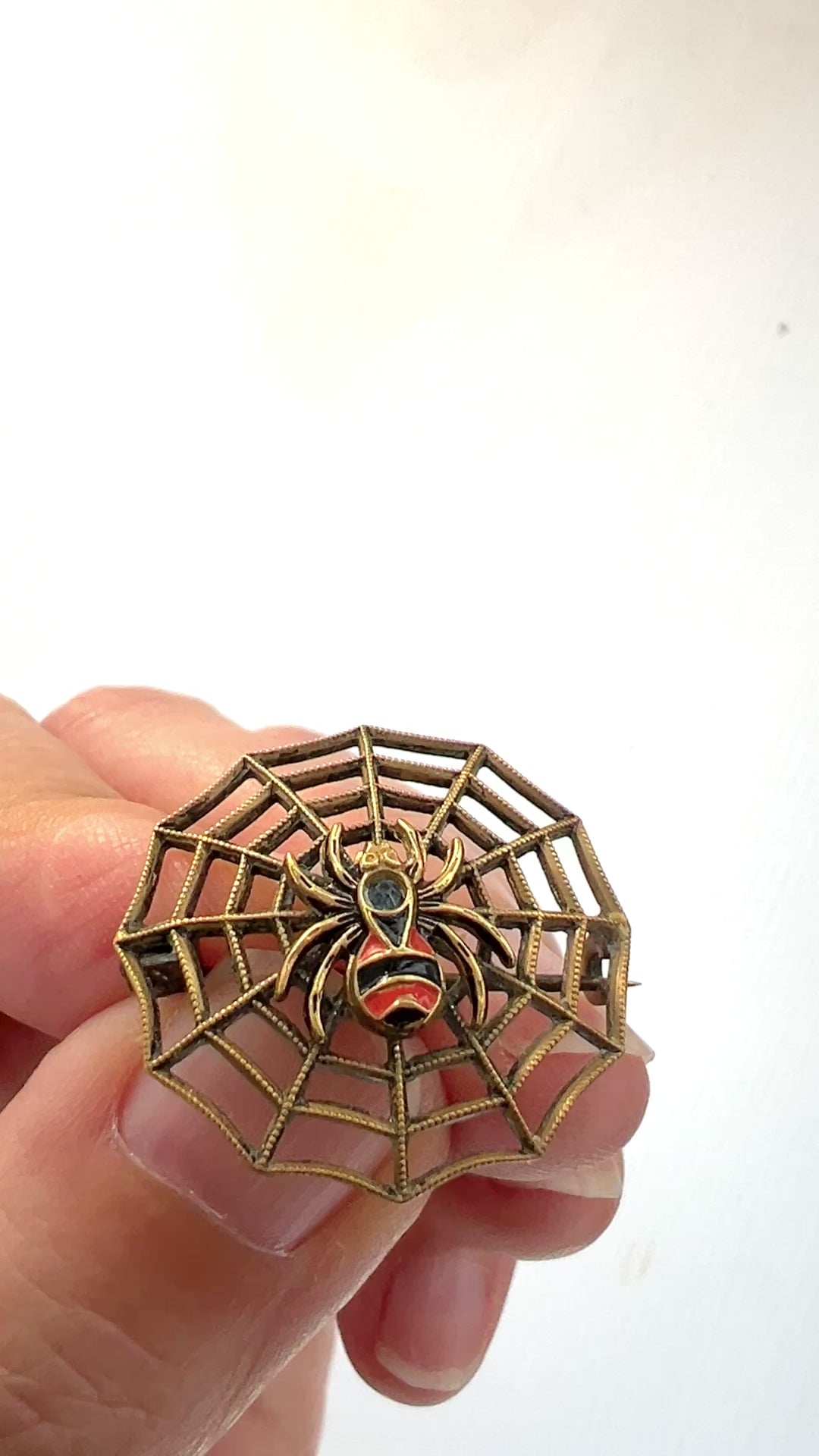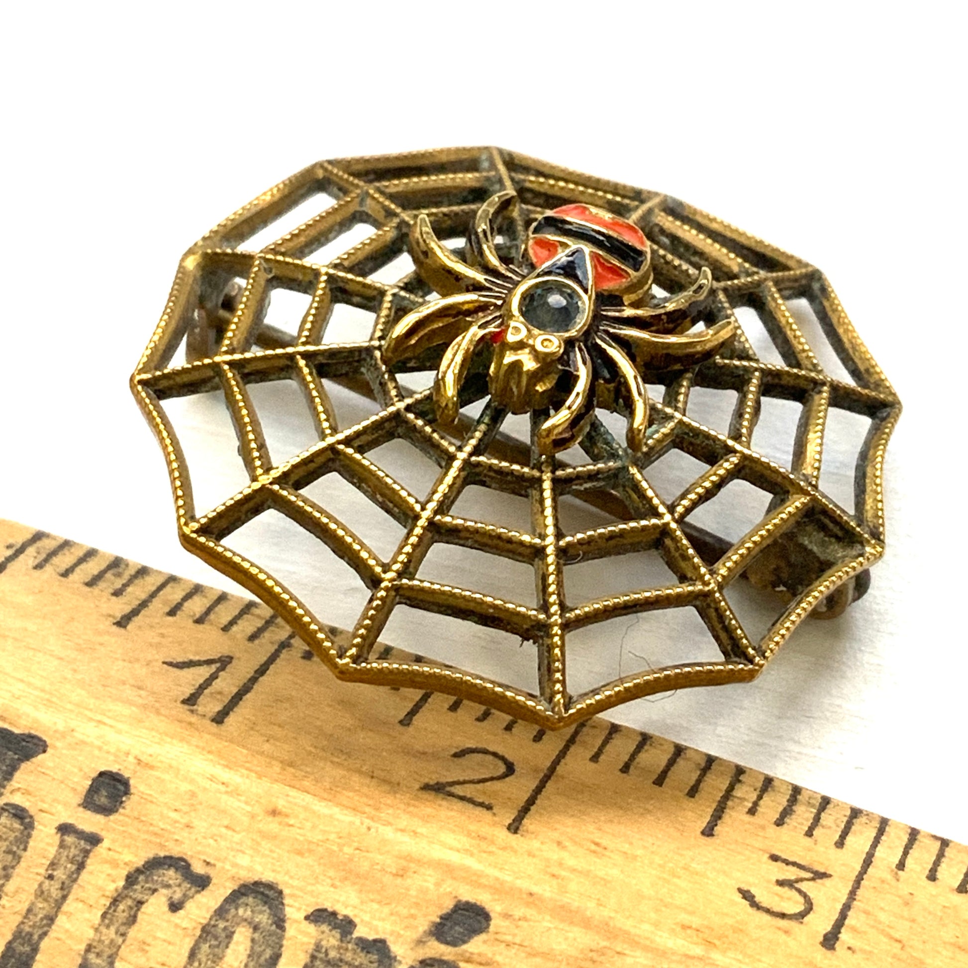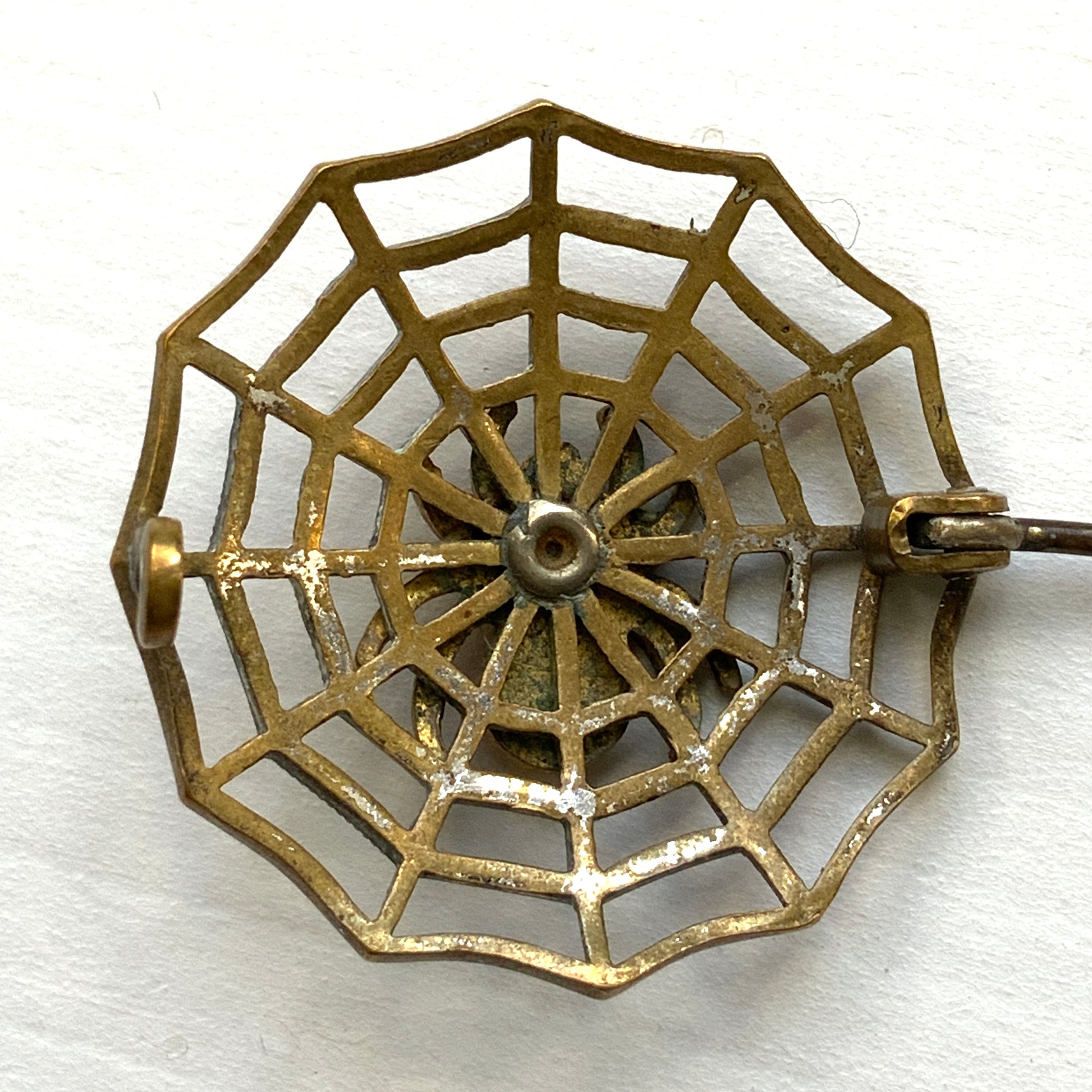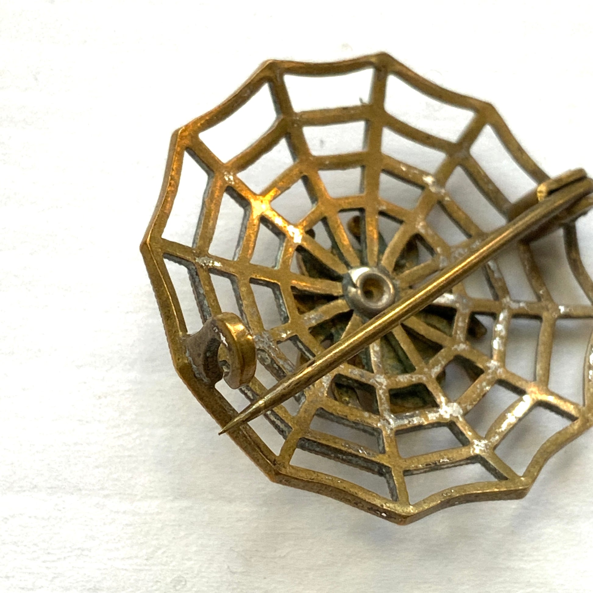 VINTAGE ART DECO Enamel Spider & Web Mini Brooch